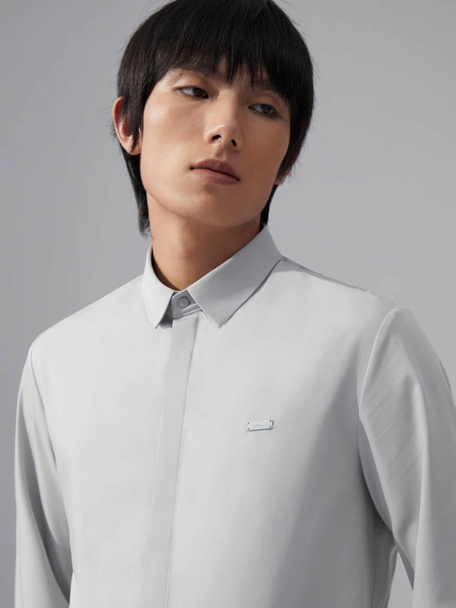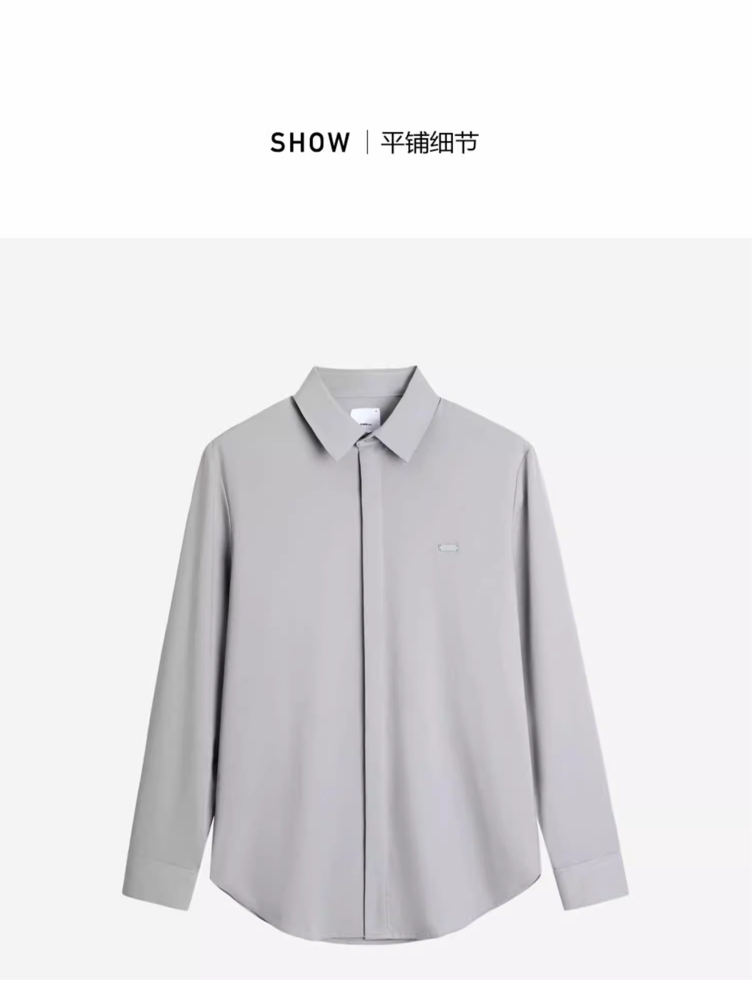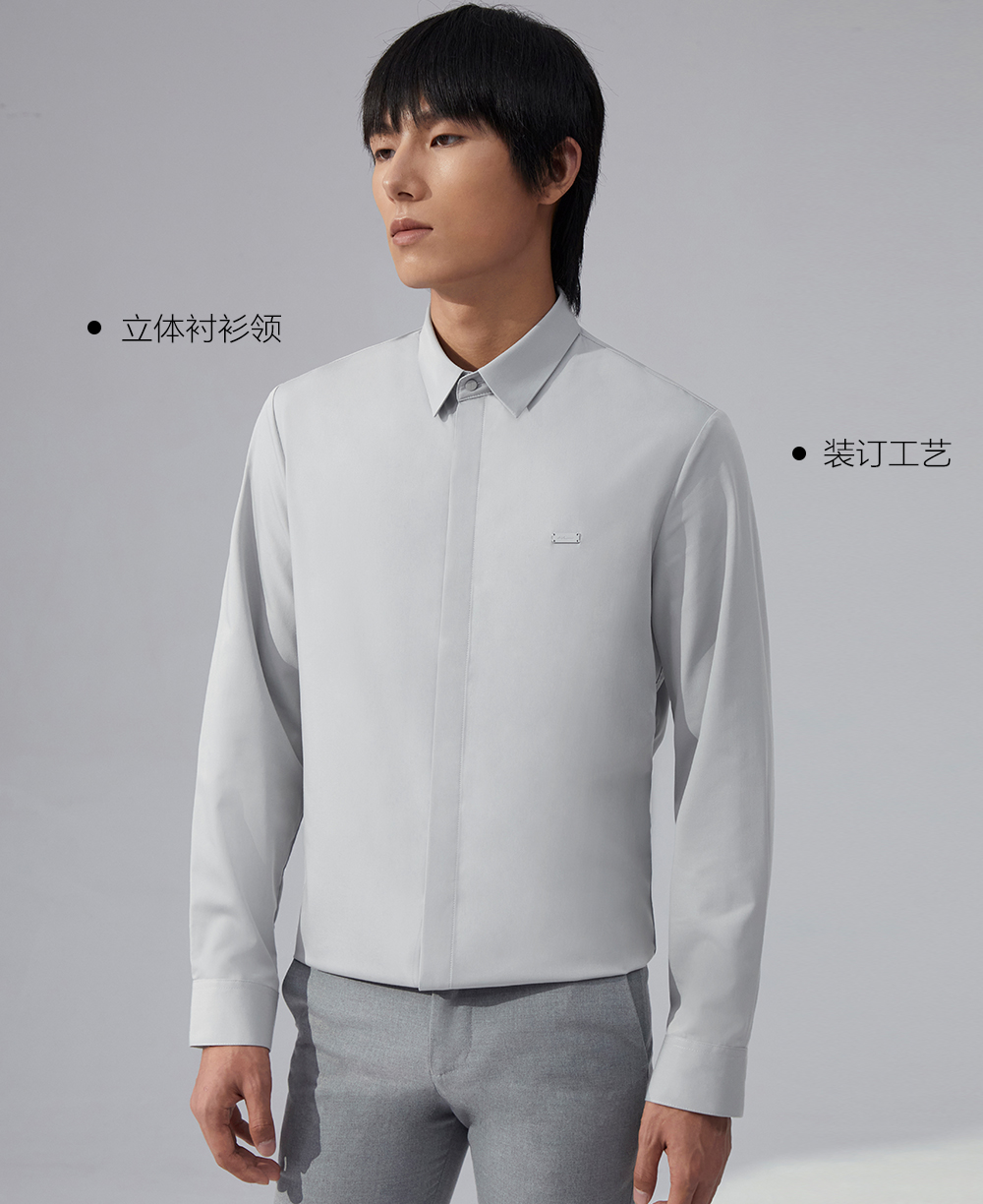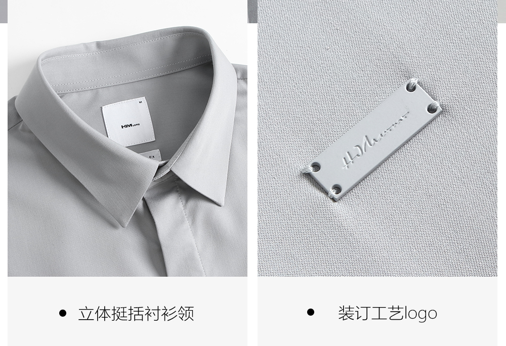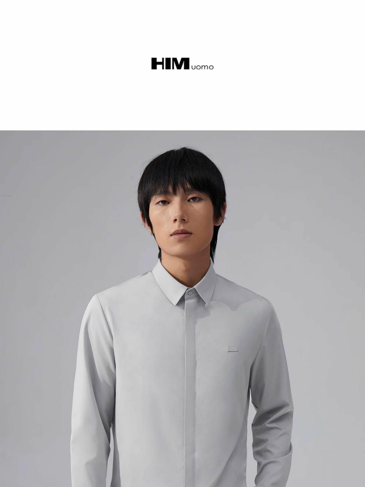 HIM漢崇 斯文方领纯色衬衫男通勤上班商务正装长袖衬衣 2025秋季