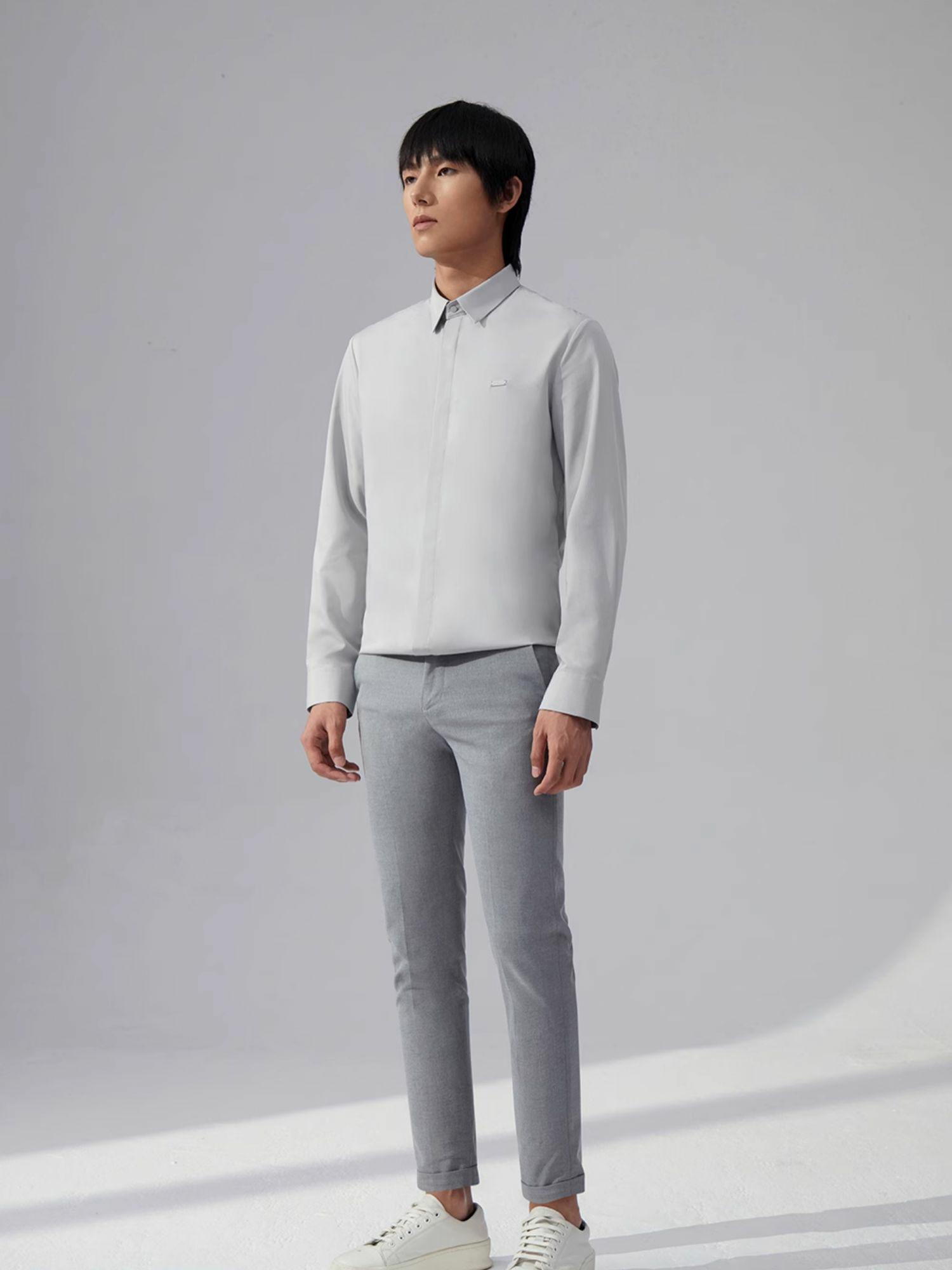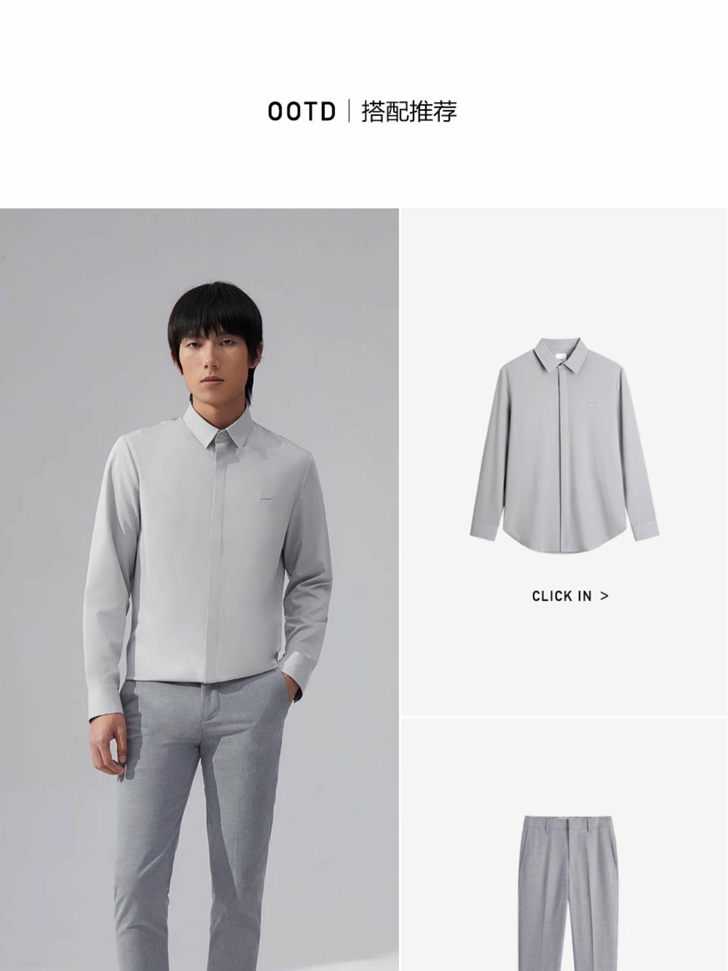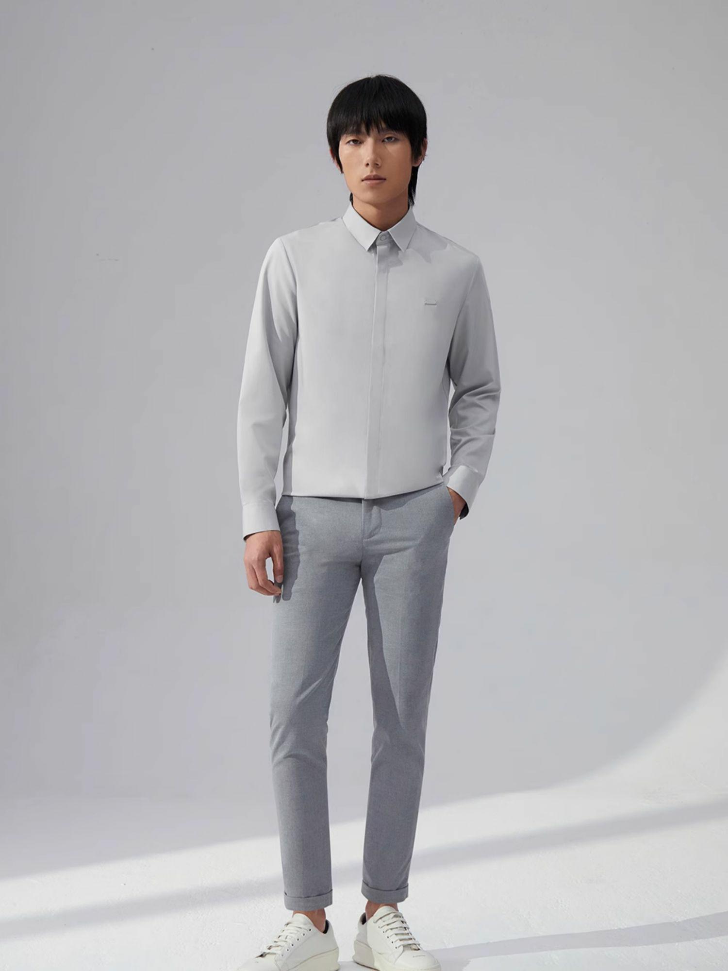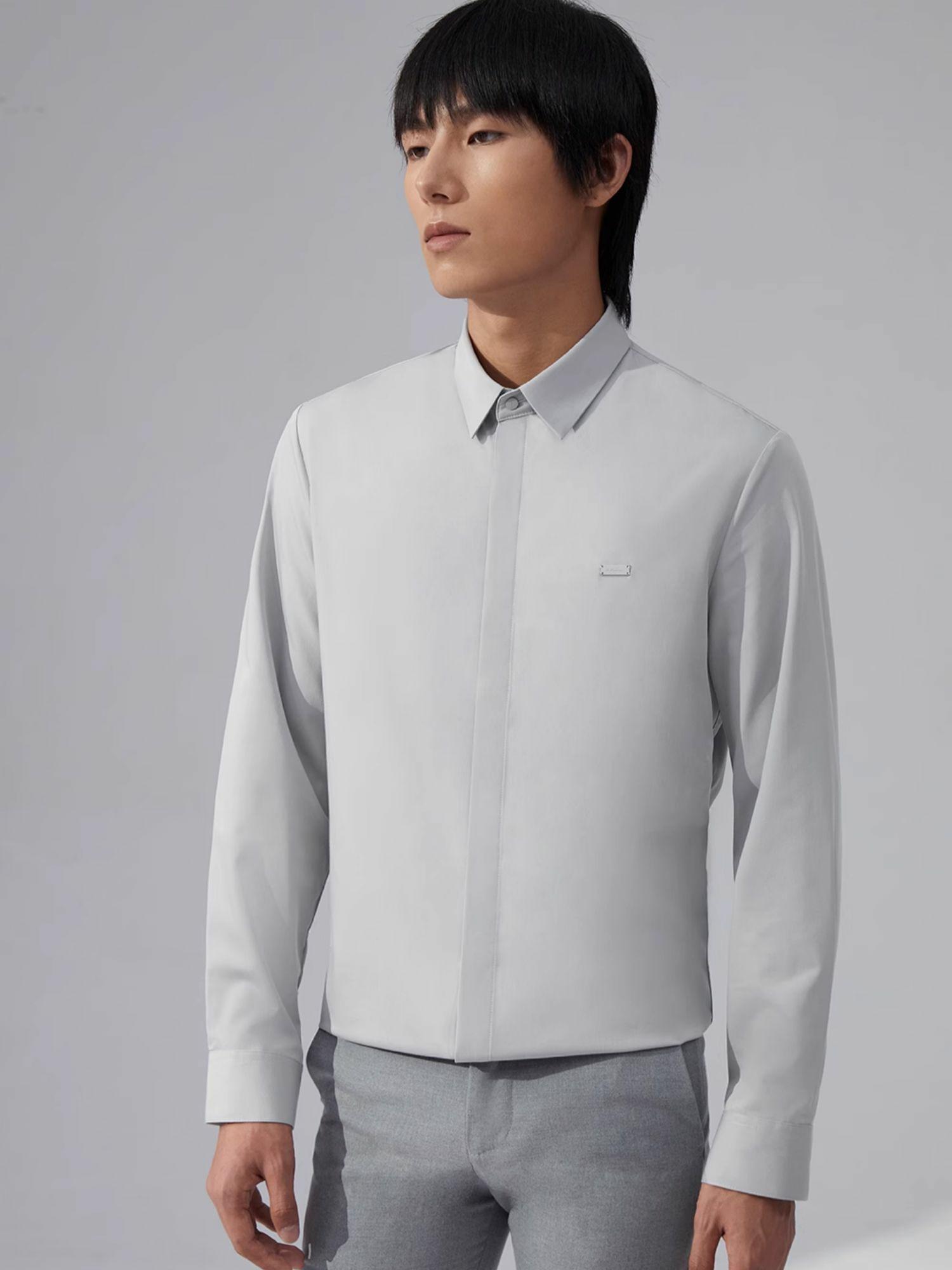 HIM漢崇 斯文方领纯色衬衫男通勤上班商务正装长袖衬衣 2025秋季