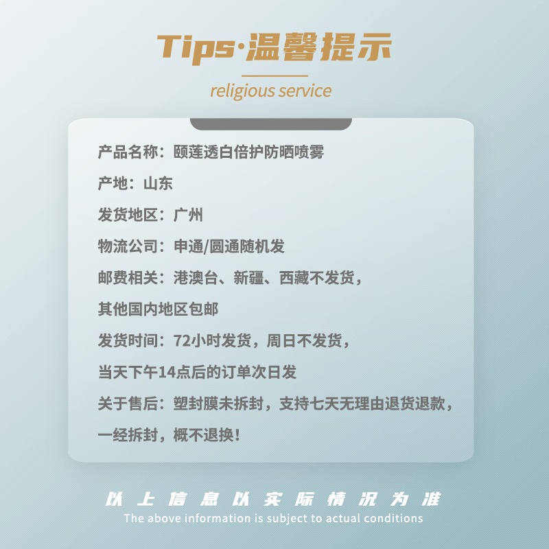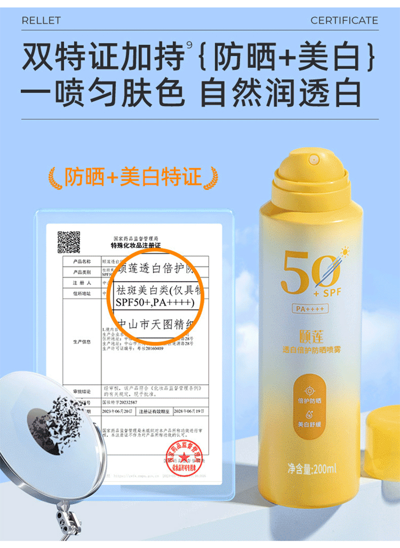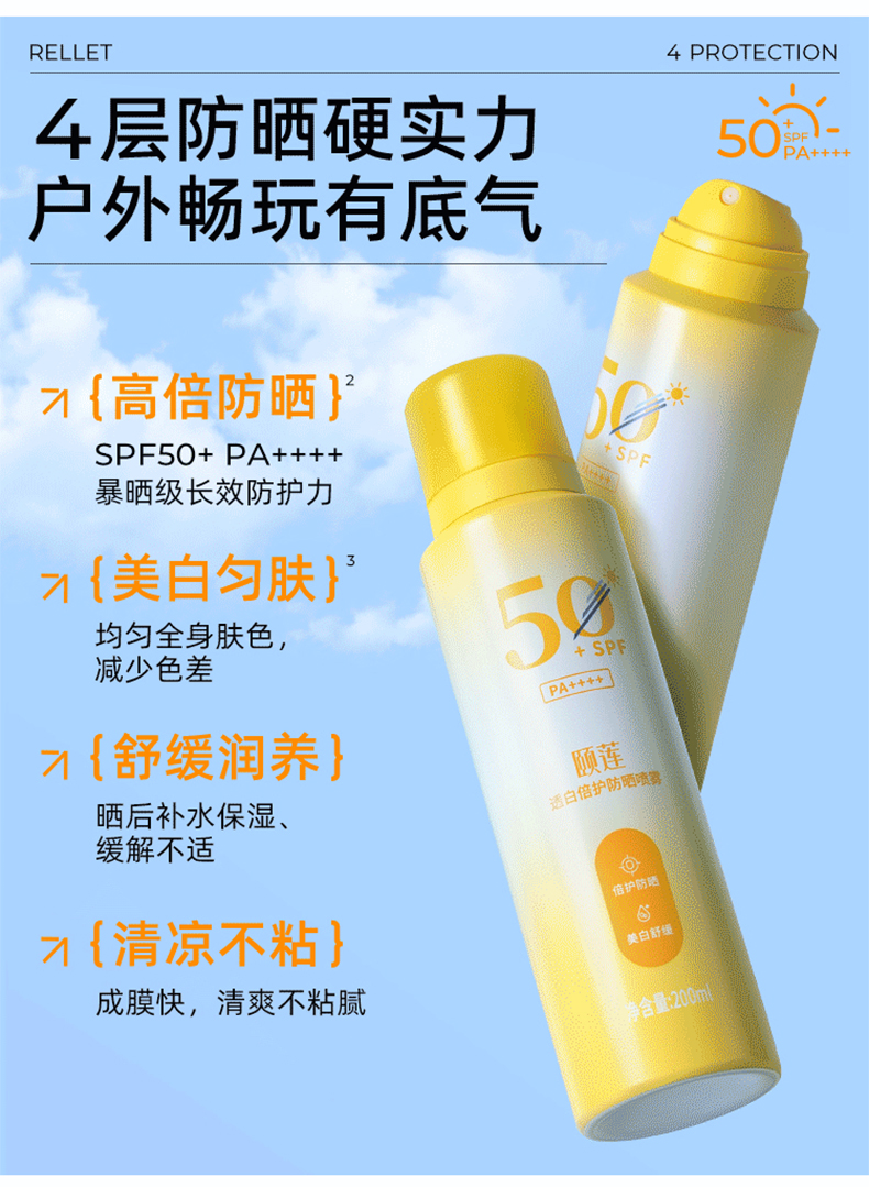 颐莲透白倍护防晒喷雾 SPF50+ 清透肤感 快速成膜 清爽不粘腻 200ml/瓶