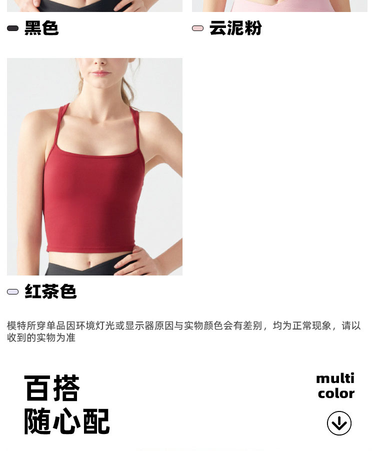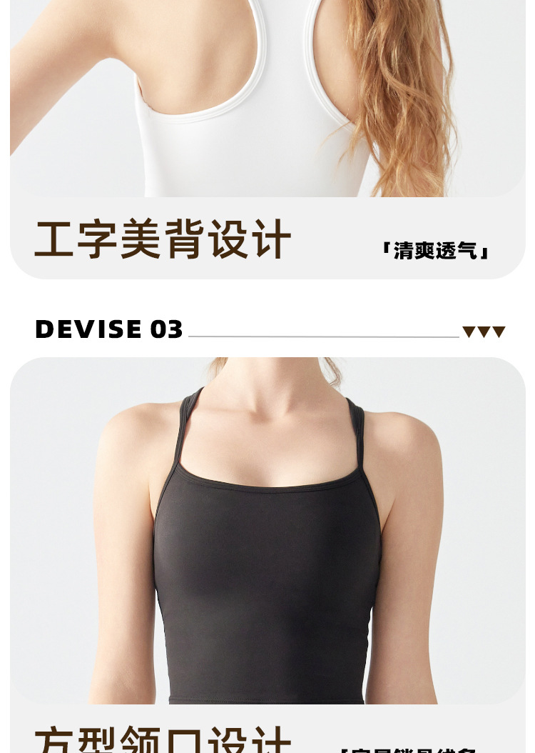 跃牌【海听系列】春夏裸感美背瑜伽背心方领跑步运动背心女XC08