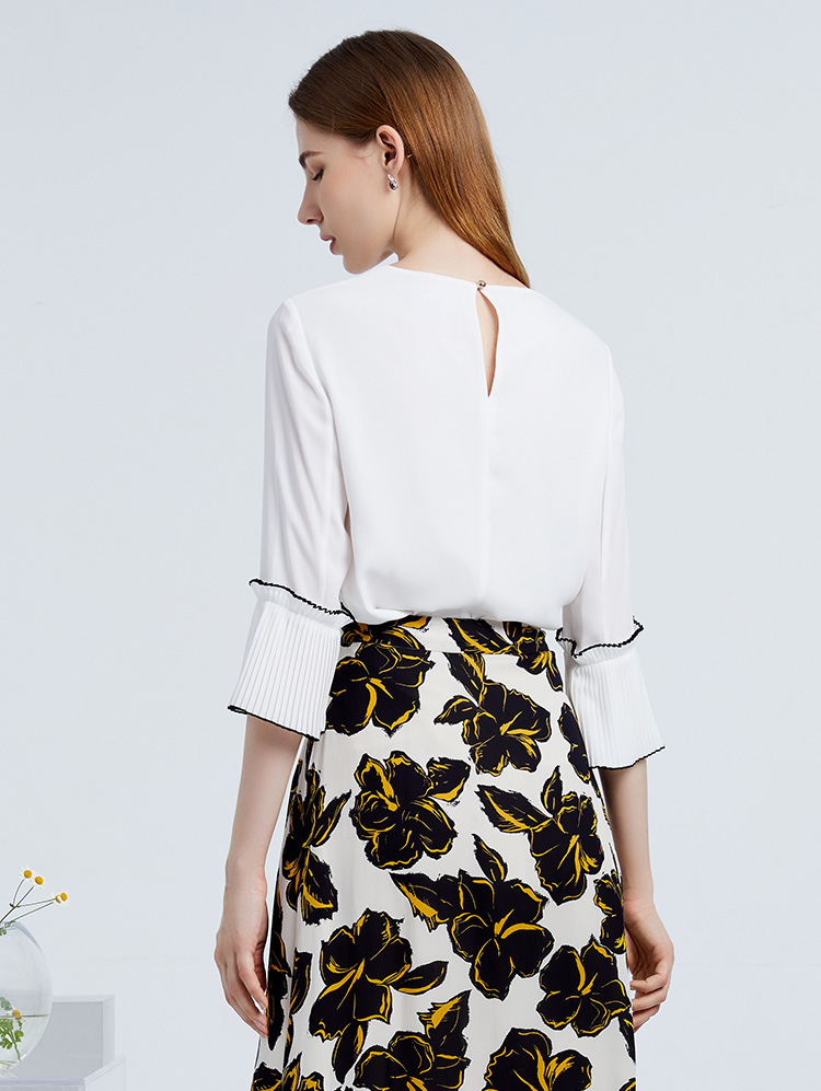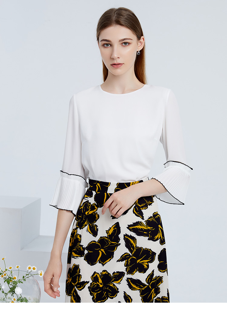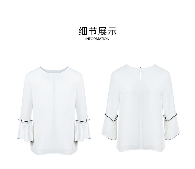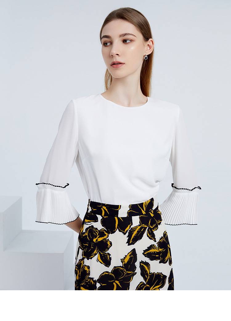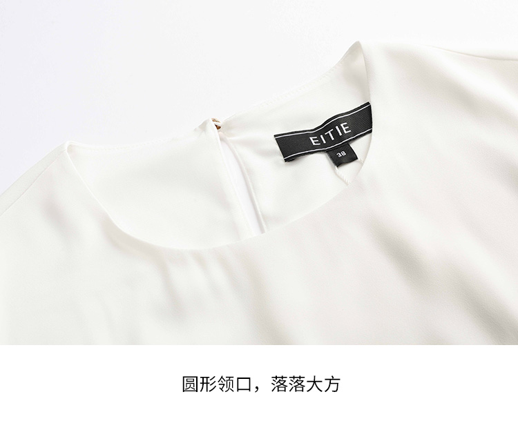 EITIE爱特爱秋季新款简约通勤喇叭袖直筒圆领套头T恤上衣6313003
