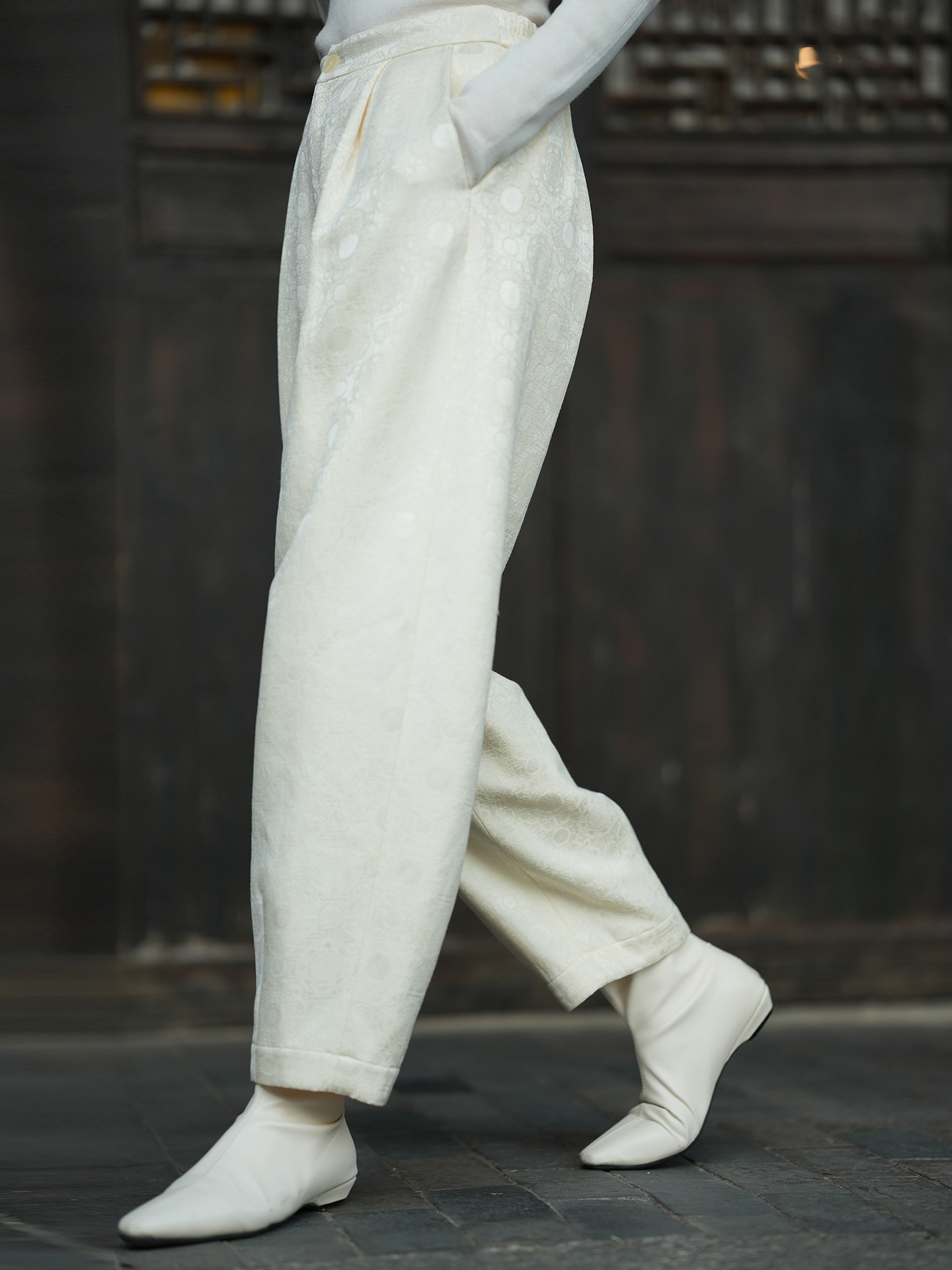 OPH XZ683高级感重工醋酸提花夹棉保暖阔腿裤中式高腰休闲裤棉裤 商品图0