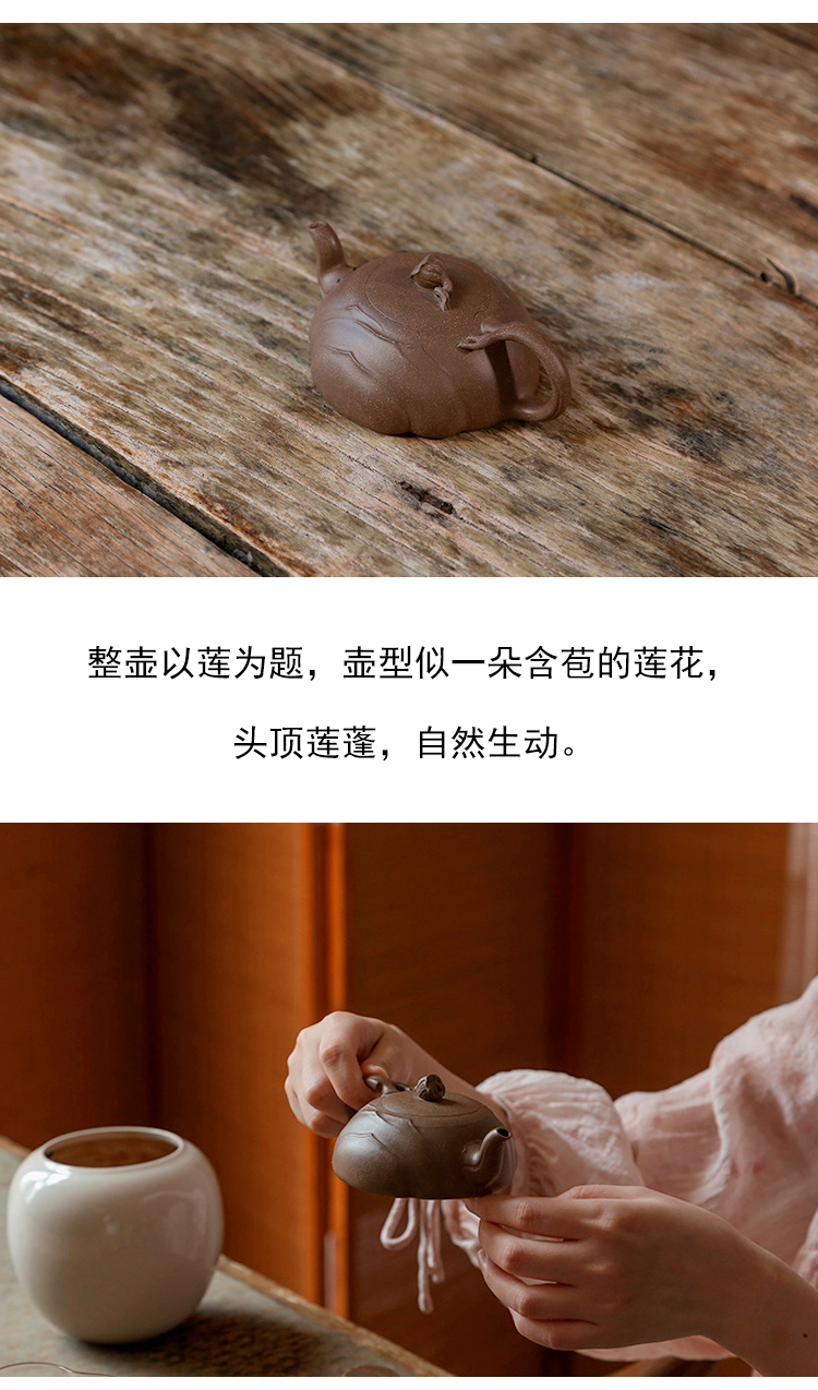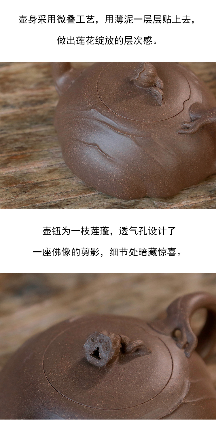 茶香记 全手老段泥梵莲紫砂壶 莲花入器 禅意生动 古拙质朴 泡茶壶