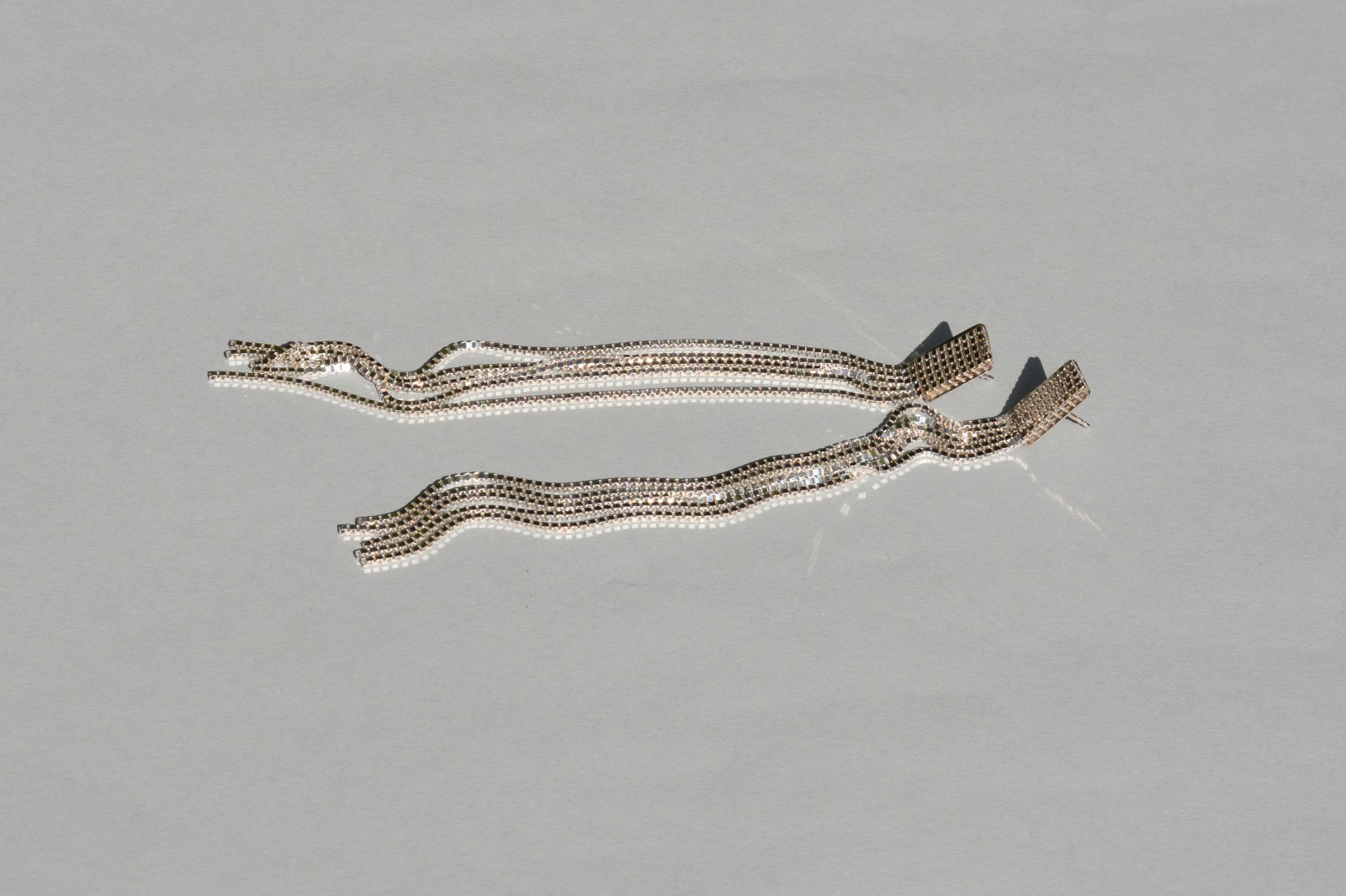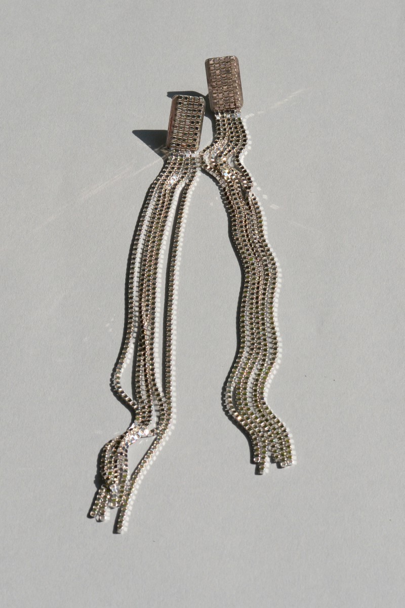 多线条的组合在静止时呈现独立的悬垂感,相互交错时摇曳生动,闪烁优雅细碎的微光。现有耳钉、耳夹两款可选。