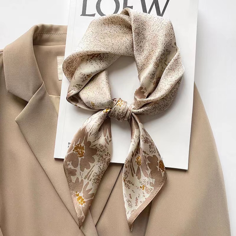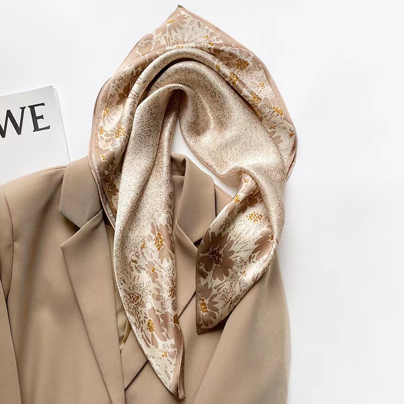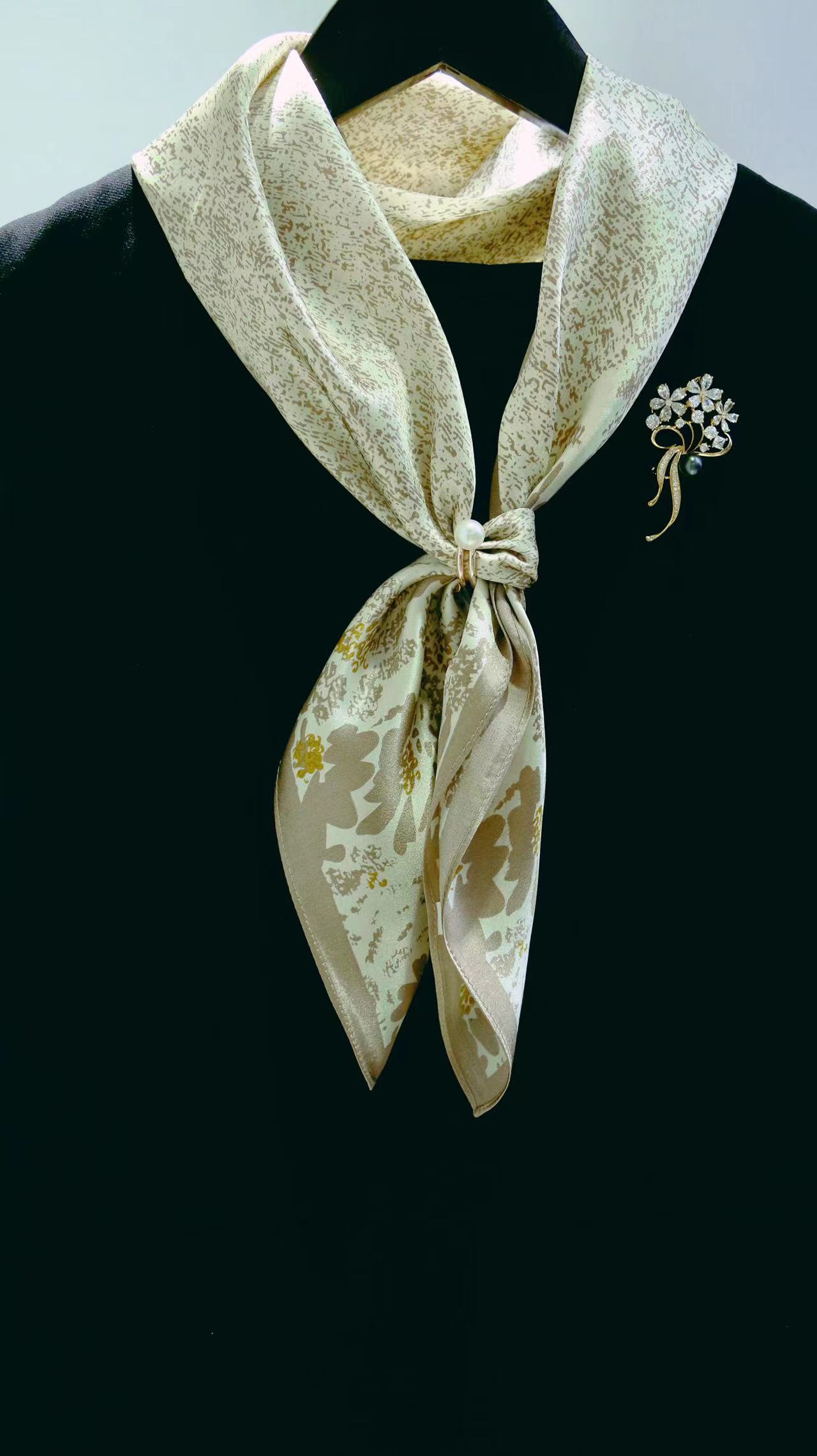 【甄珠贝·花卉系列】70*70cm素绉缎桑蚕丝丝巾和淡水珍珠丝巾扣礼盒套装