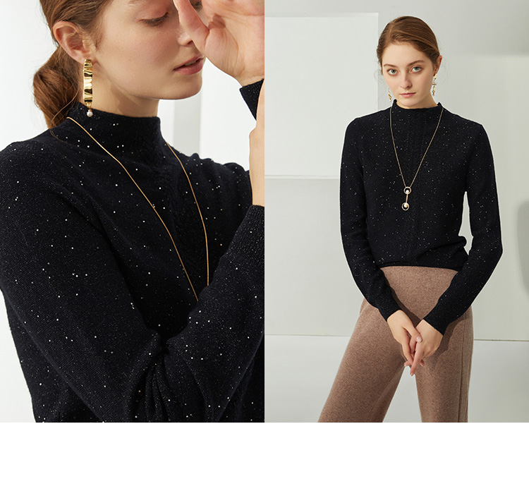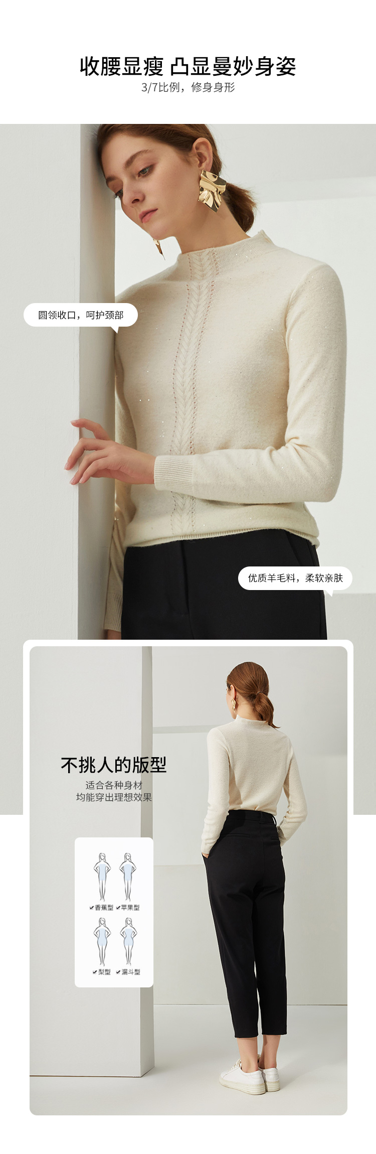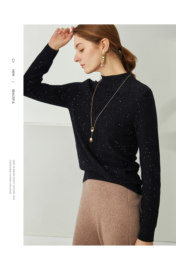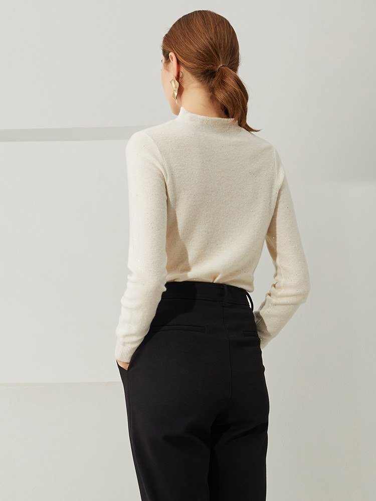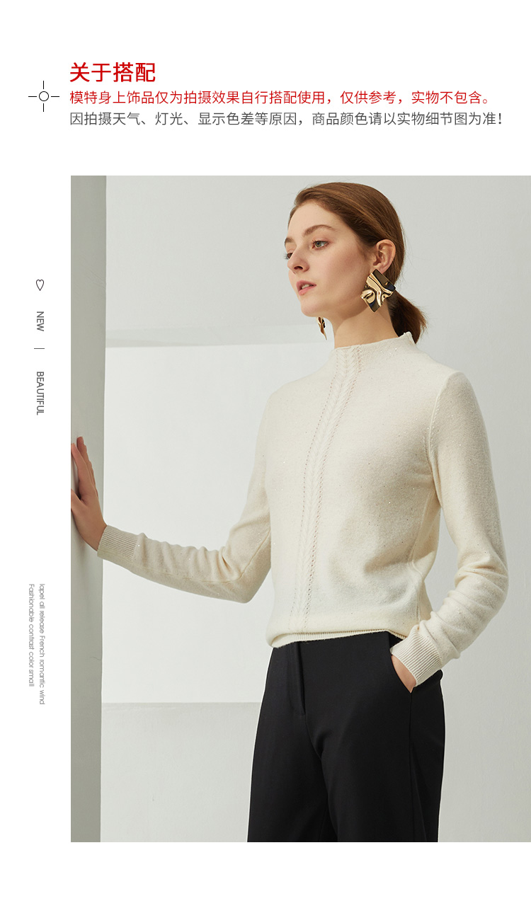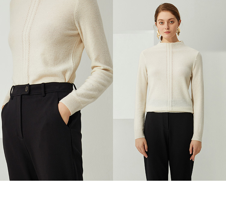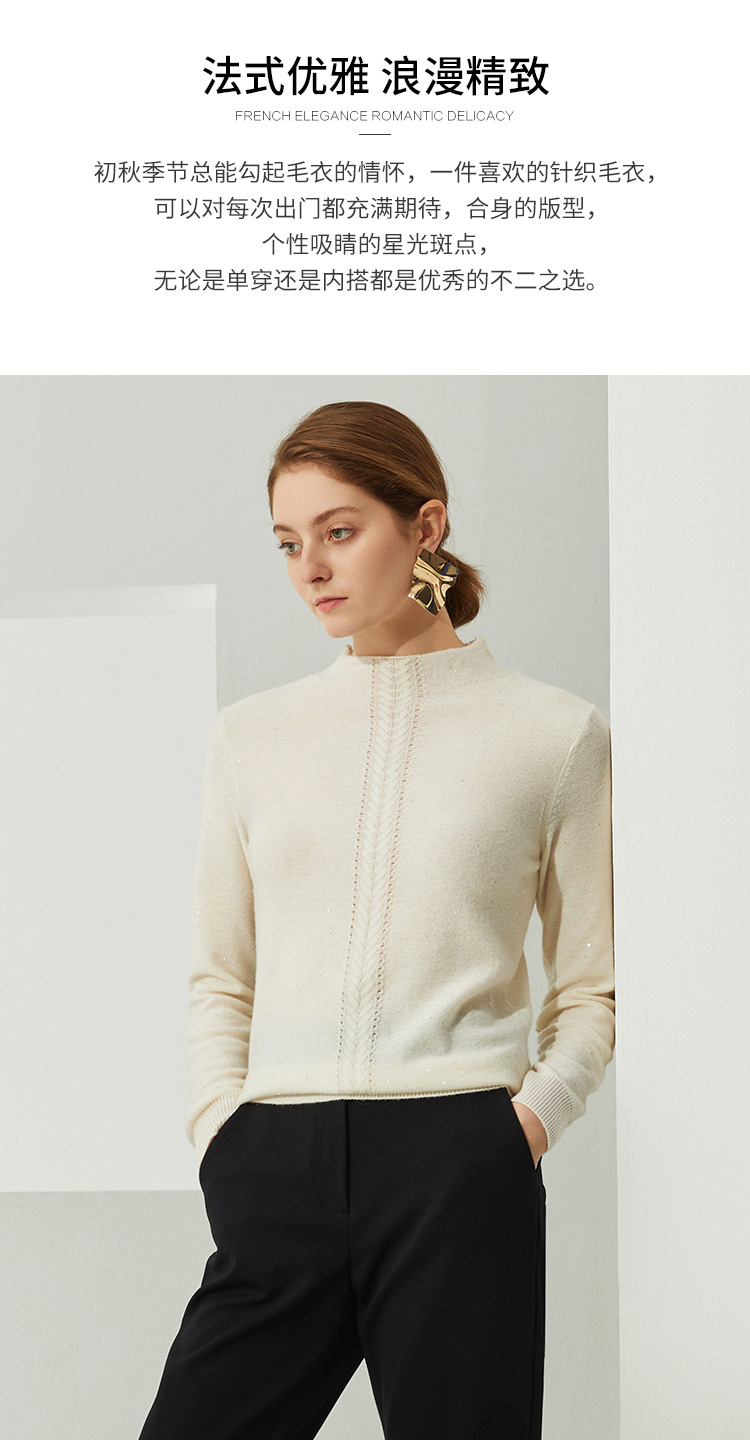 EITIE爱特爱秋季新款高领修身百搭显瘦纯羊毛针织衫女套头C2101806