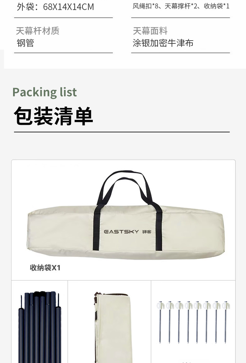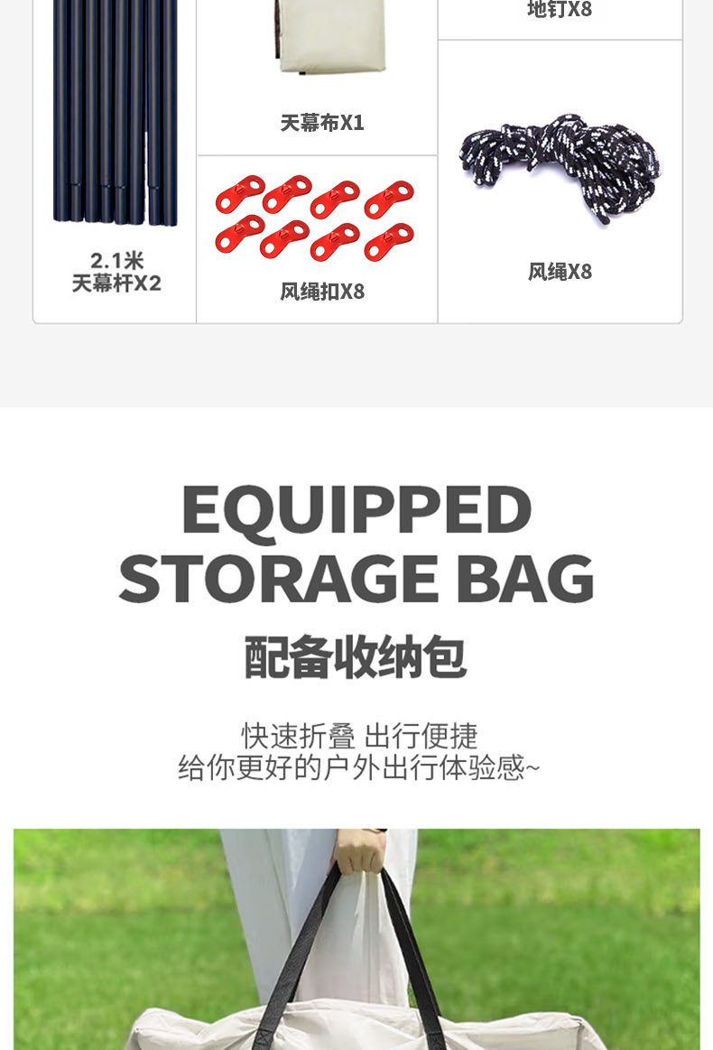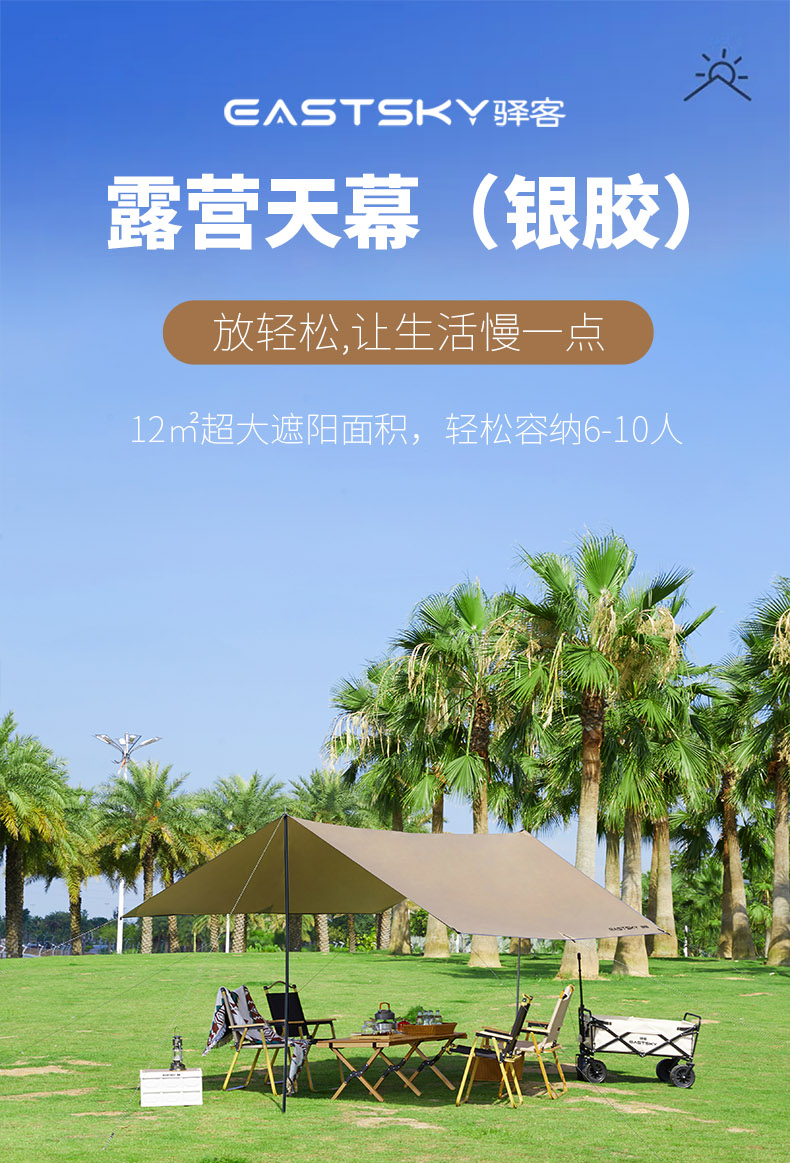 杞冠臻选 | 驿客 露营天幕(银胶)EKH-9004 12㎡超大遮阳面积 轻松容纳6-8人