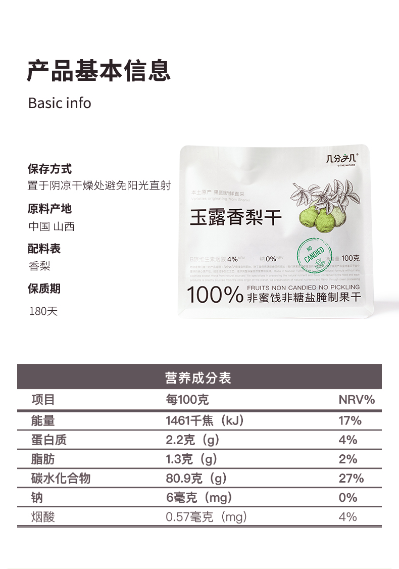 几分之几玉露香梨干100g