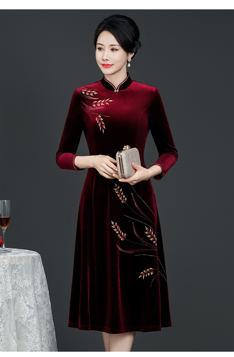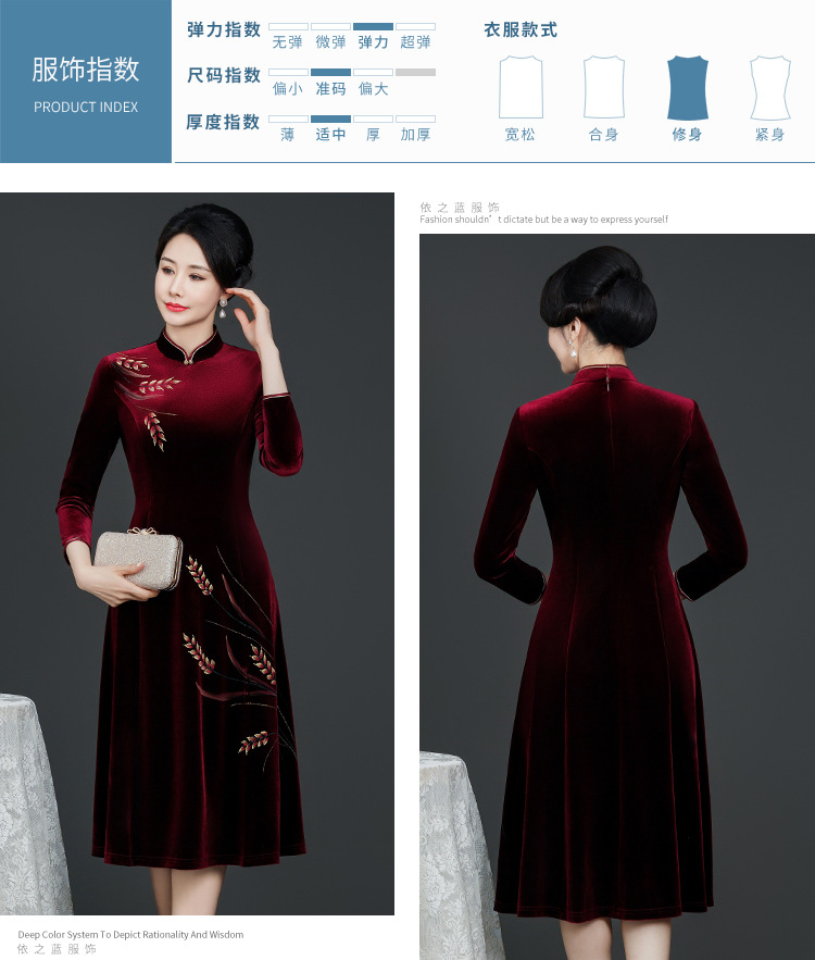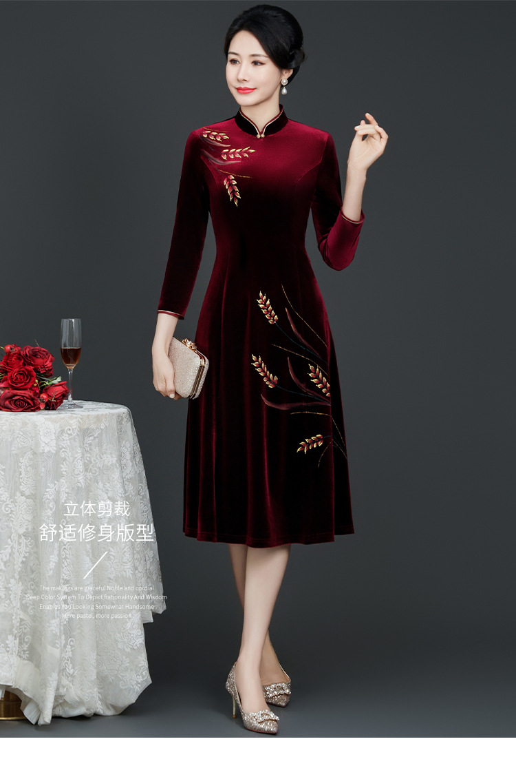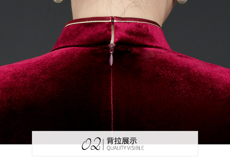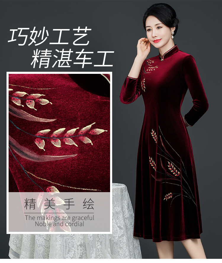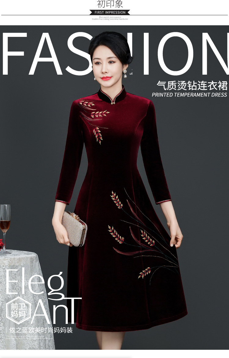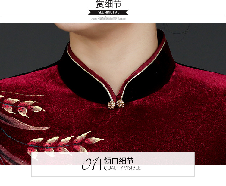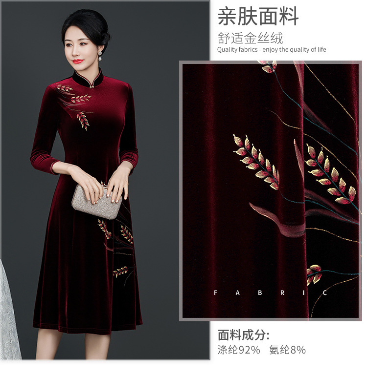 喜婆婆婚宴装旗袍连衣裙,新款中老年妈妈秋装礼服金丝绒裙子YZL-852