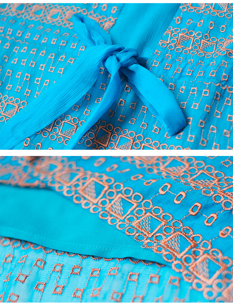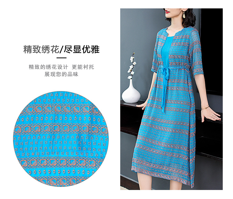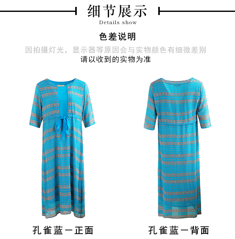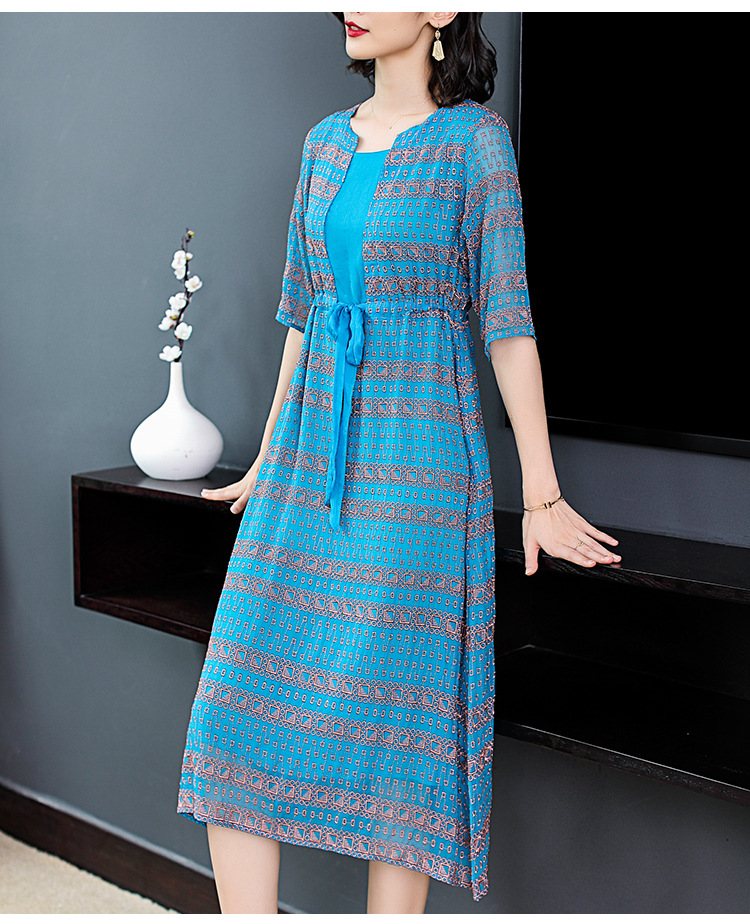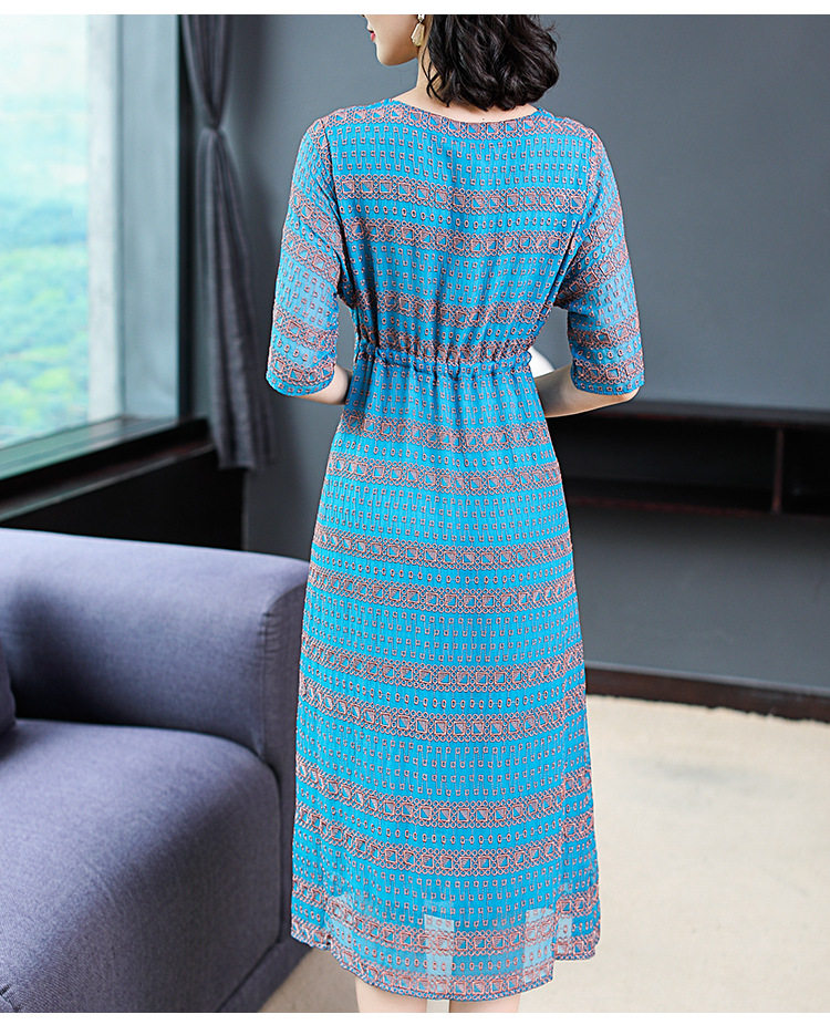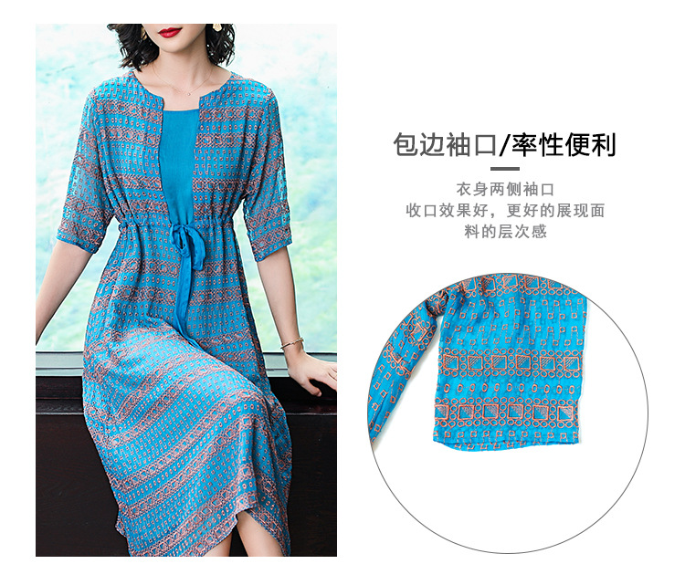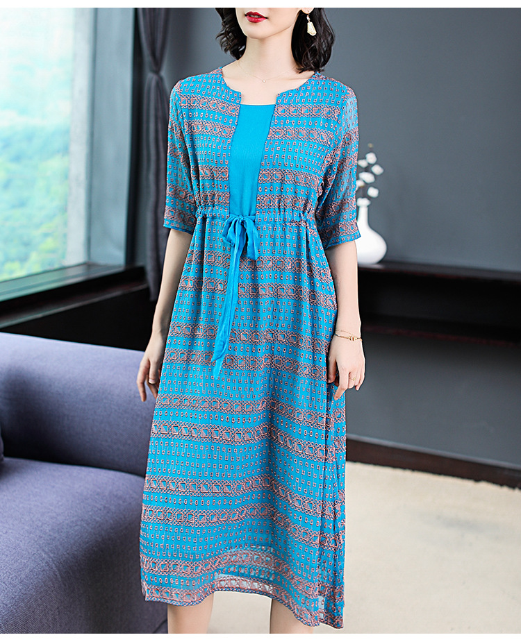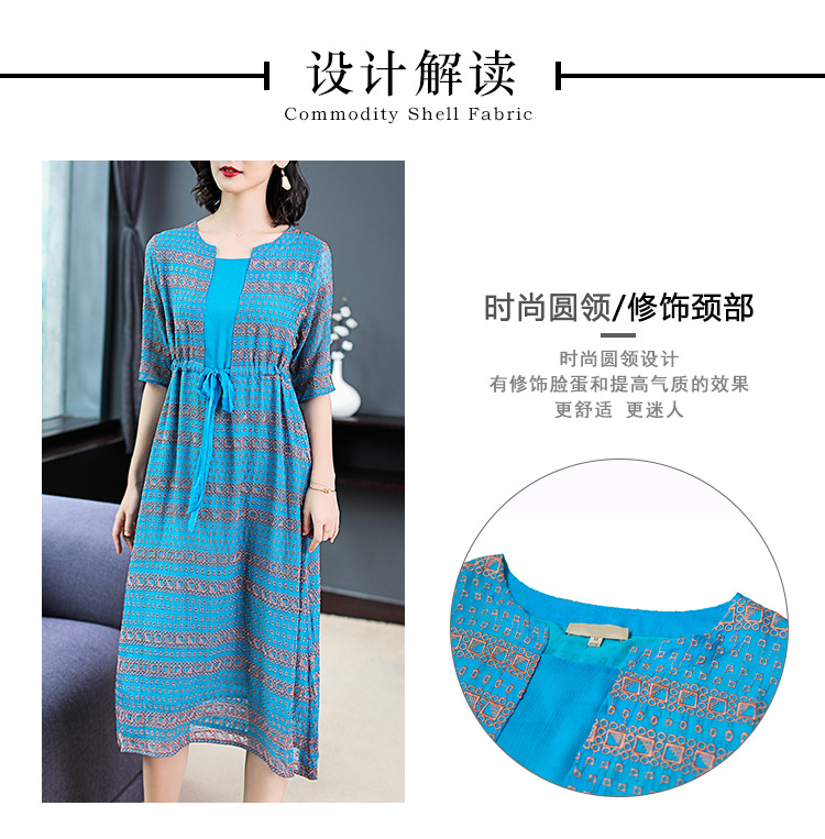 SMHC-SM190580夏季新款圆领印花五分袖宽松系带腰中长款连衣裙