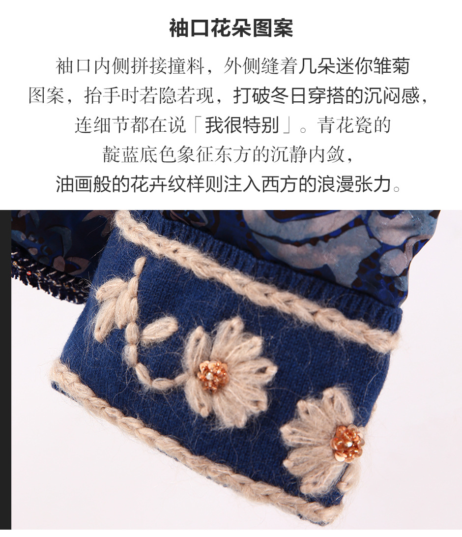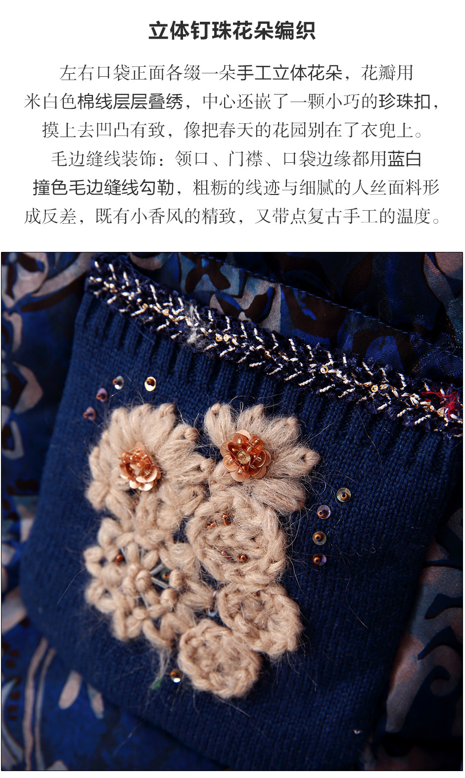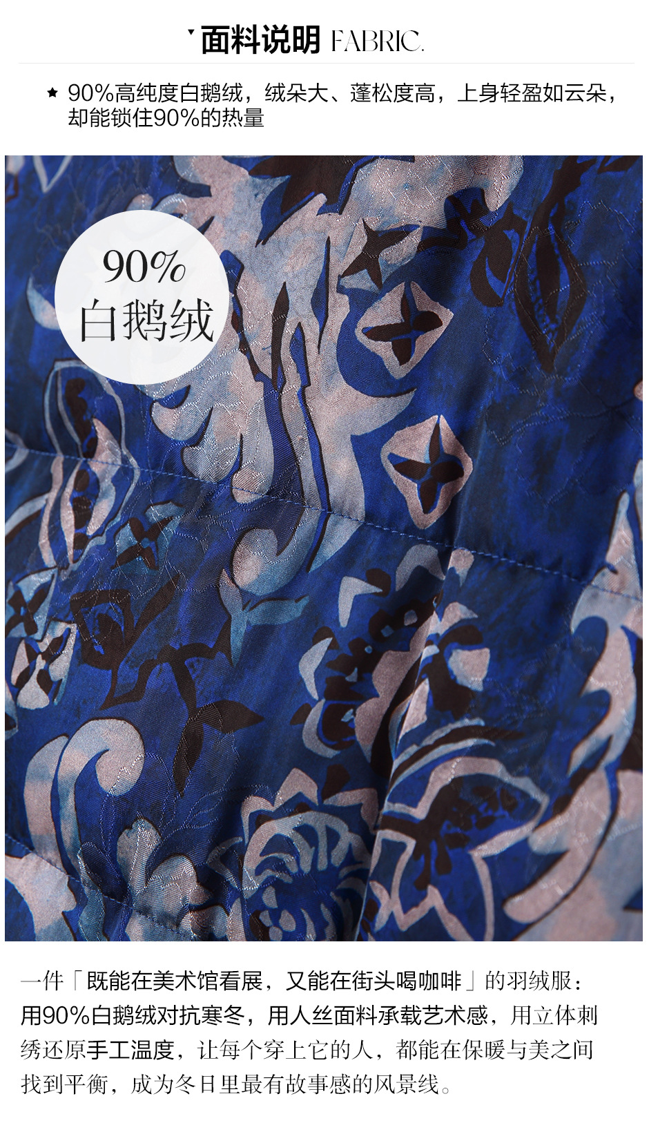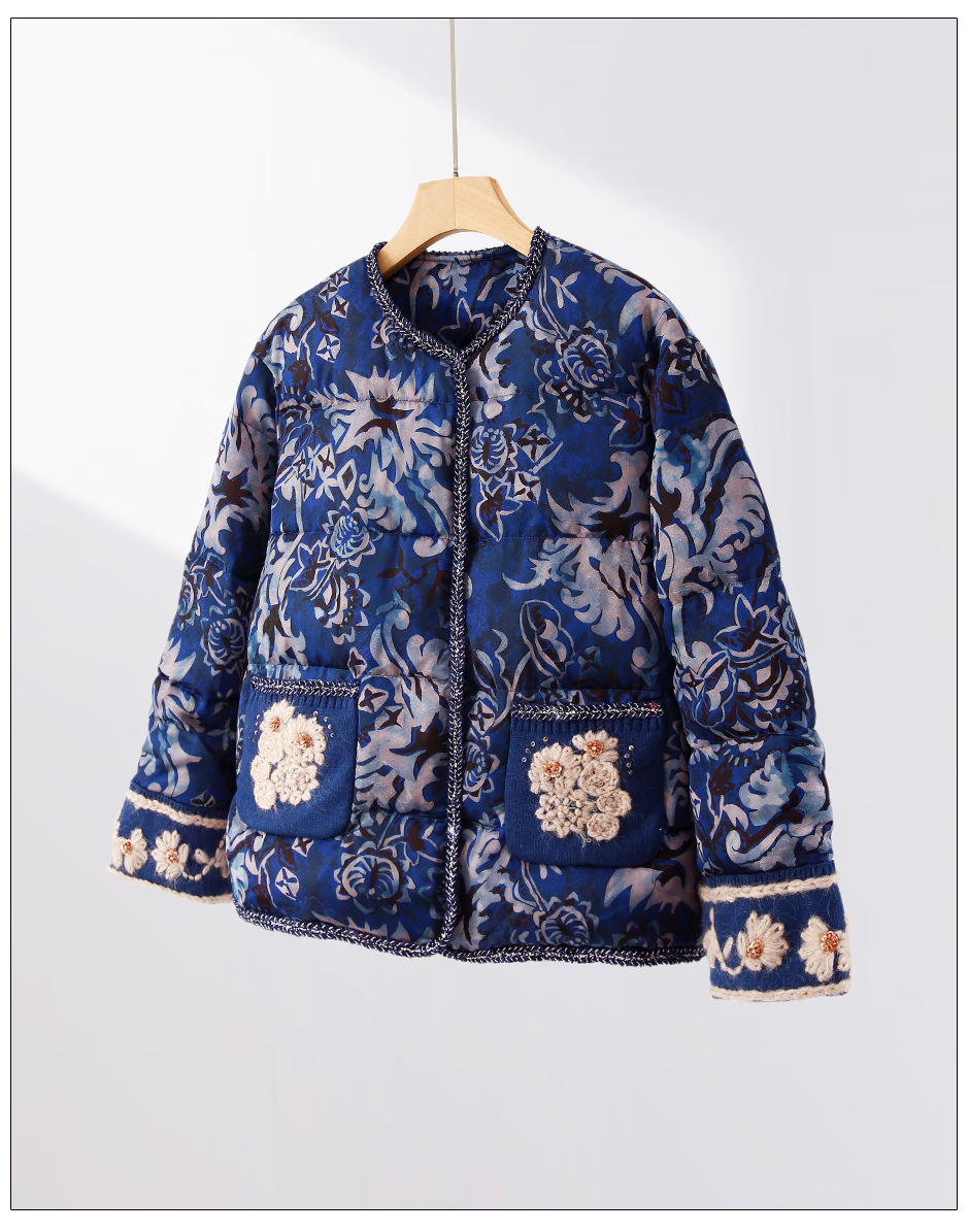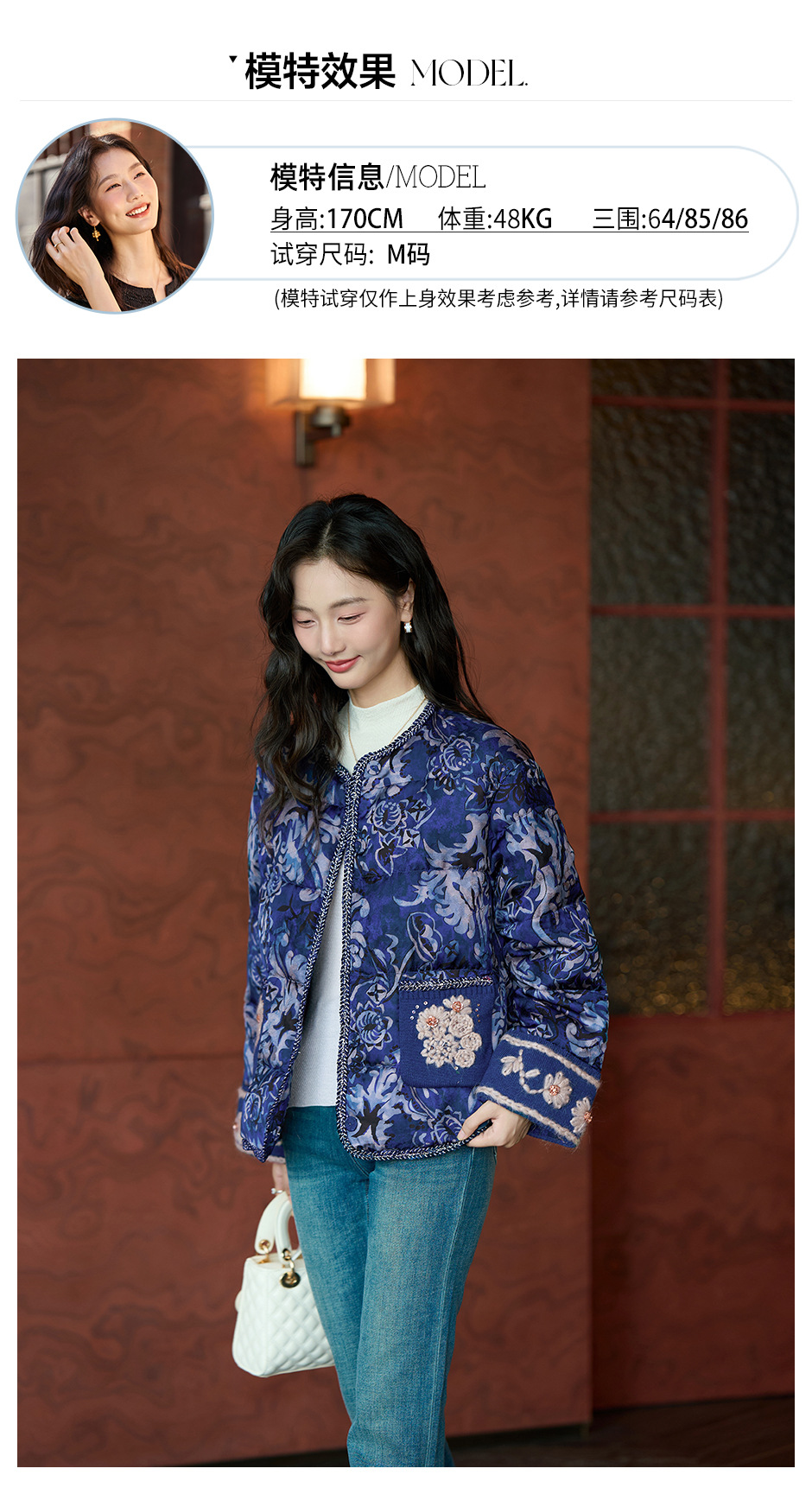 丁摩 复古青花瓷印花鹅绒羽绒服冬重工钉珠刺绣短款保暖外套5ZF-76071