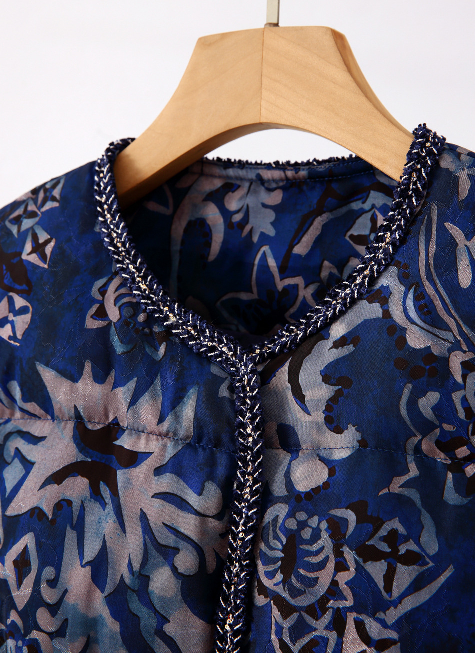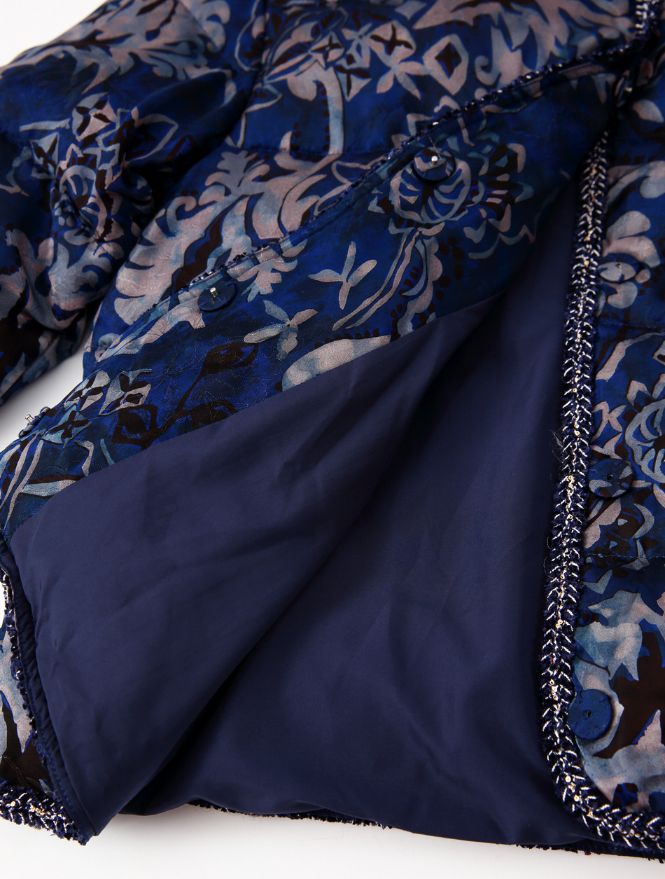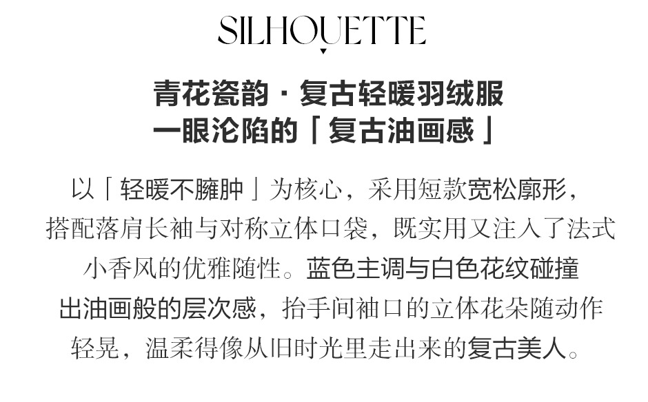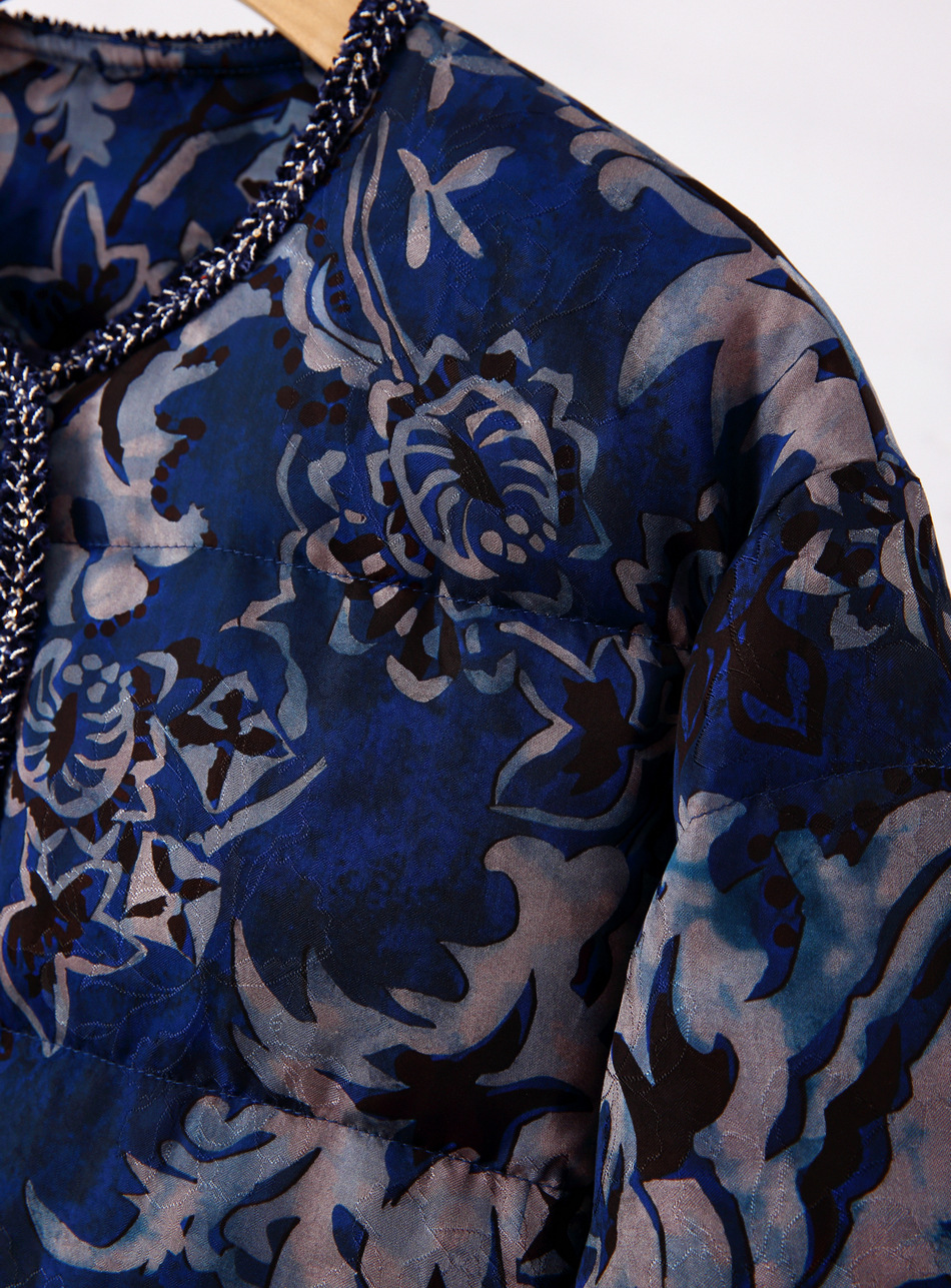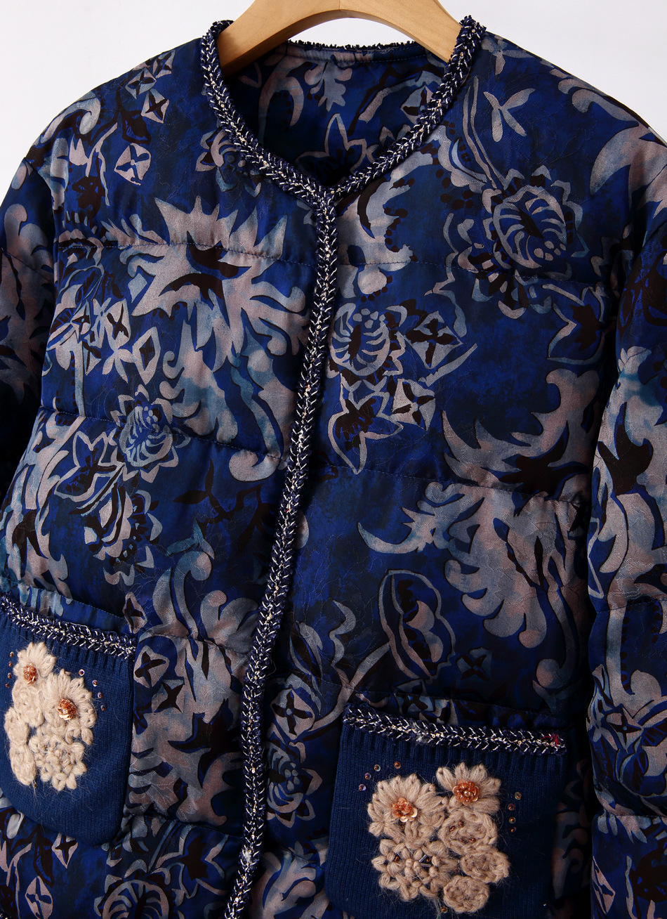 丁摩 复古青花瓷印花鹅绒羽绒服冬重工钉珠刺绣短款保暖外套5ZF-76071