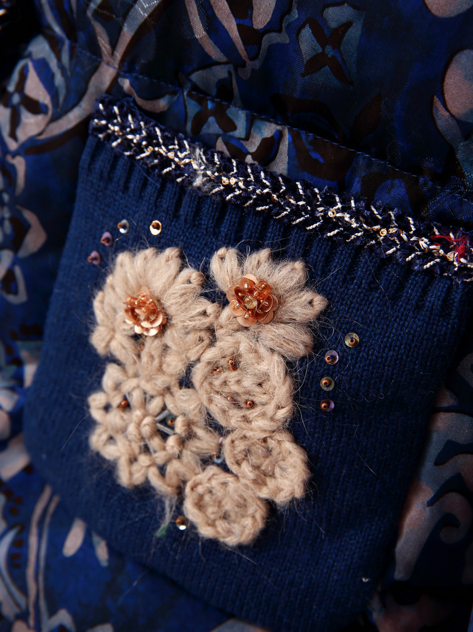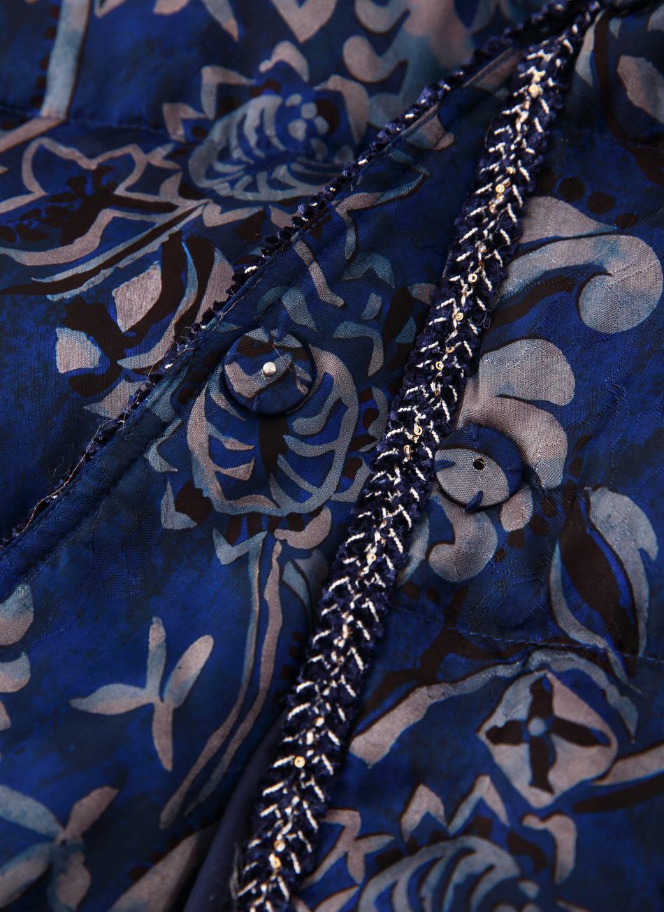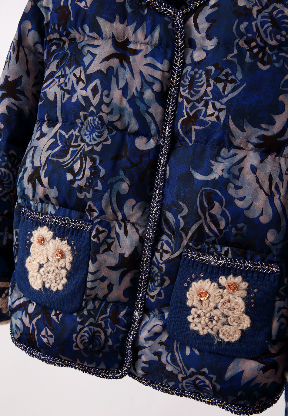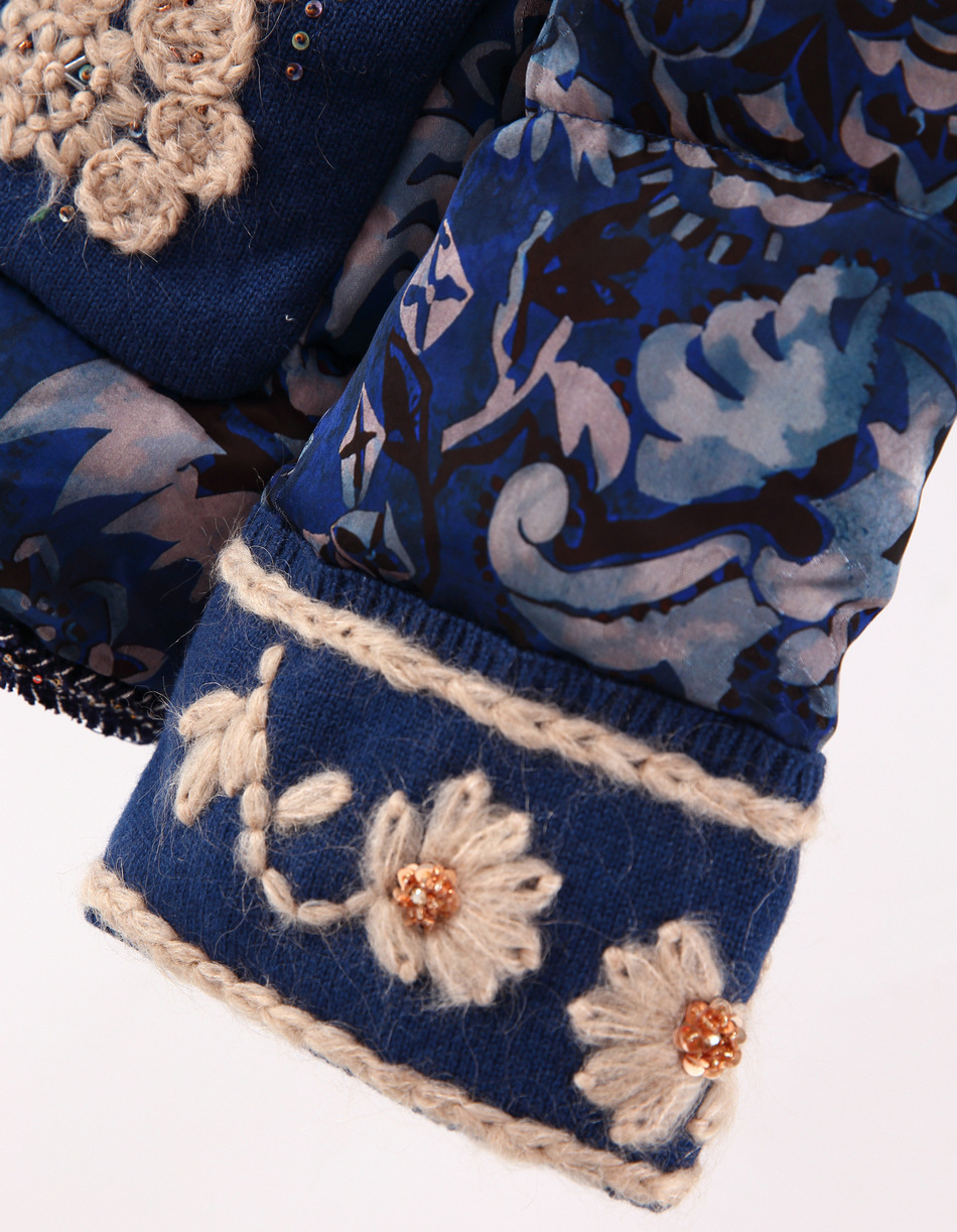 丁摩 复古青花瓷印花鹅绒羽绒服冬重工钉珠刺绣短款保暖外套5ZF-76071