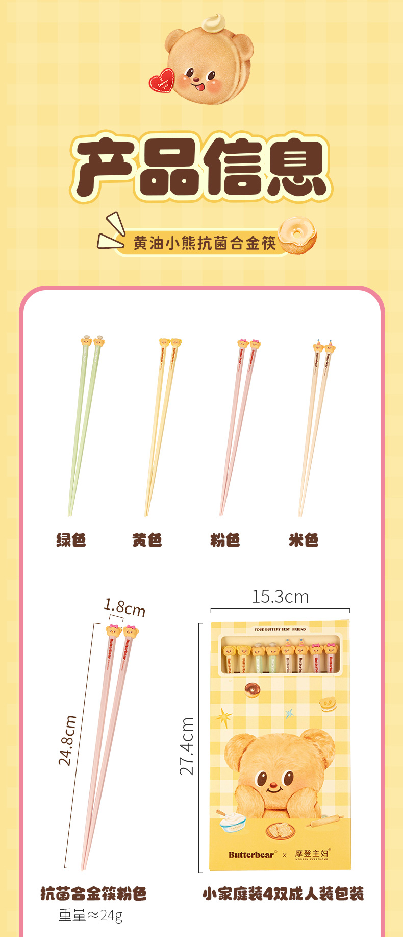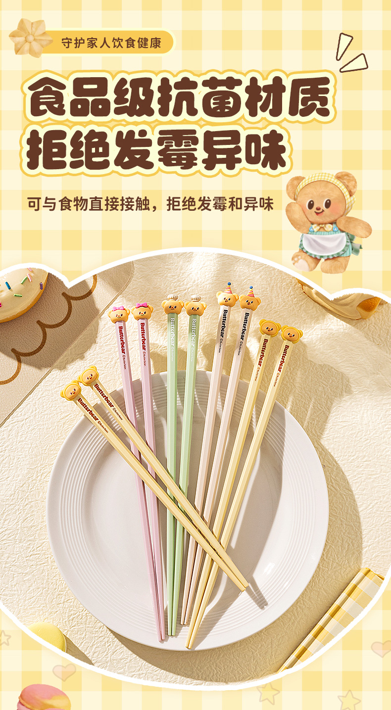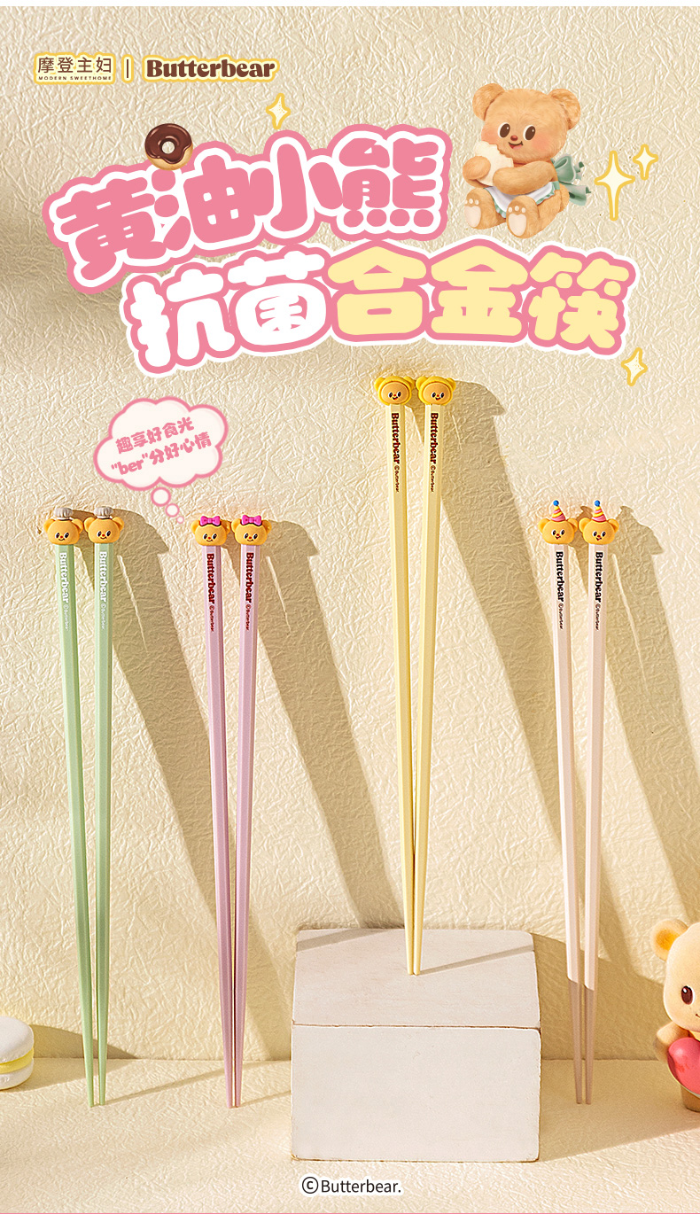 摩登主妇&黄油小熊 儿童筷子合金家用高档抗菌防霉专人专用筷