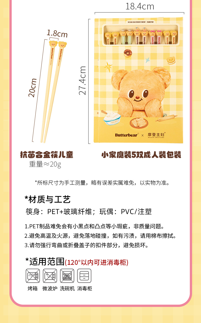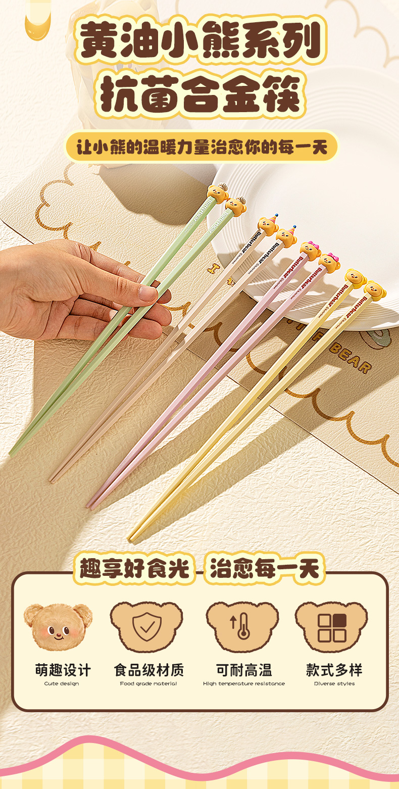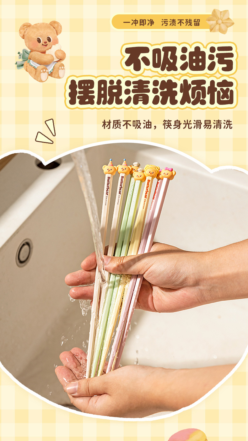 摩登主妇&黄油小熊 儿童筷子合金家用高档抗菌防霉专人专用筷