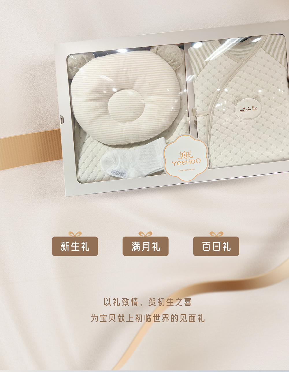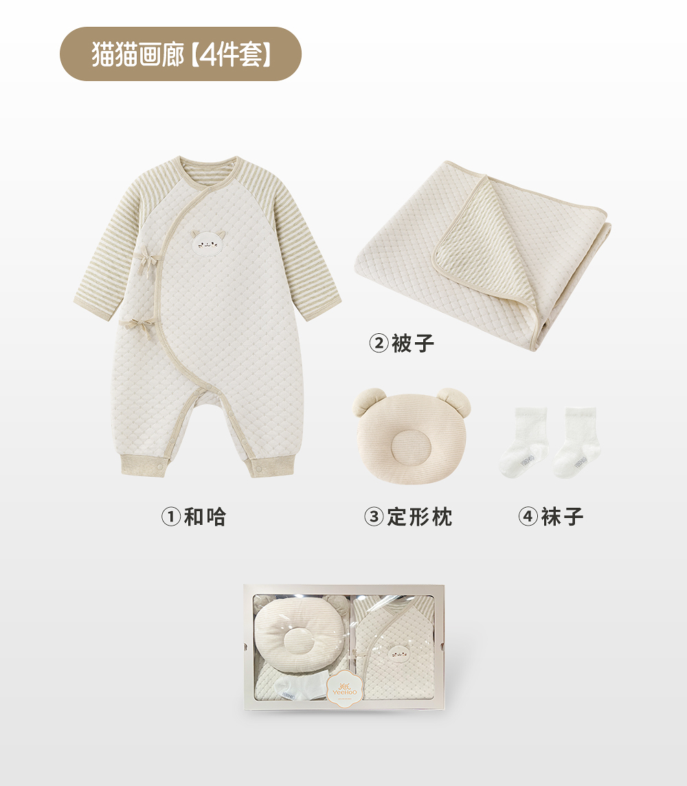 【商场同款】英氏新生儿宝宝满月出生礼物初生套装婴儿礼盒4件套