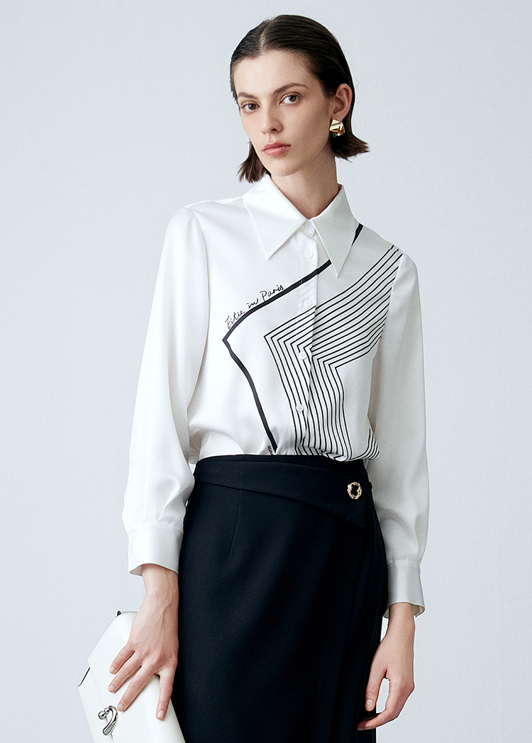 EITIE爱特爱春季新款时尚百搭显瘦印花衬衫女7709401