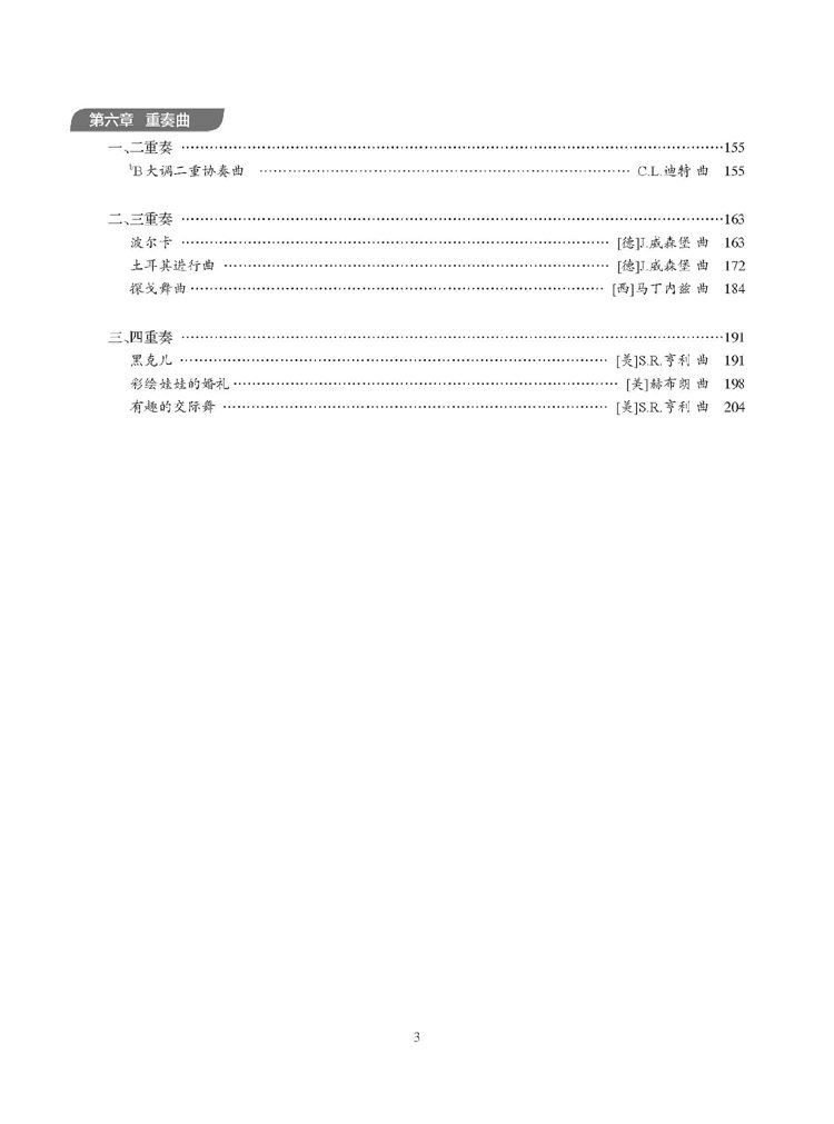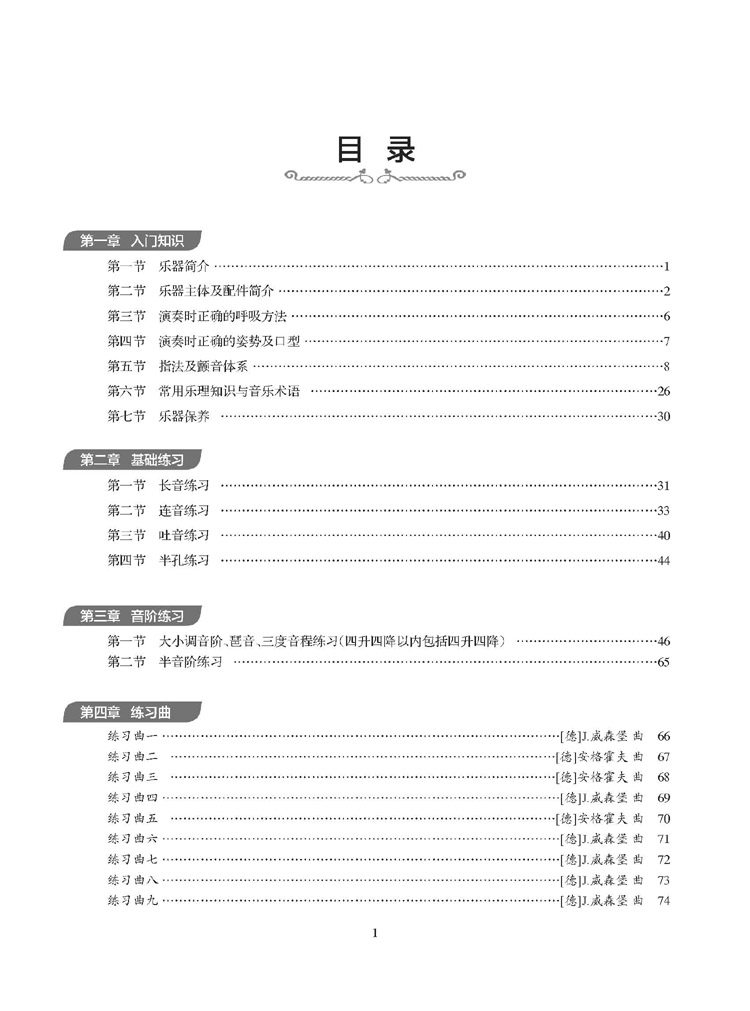 教材在突破以往谱例繁杂、版面陈旧等原则的基础上,以精心的内容编排,前沿的二维码技术全新呈现,是当前图书市场上不可多得的入门教程。 本书由入门知识、基础练习、音阶练习、练习曲、乐曲、重奏曲六章构成,第一章用简练的文字对该乐器的构造、呼吸方式、吹奏技巧等内容做了阐述,并配有视频解读;第二章是以长音练习、连音练习、吐音练习等为主的基础训练,以循序渐进的演练打下扎实的基本功;第三章的音阶练习集中了大小调音阶、琶音、三度音程等,这一训练是巴松日常练习的必备作业,只有通过以上不同技术型的练习才能使指法更灵活,气息运用更稳定;第四章和第五章分别是练习曲和乐曲的演练,练习曲里大多是从威森堡、米尔德等国外经典教材中优选而出,此外为增强学习者在演奏中合作能力、听辨能力、音乐表现能力,第六章特编入部分经典的重奏曲,如二重奏《降B大调二重奏协奏曲》、三重奏《探戈舞曲》《波尔卡舞曲》、四重奏《自由探戈》等,为以后学习室内乐及其他形式的重奏曲打下良好基础。为让本书更具实用性,书中大部分内容都精心录制了视频,其中不仅有作者的独奏讲解,还有学生配合演练,读者只需扫码,即可随看、随学。教材内容充实,科学实用,文字简明,是学习吹奏巴松的启蒙教材,适合初、中级阶段的学员,也可作为大管专业培训教材和教学参考用书。