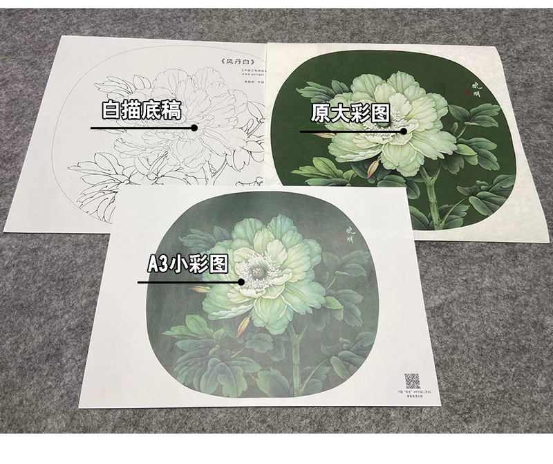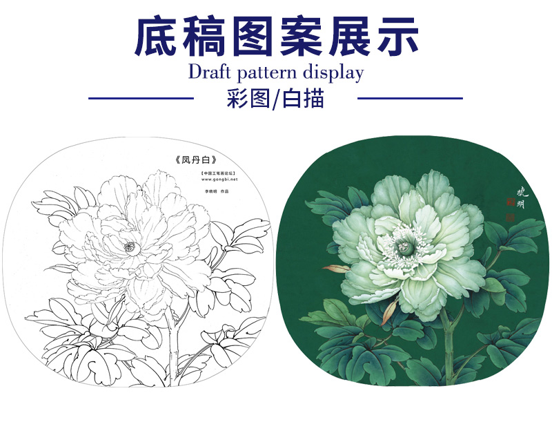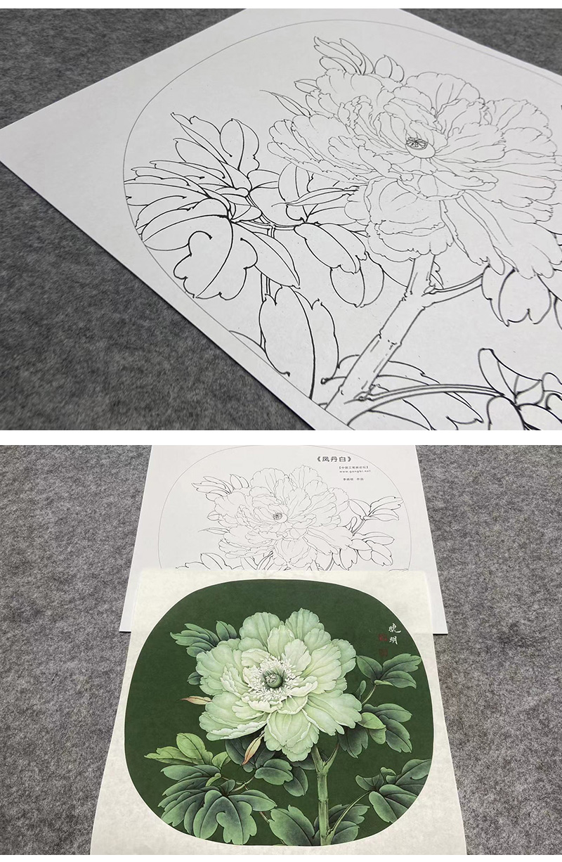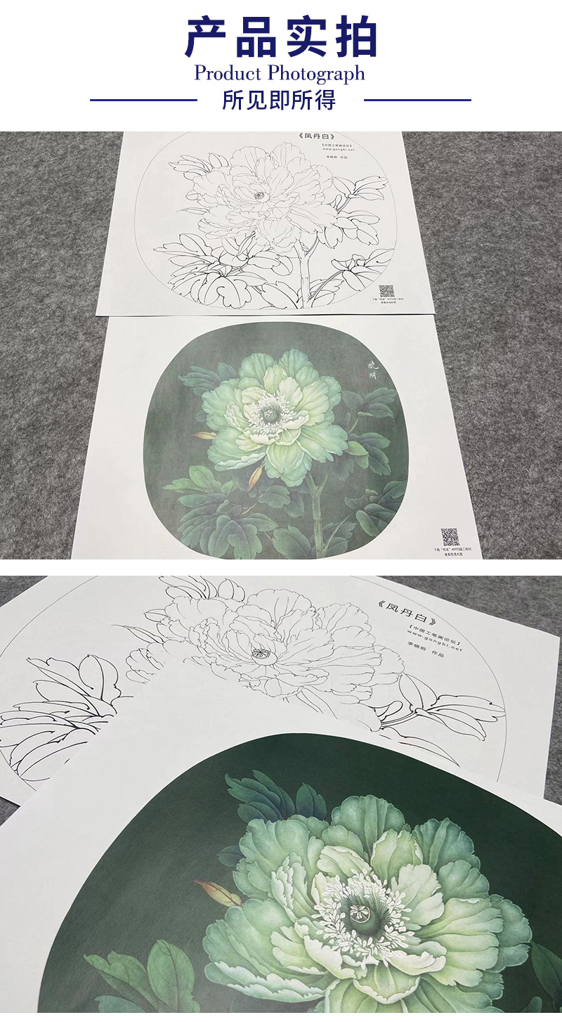 【大彩图】李晓明工笔画白描底稿小品《凤丹白》牡丹临摹勾线花鸟线稿K013