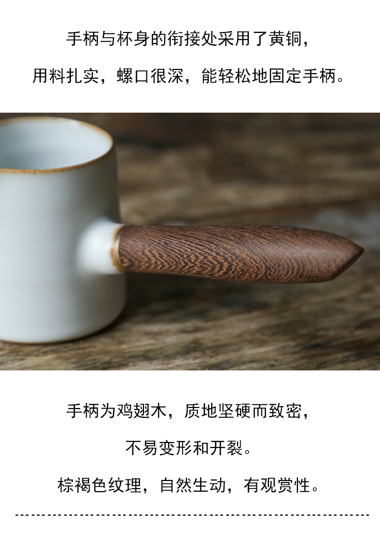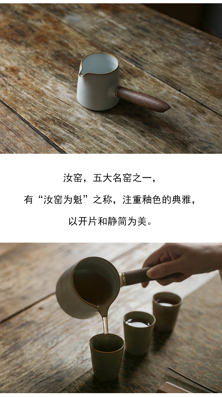 茶香记 李现锋 月白汝窑木柄侧把手公道杯 素雅静简 可拆卸手柄 细节十足 便携实用 功夫茶具