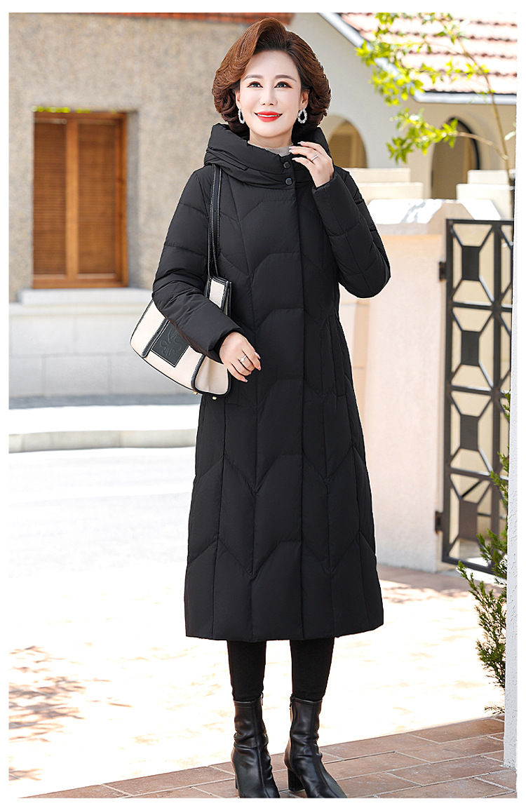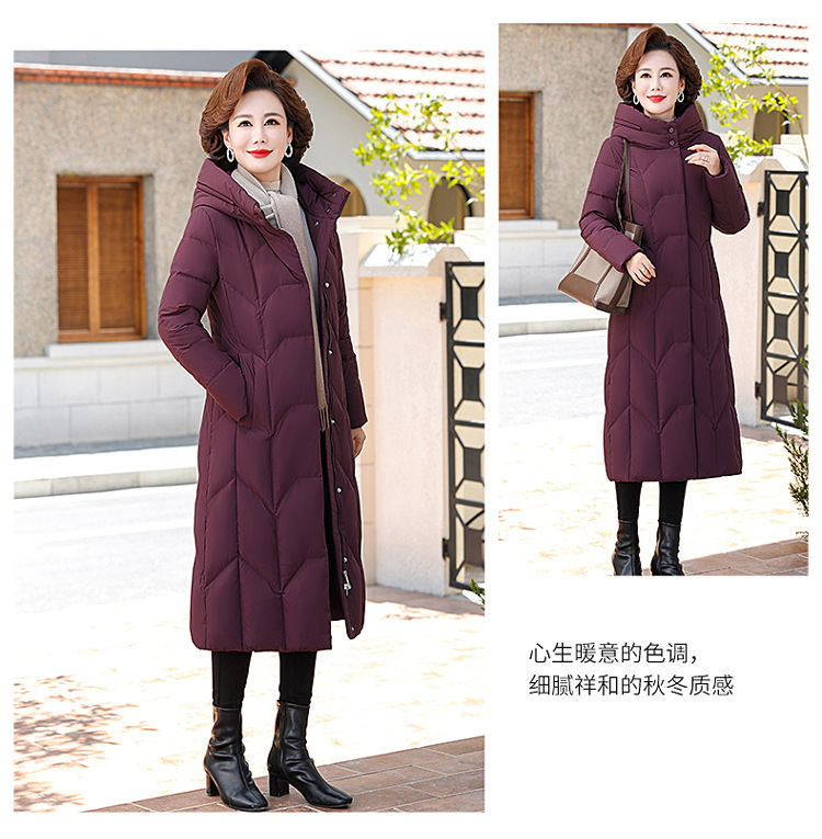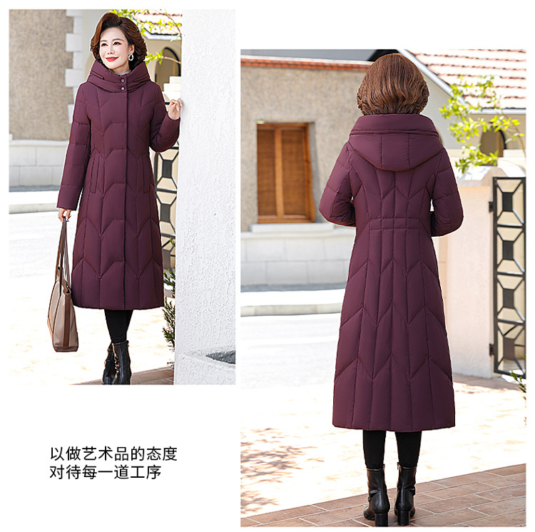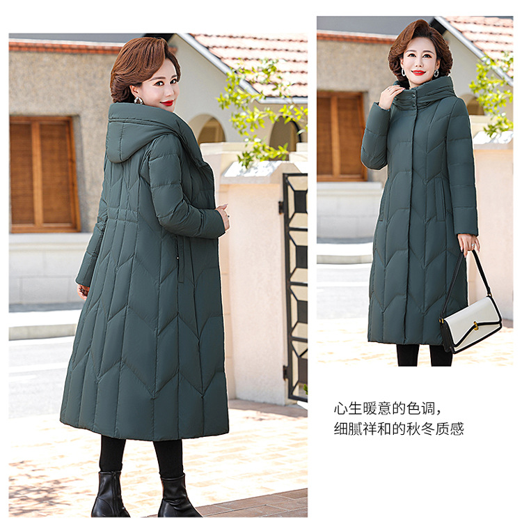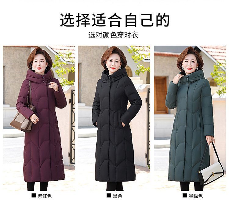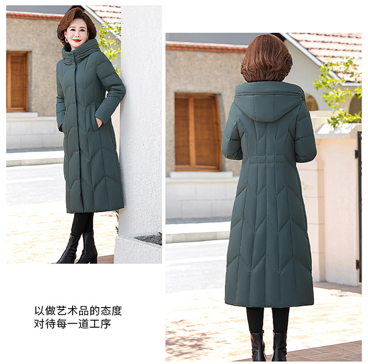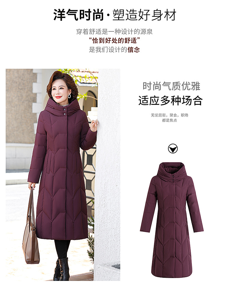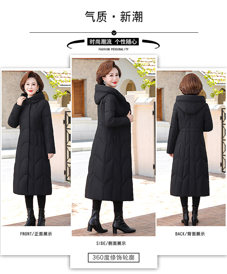 HXX 23898羽绒服过膝加厚时尚妈妈装修身连帽保暖外套