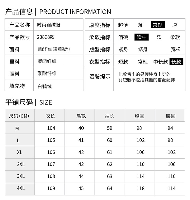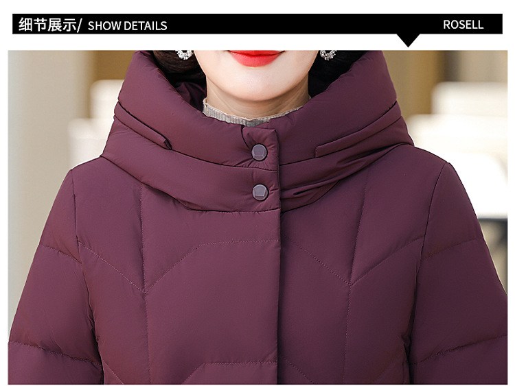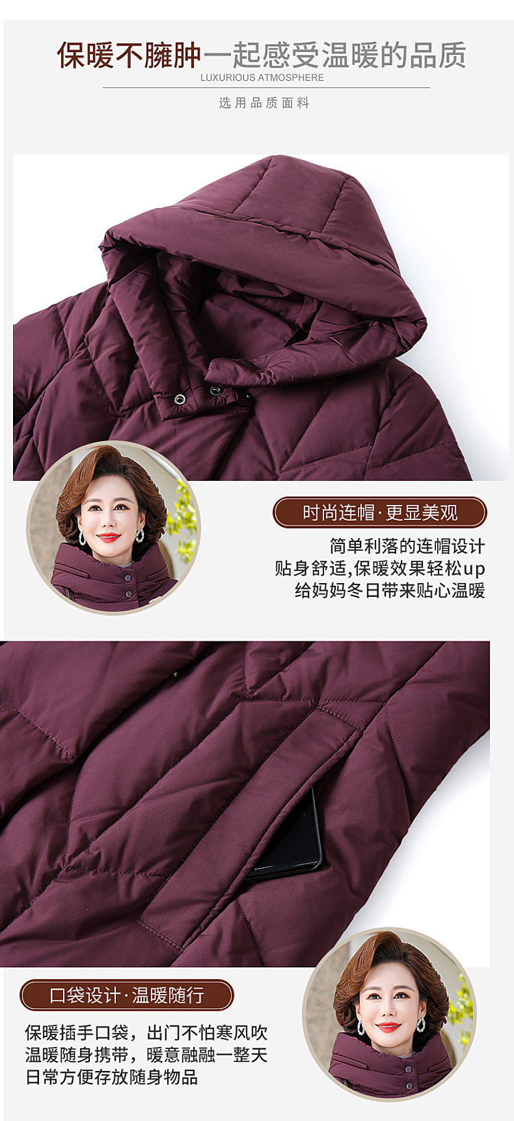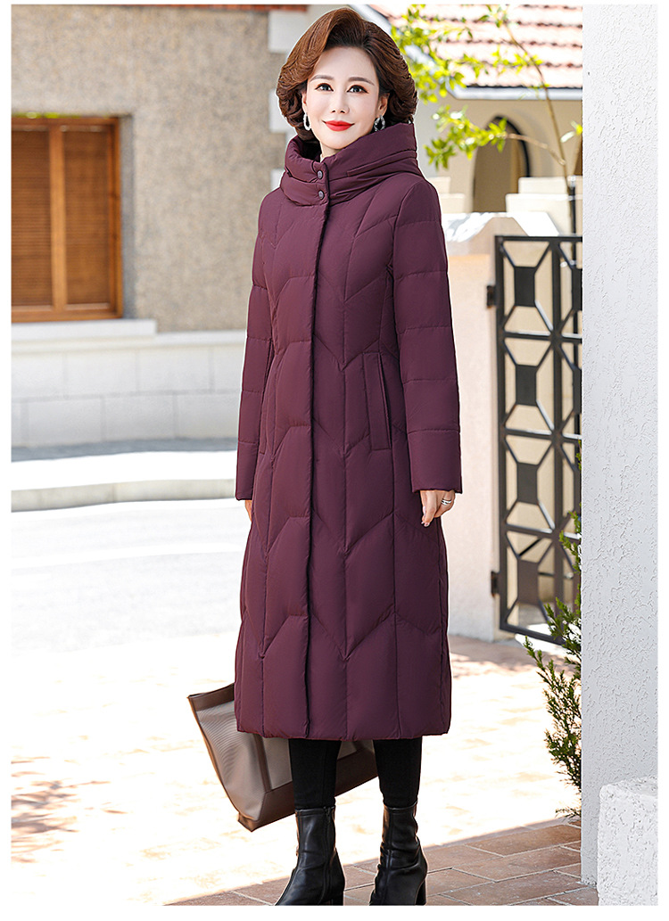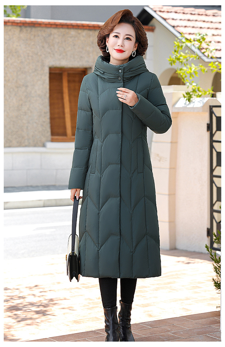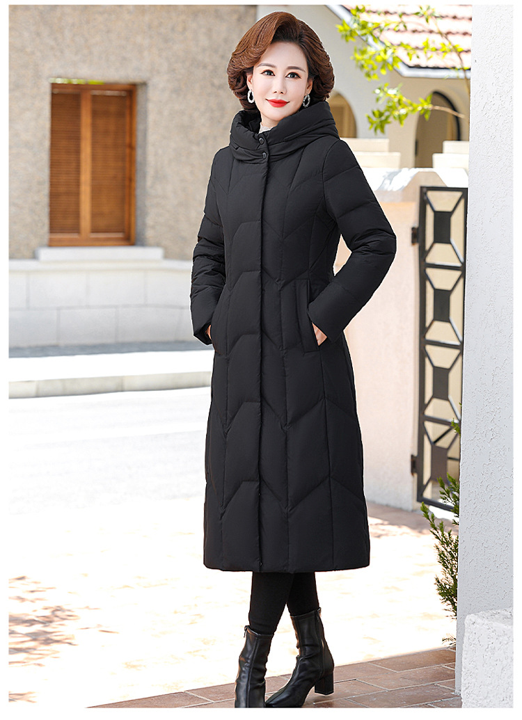 HXX 23898羽绒服过膝加厚时尚妈妈装修身连帽保暖外套