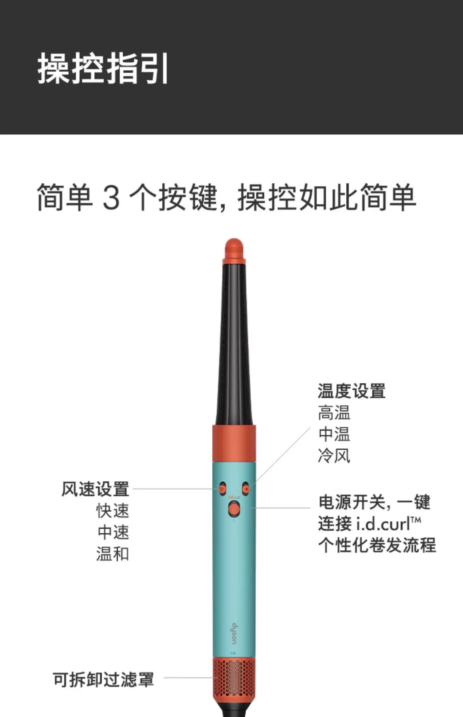 Dyson戴森 HS08智能多功能美发棒卷直两用卷发棒吹风机护发蓝牙款