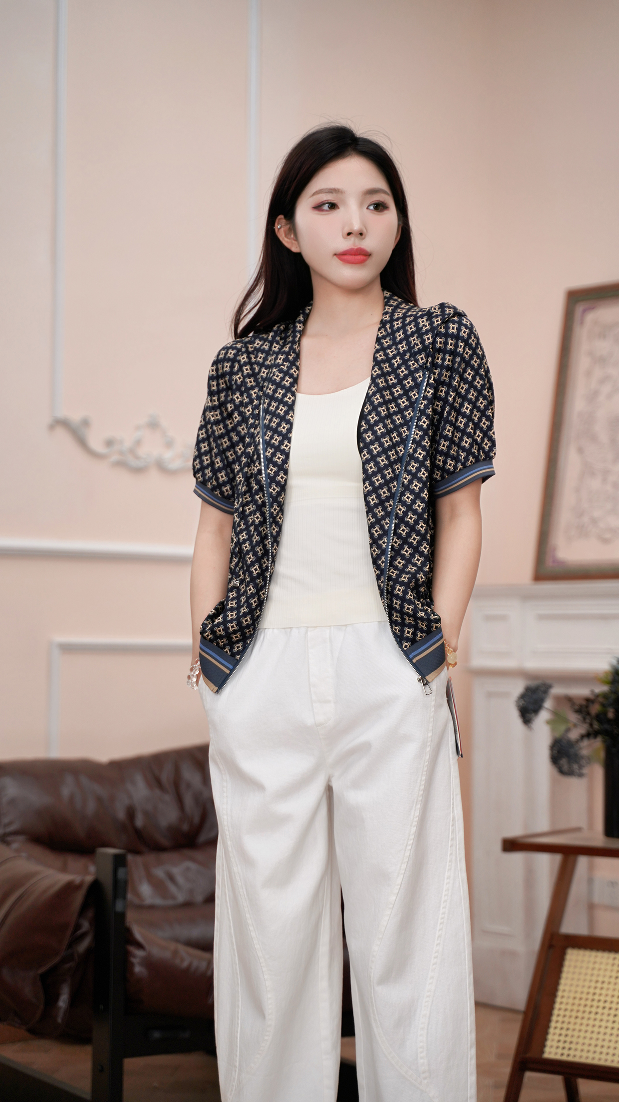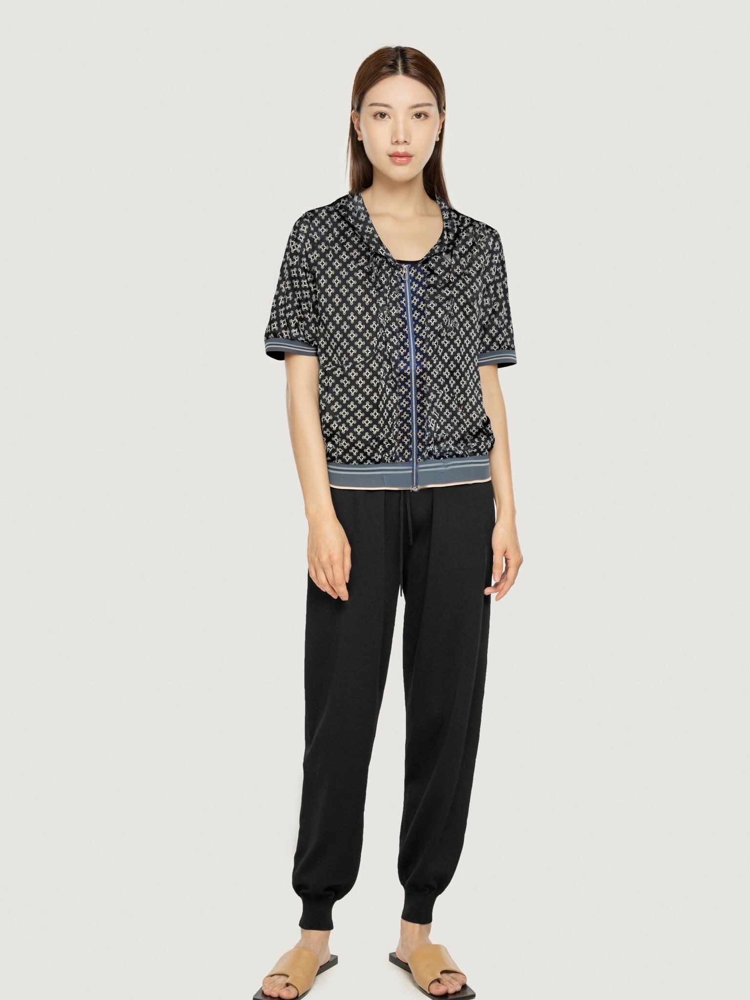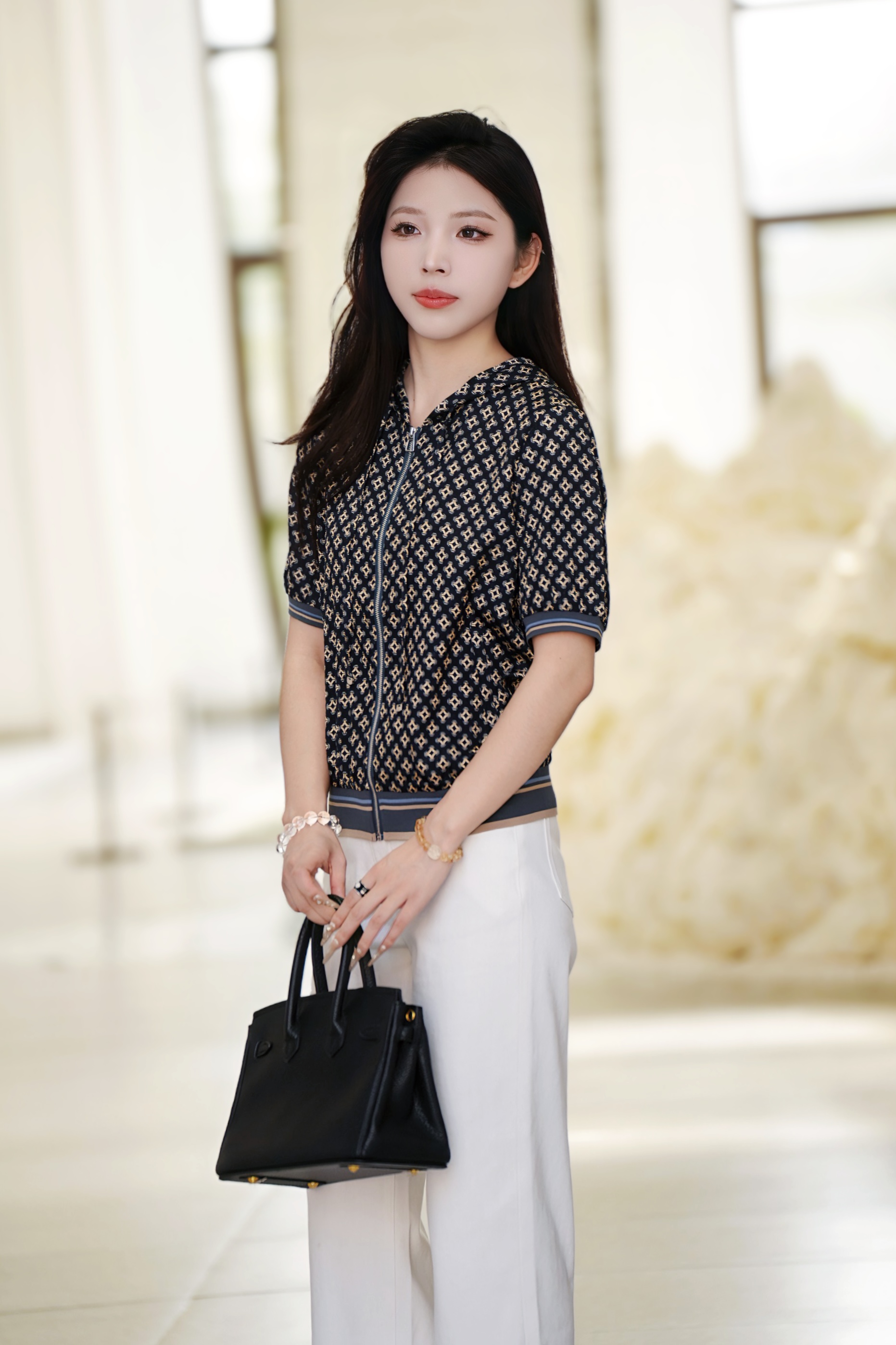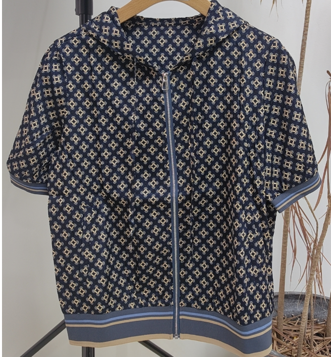 现货不补 臣禾 【老钱风真丝上衣】 连帽短袖休闲拉链外套 JZ251010138