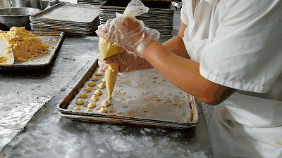 Step 5:一小时内快速挤团,全部进入烤箱,防止气泡塌陷,影响酥脆口感