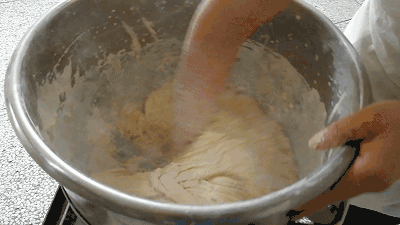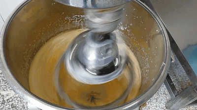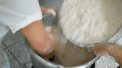 Step 2:打出足够多的气泡后,加入有机低筋面粉