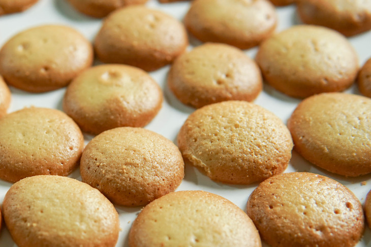不使用稳定剂和膨化剂,只能靠人力搅打获取酥脆口感。即便如此,蛋心圆也会有因为裱花前后气泡充盈程度不同导致的口感轻微个体差异,有的偏紧实,有的偏酥脆,我们认为反而增添乐趣,完全不影响食用。