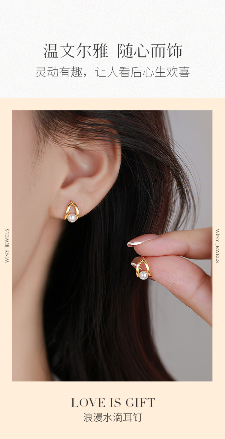 Winy925纯银浪漫水滴耳钉轻奢小众高级感耳饰送女友闺蜜生日礼物