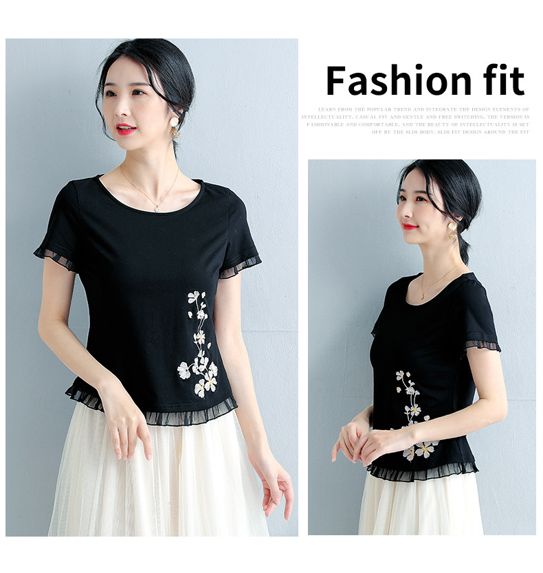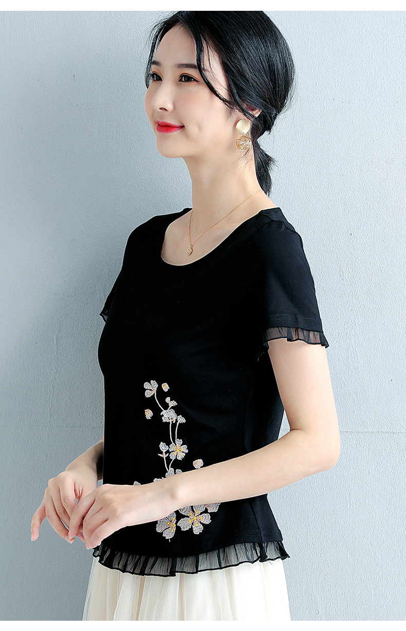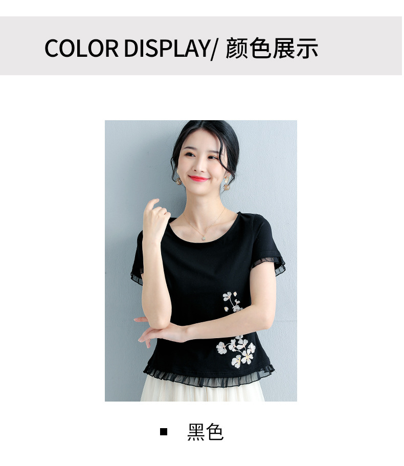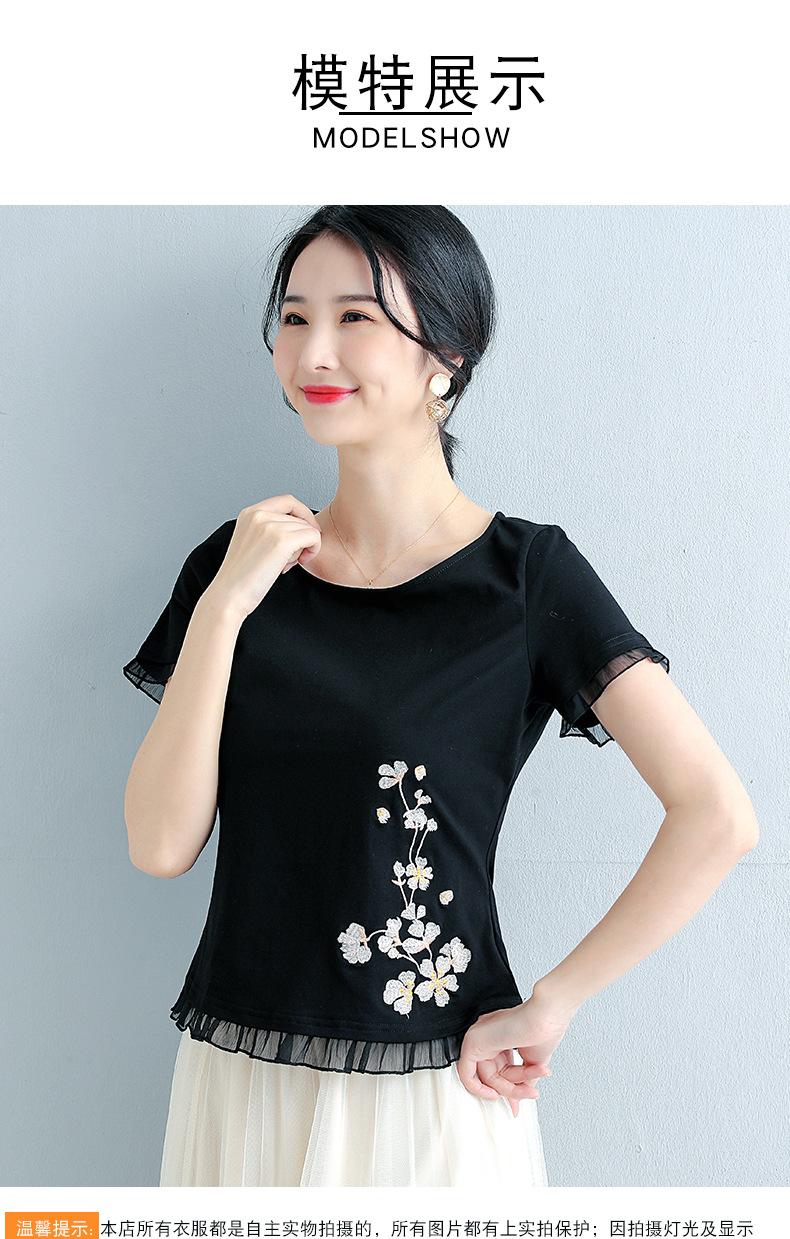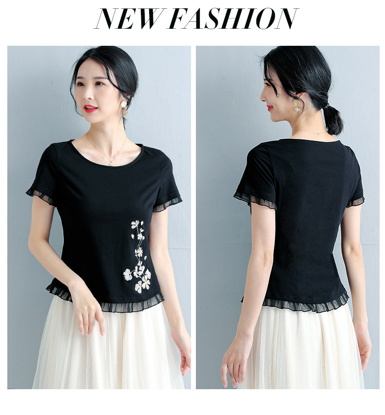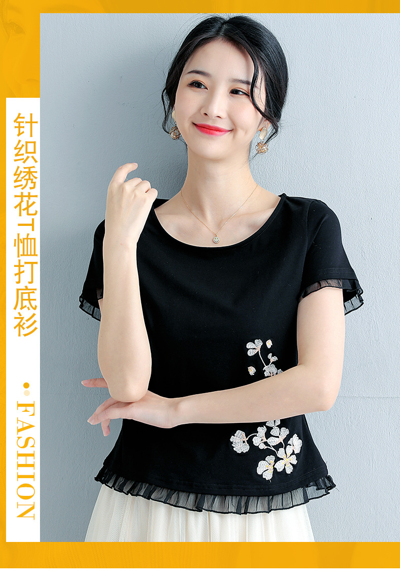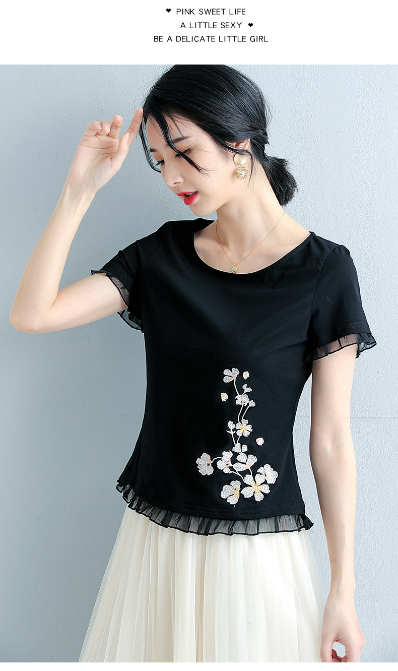 夏季棉洋气雪纺边修身短款时尚小衫LM06562
