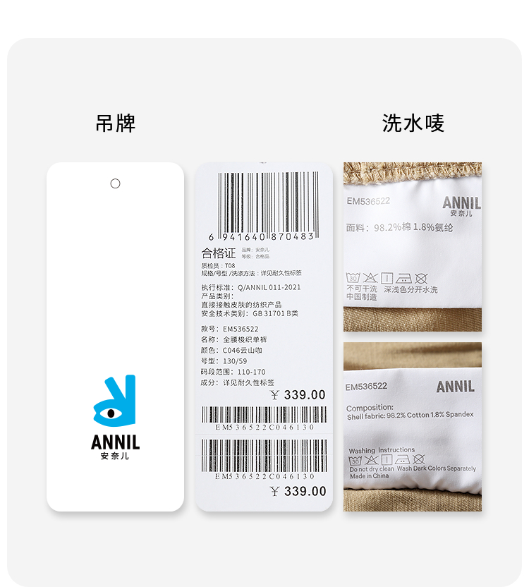 男女童全腰梭织单裤秋季新款安奈儿童装EM536522