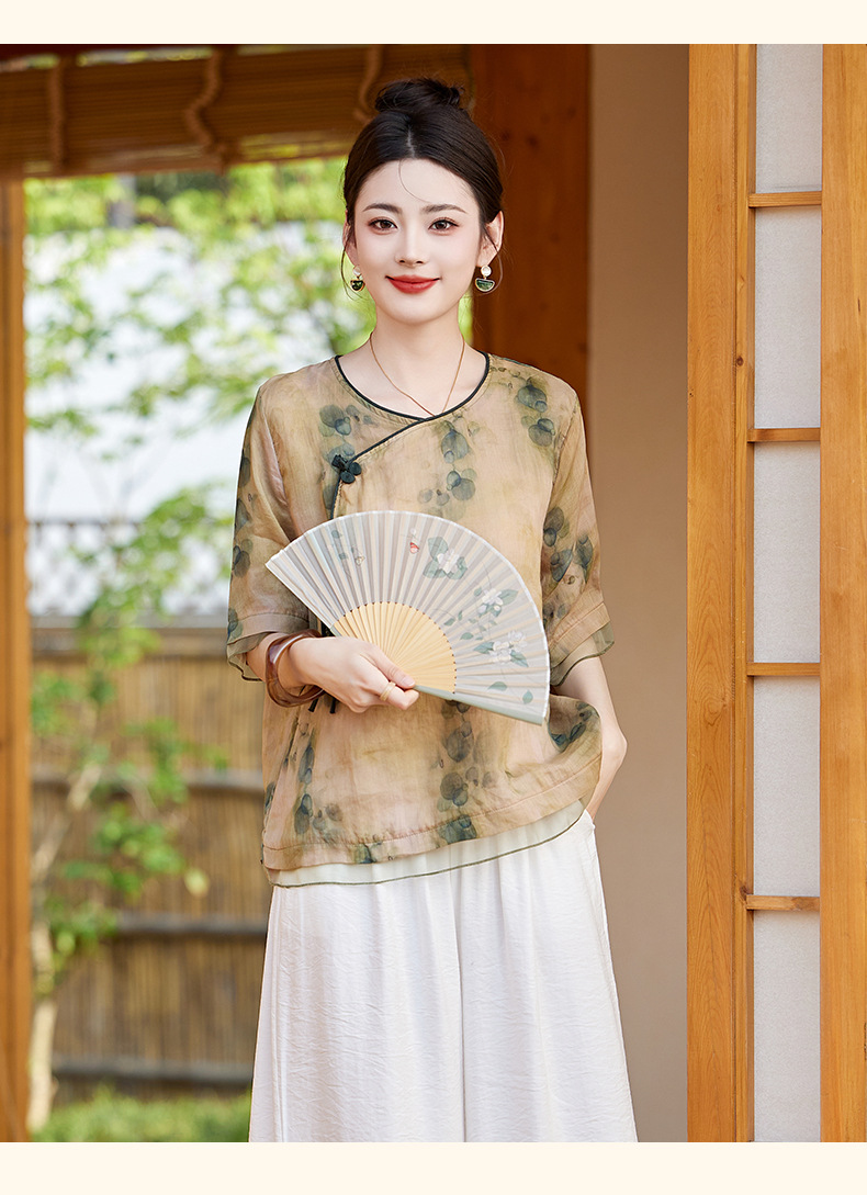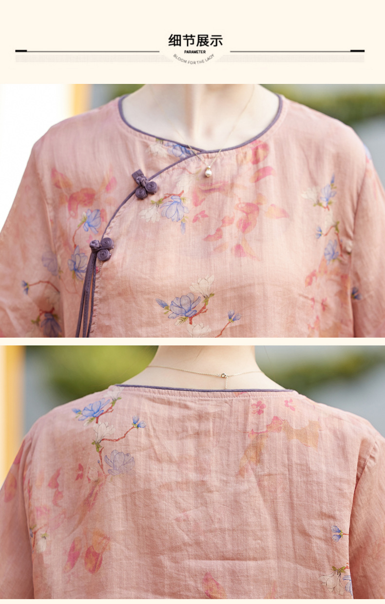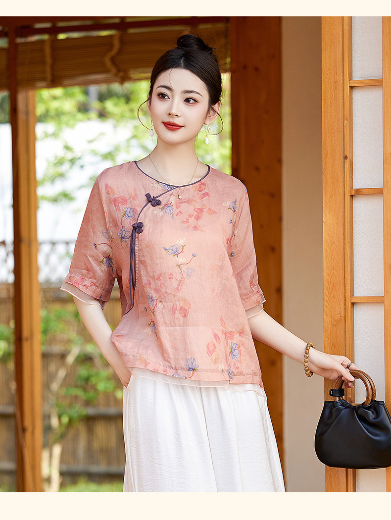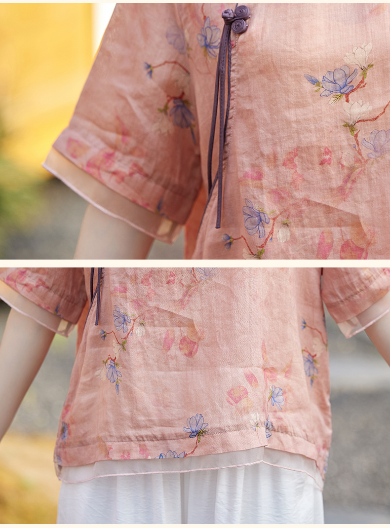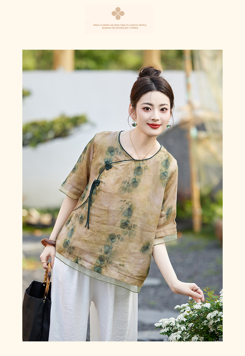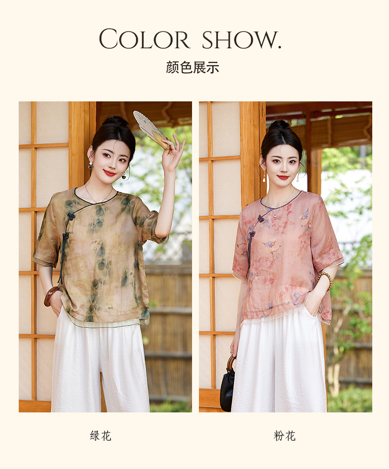 丁摩 高端碎花上衣苎麻【套装】亚麻女装夏季时尚两件套棉麻阔腿裤5ZF-86122