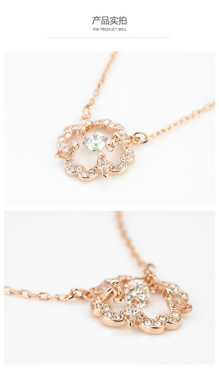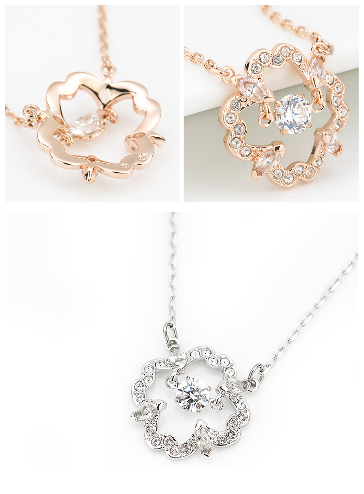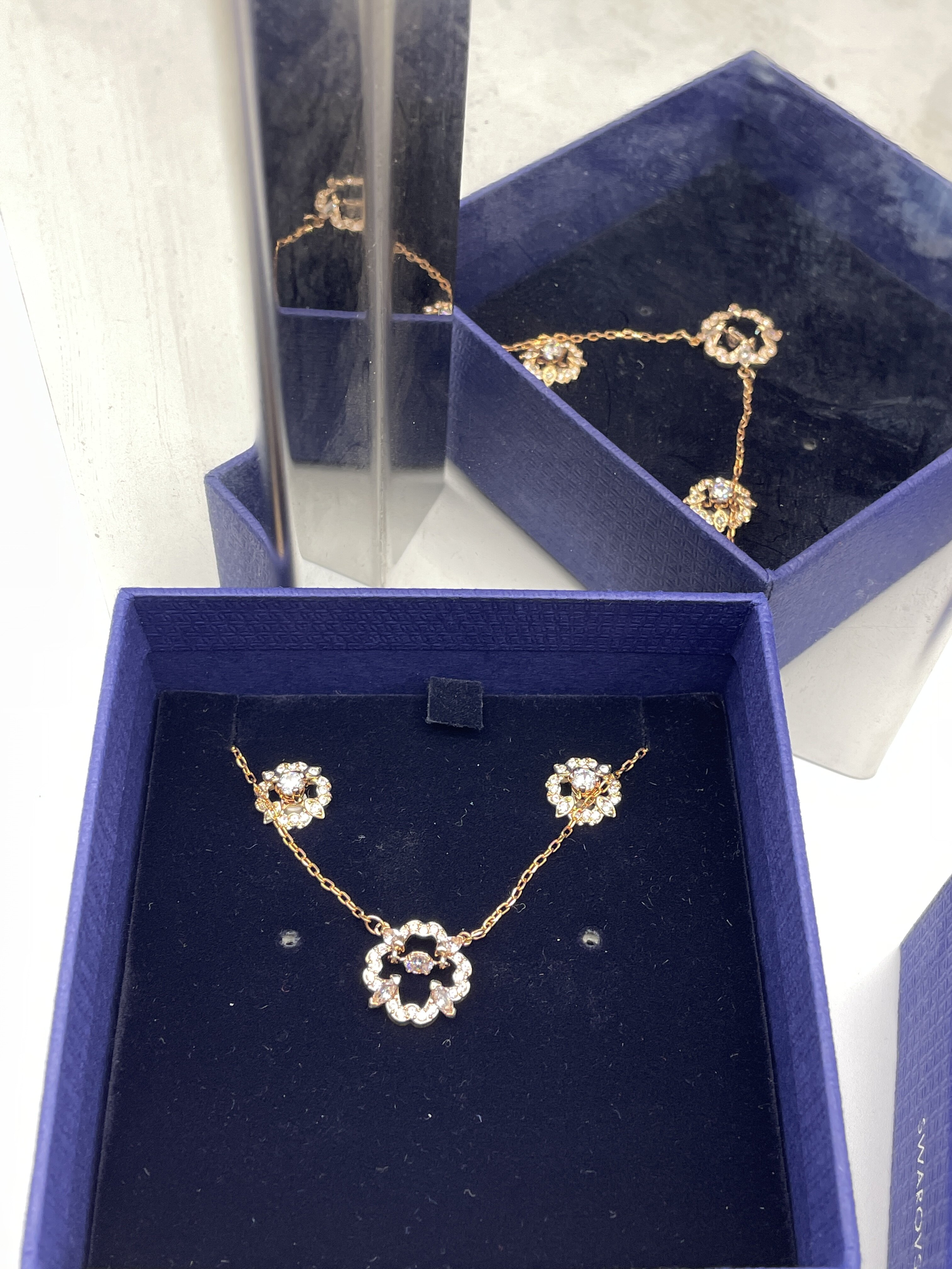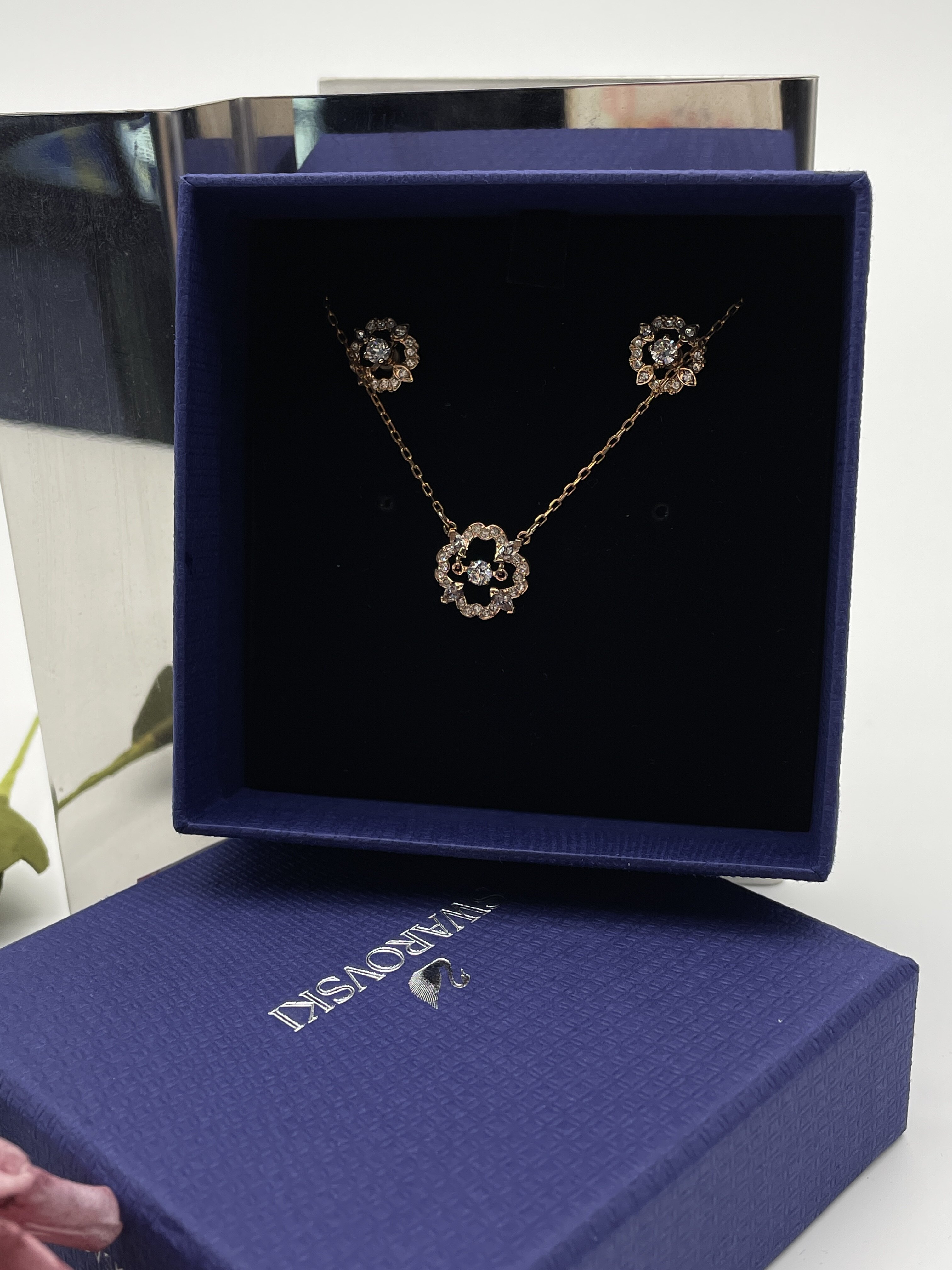 Swarovski 施华洛世奇闪动花朵项链耳钉套装金色