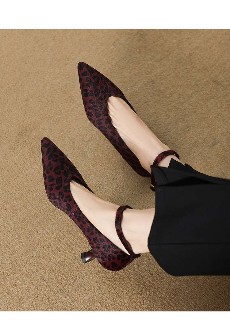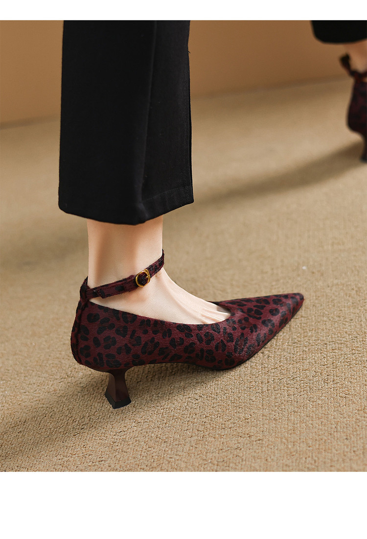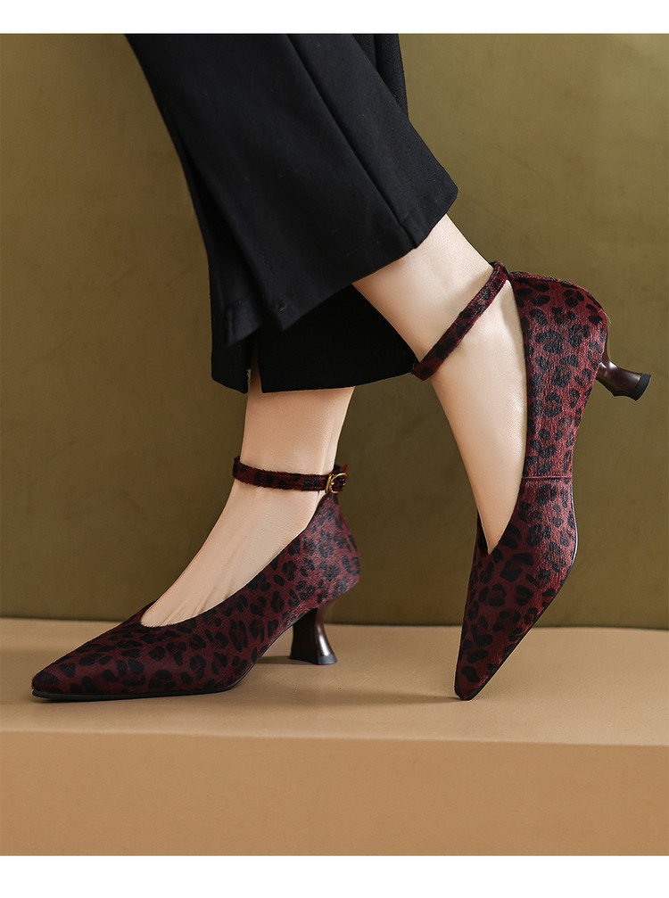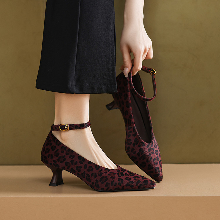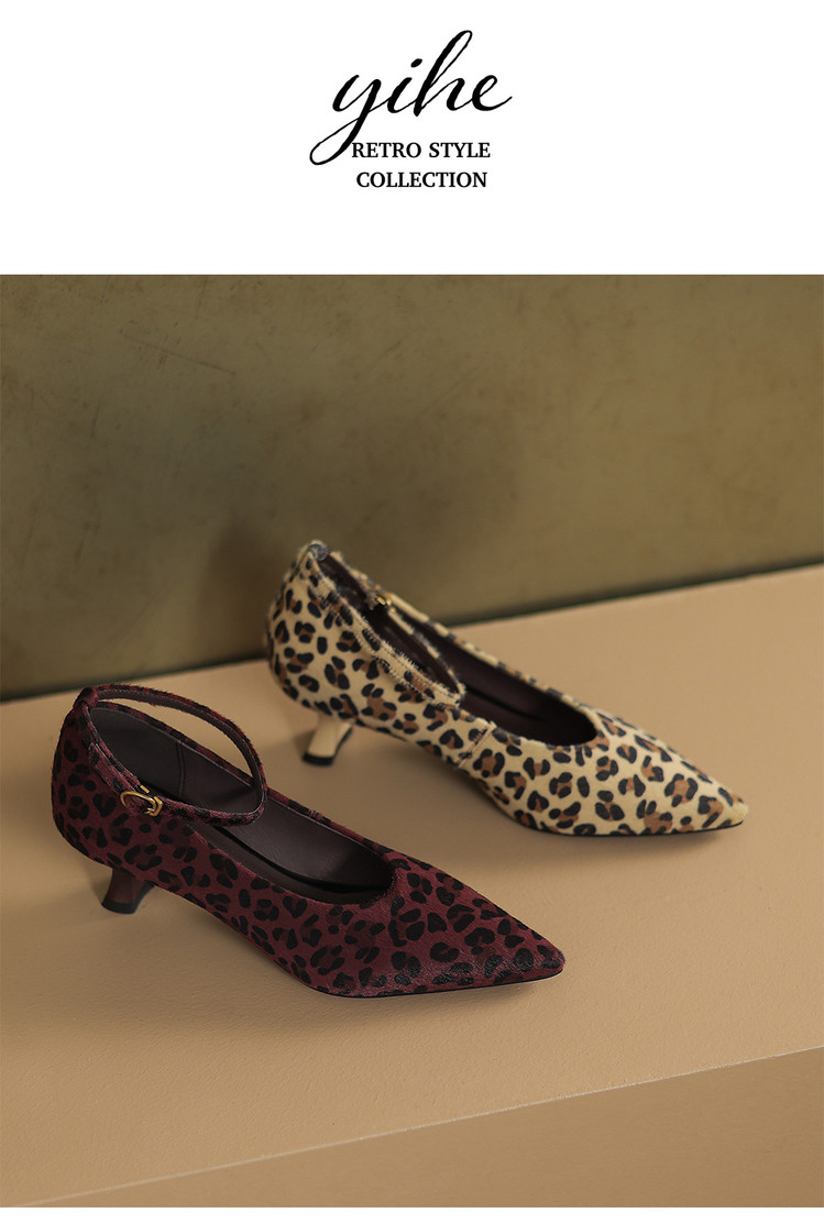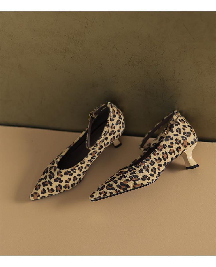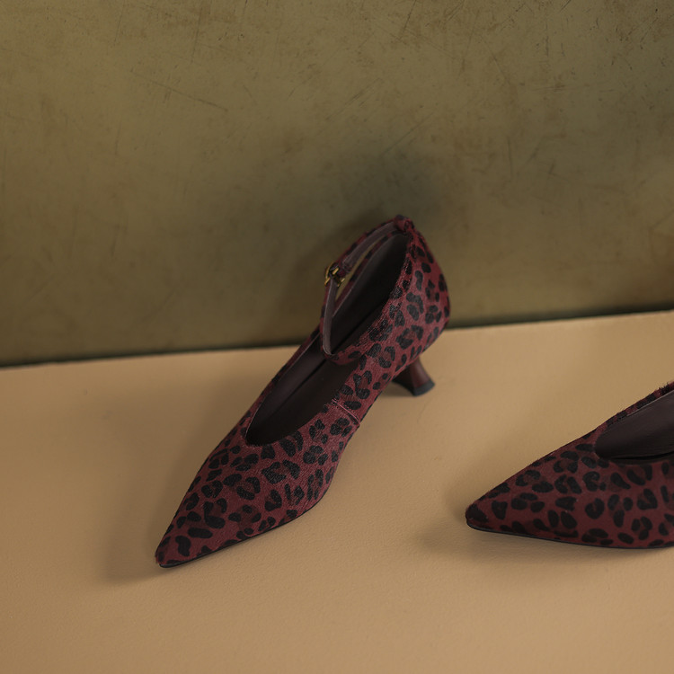 【预售5天】法式小众豹纹女单鞋细跟V口猫跟尖头一字带搭扣复古风玛丽珍单鞋JLY&18-536