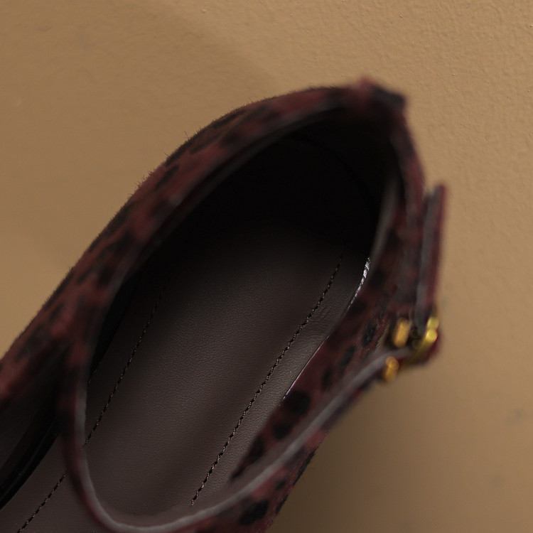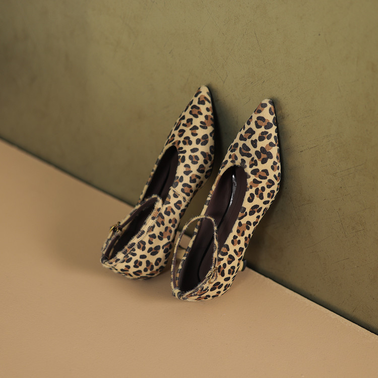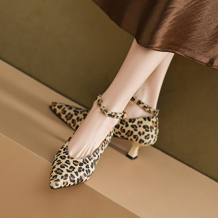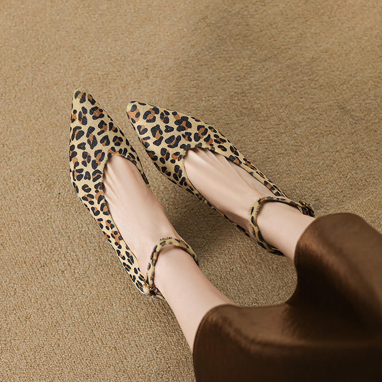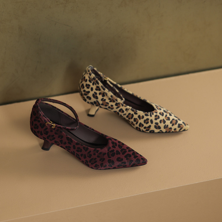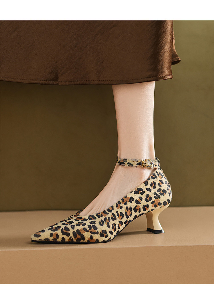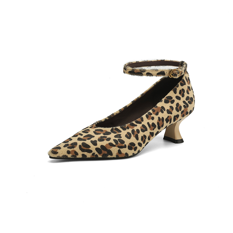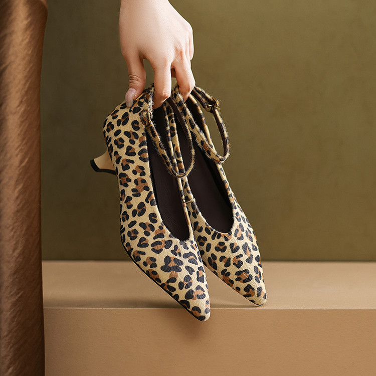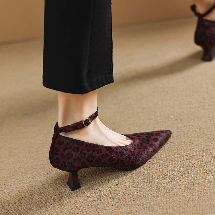 【预售5天】法式小众豹纹女单鞋细跟V口猫跟尖头一字带搭扣复古风玛丽珍单鞋JLY&18-536