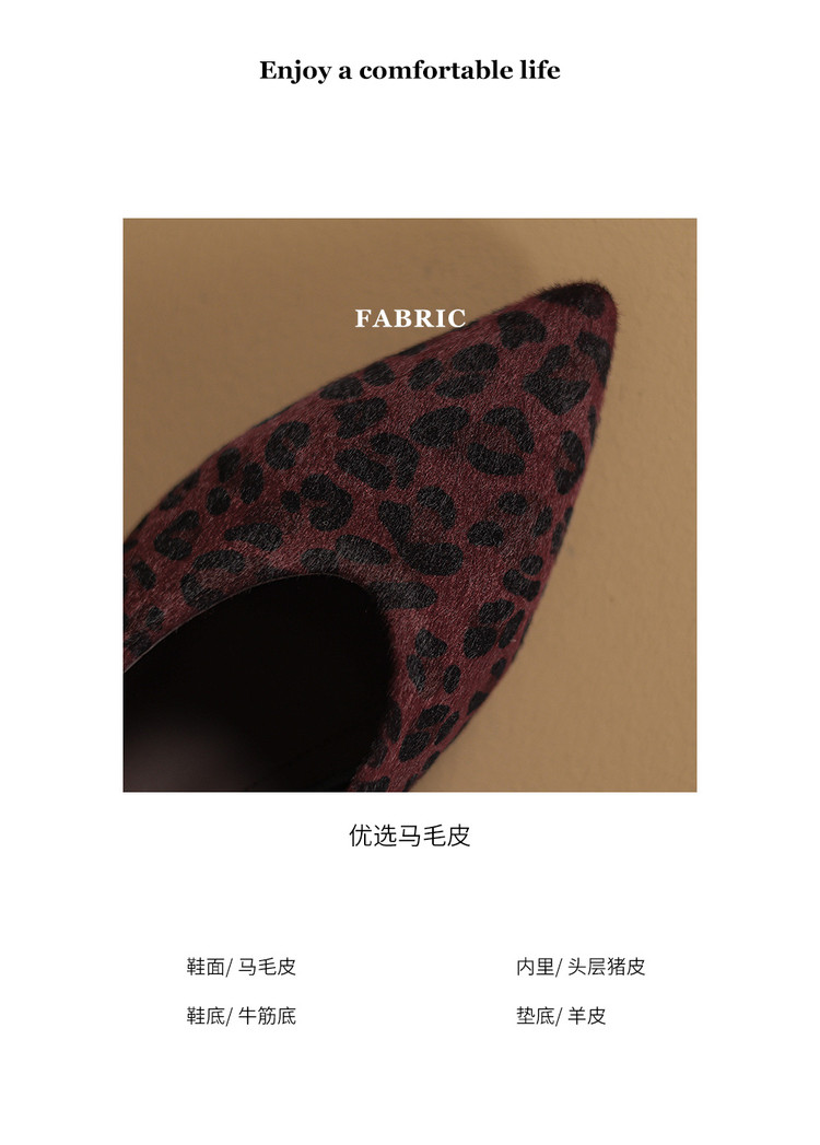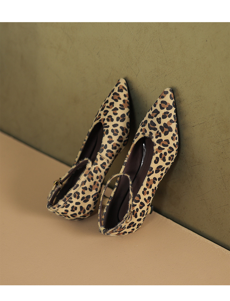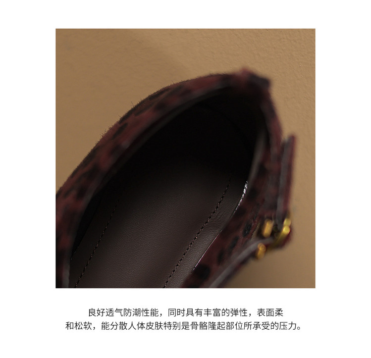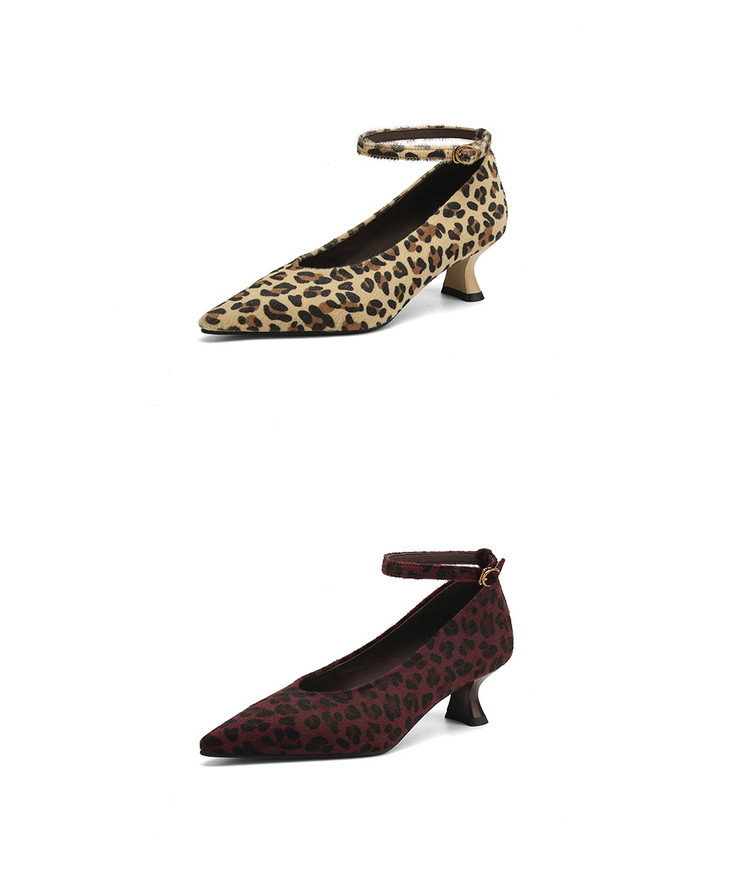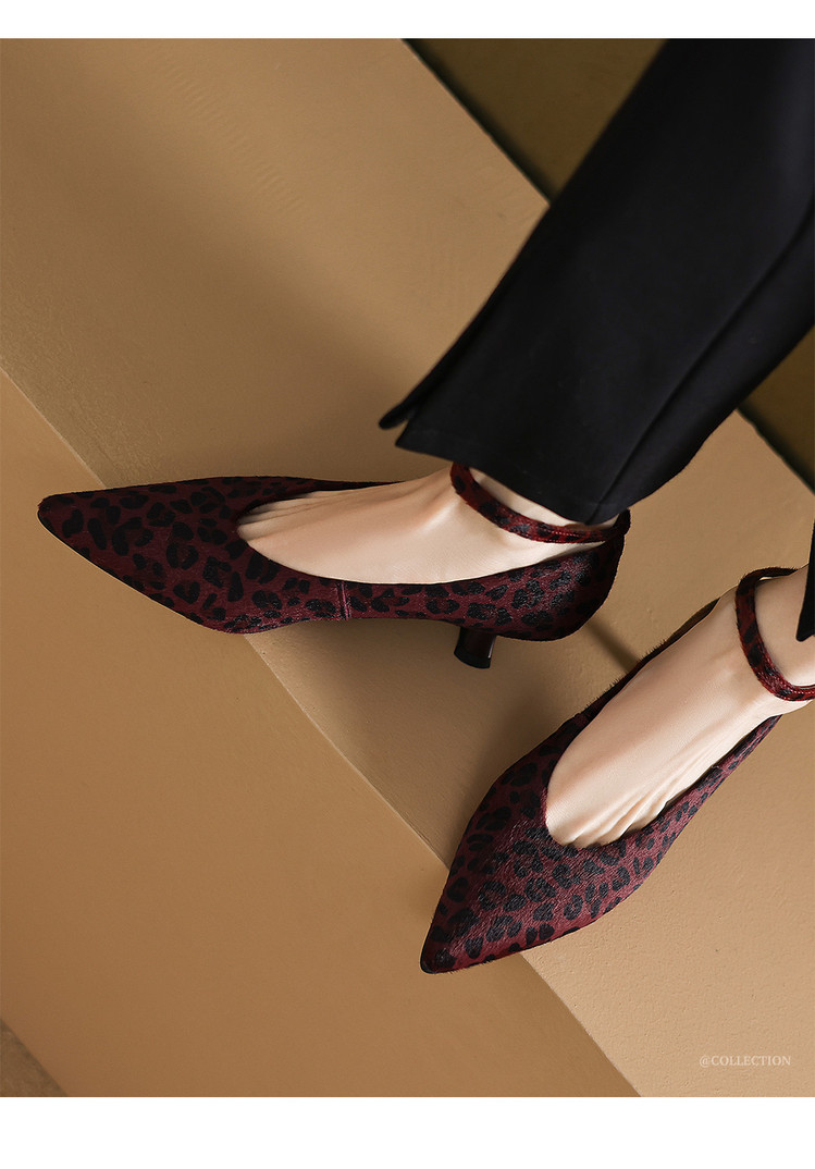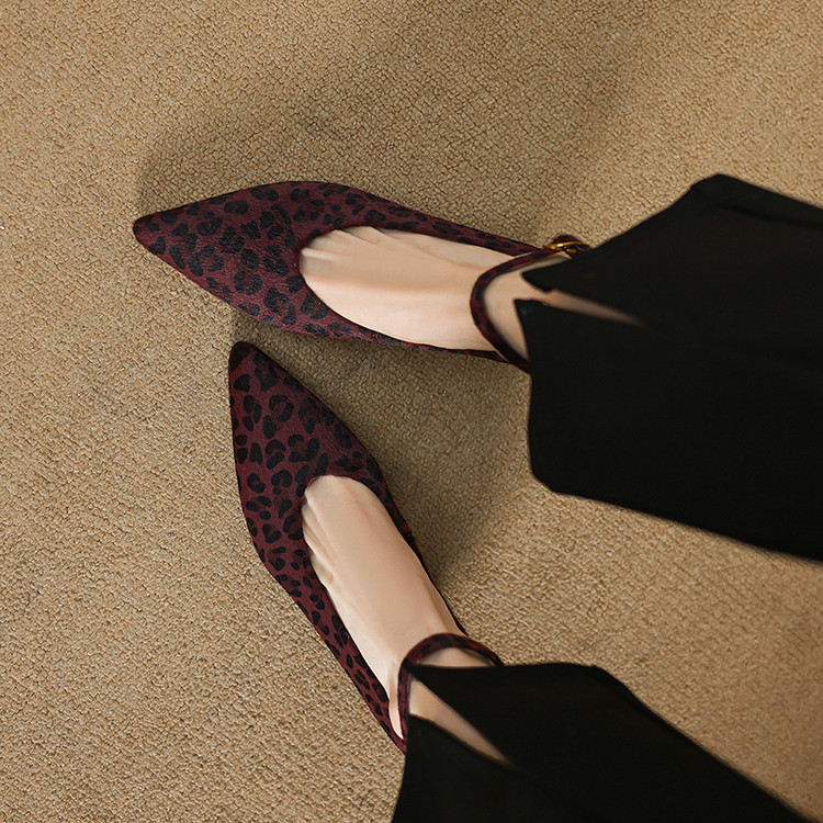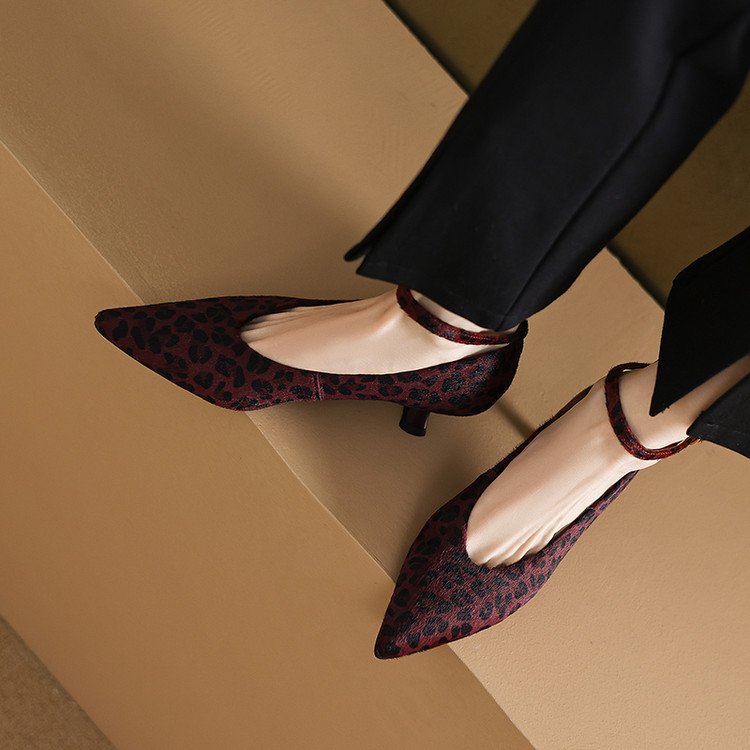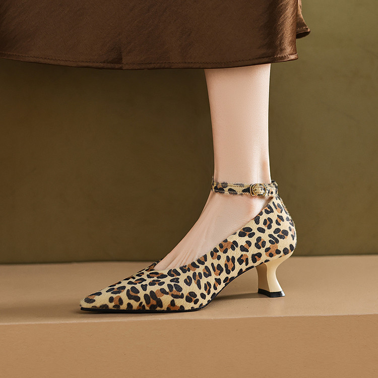 【预售5天】法式小众豹纹女单鞋细跟V口猫跟尖头一字带搭扣复古风玛丽珍单鞋JLY&18-536