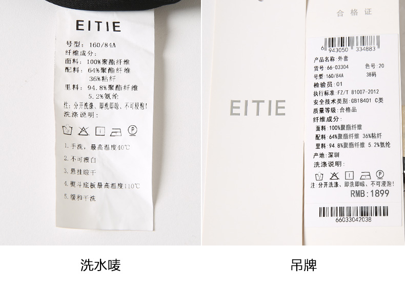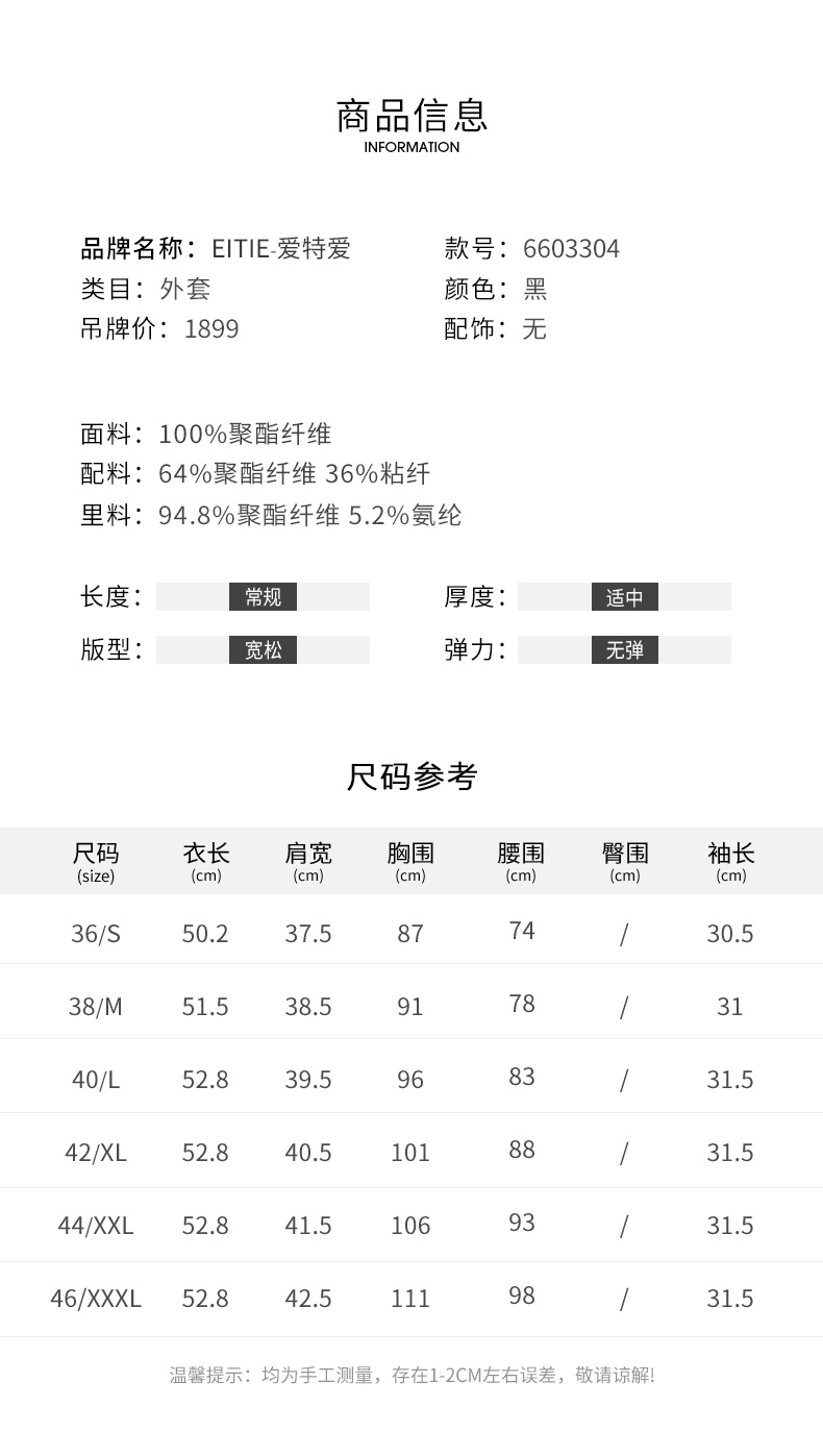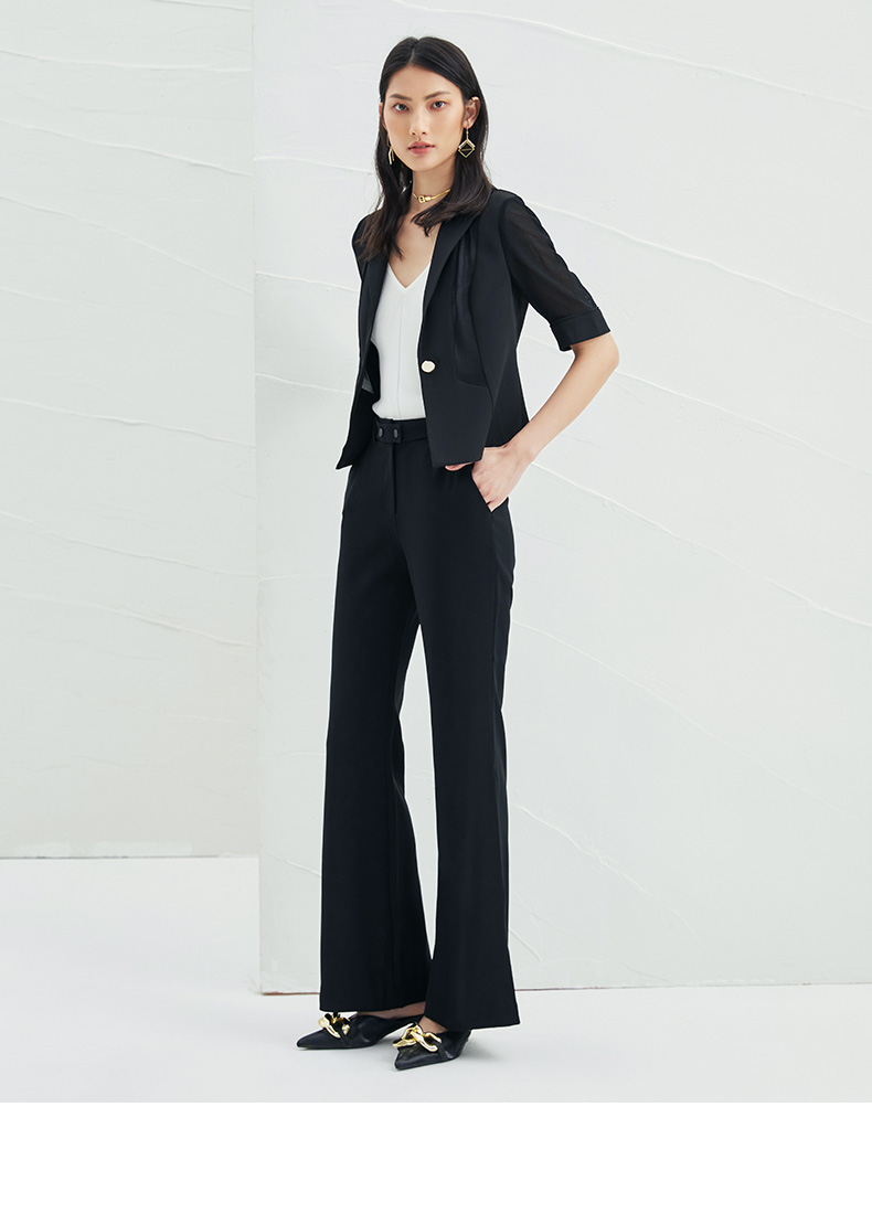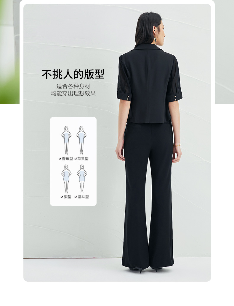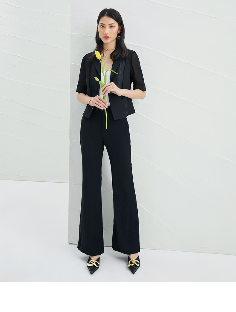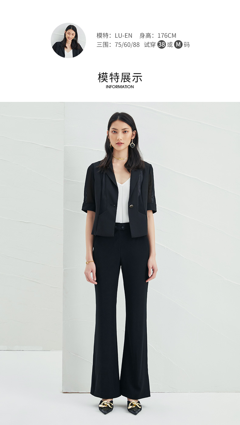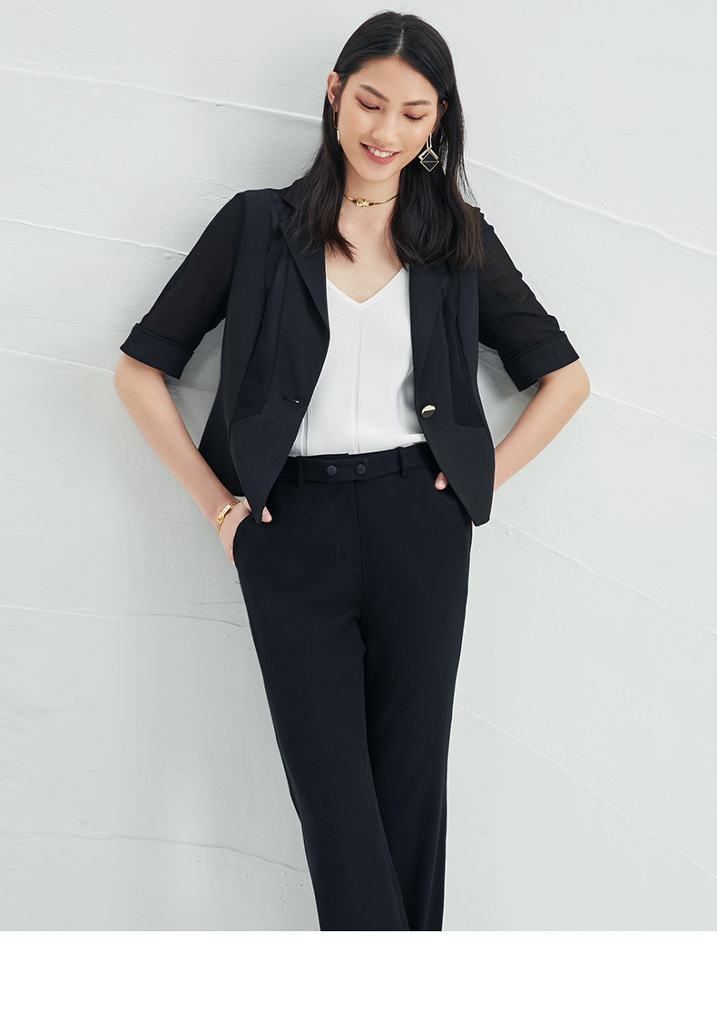 EITIE爱特爱春季新款黑色西装领时尚通勤显瘦网纱拼接短外套6603304