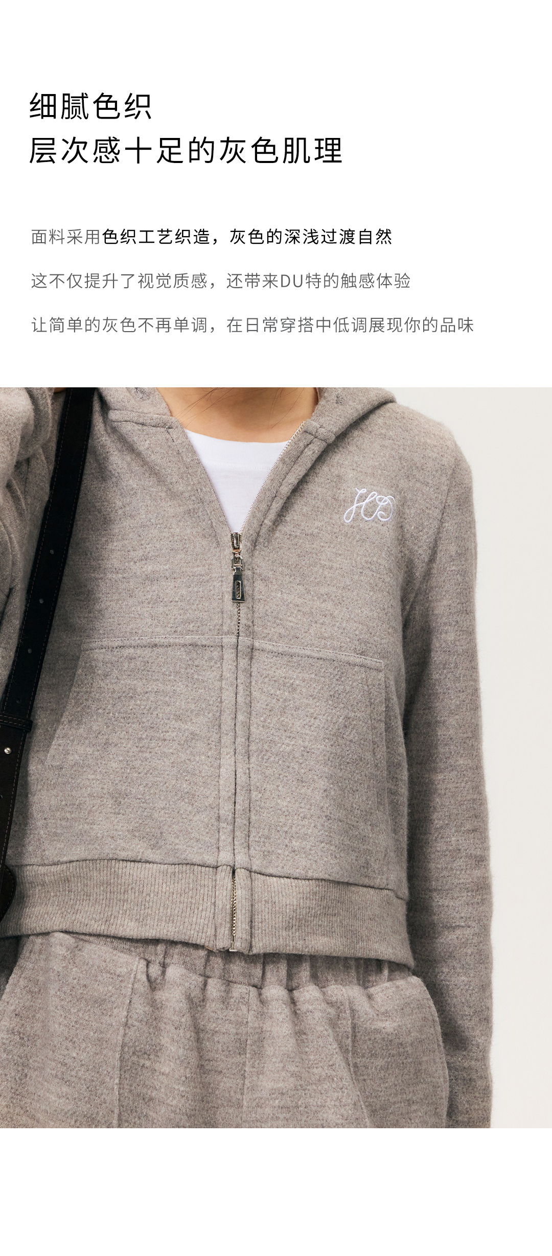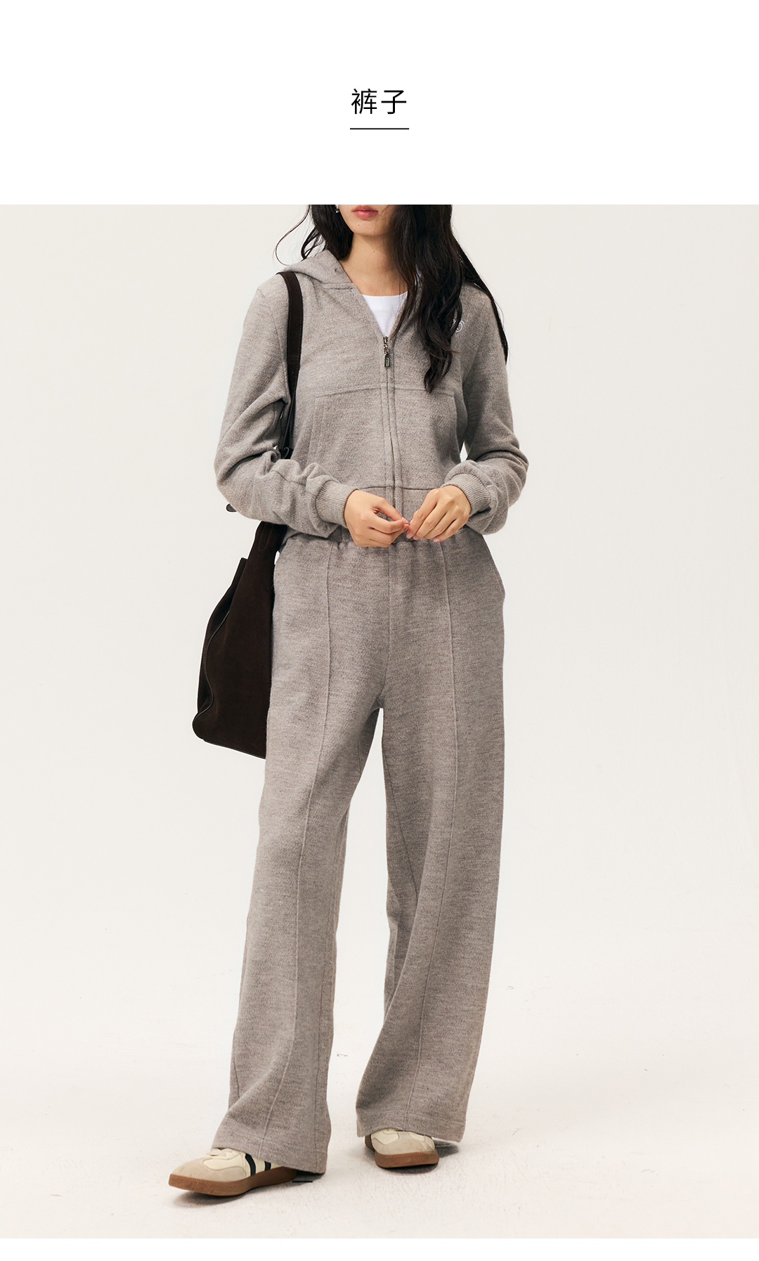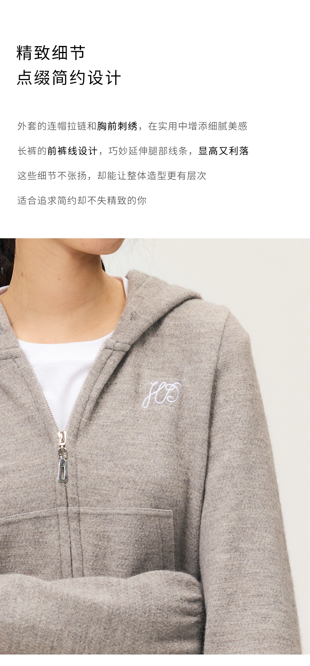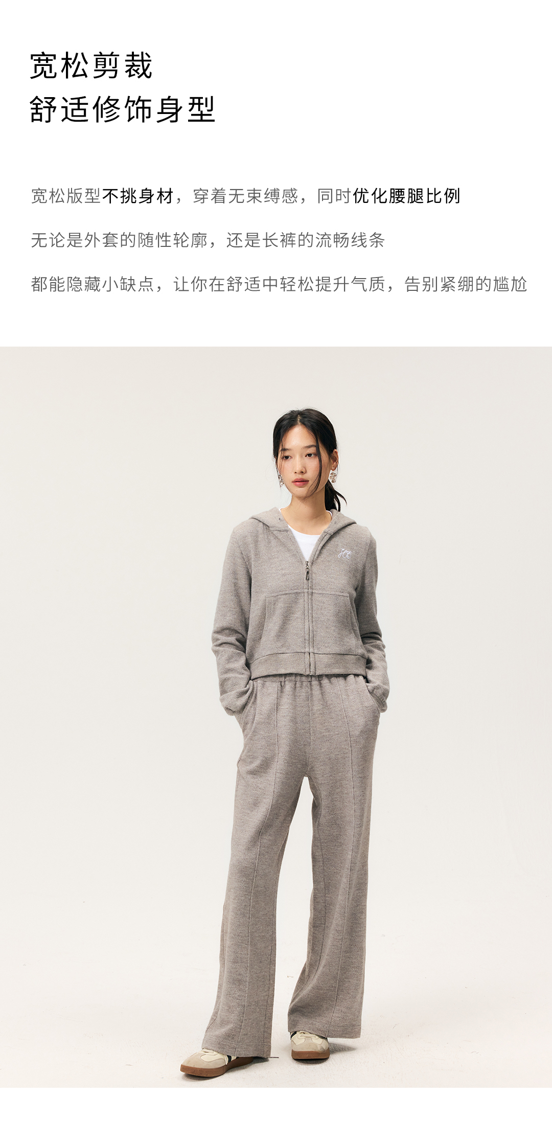 HeyDress拉链针织弹力连帽外套/松紧腰宽松毛圈卫裤