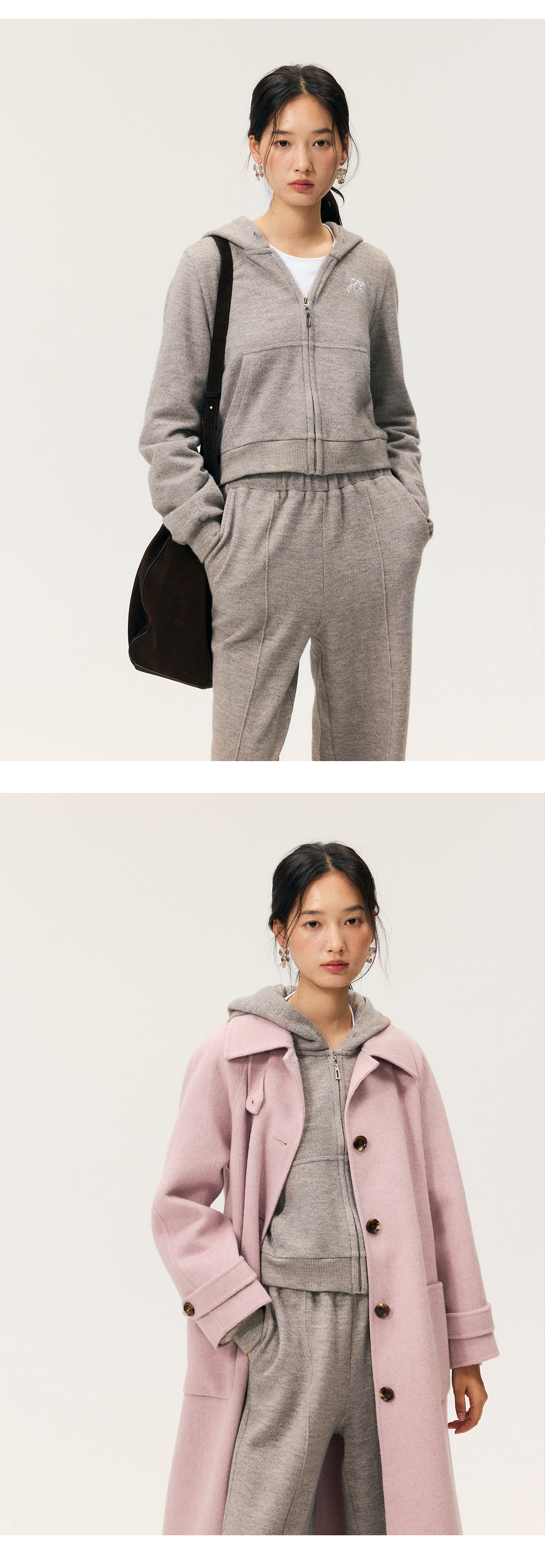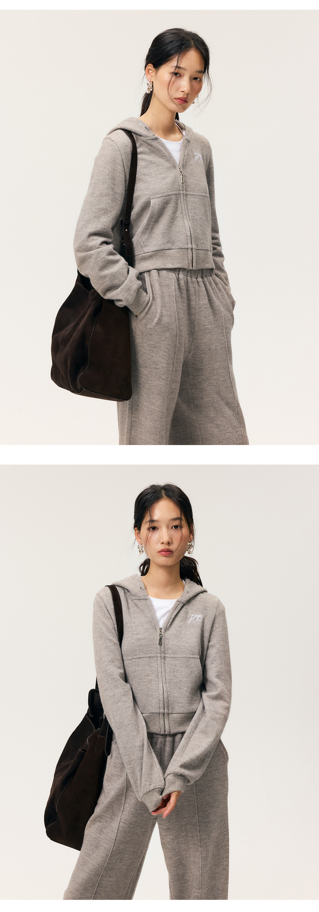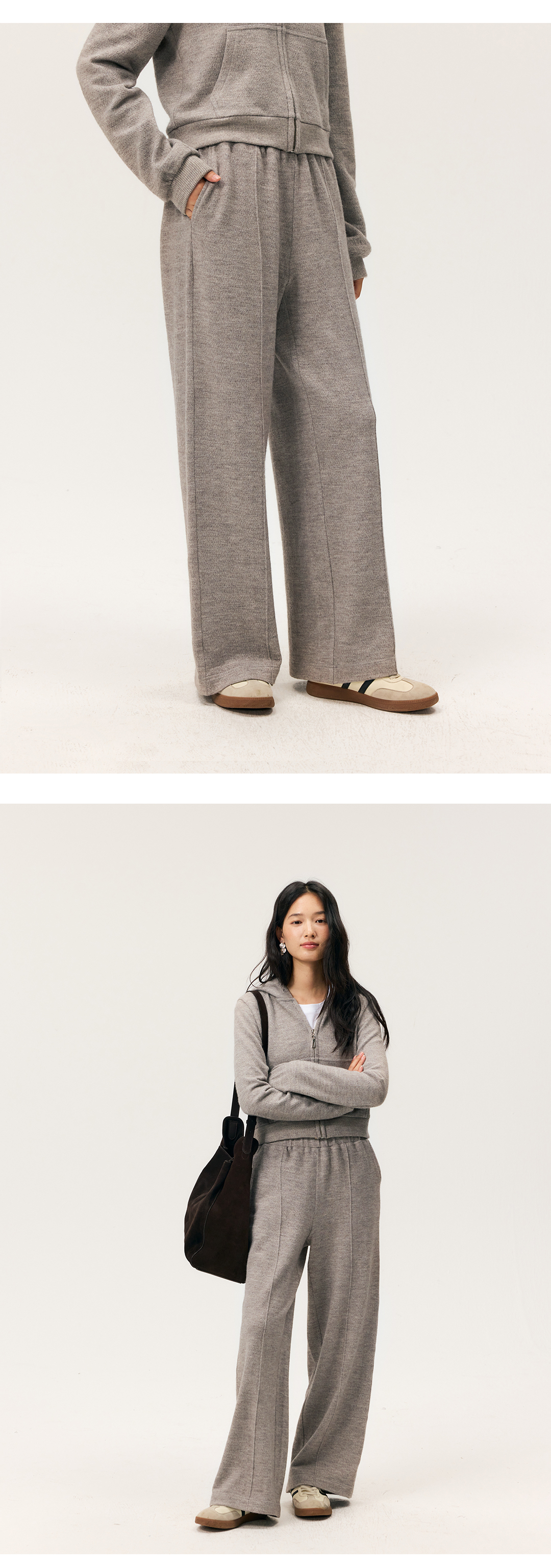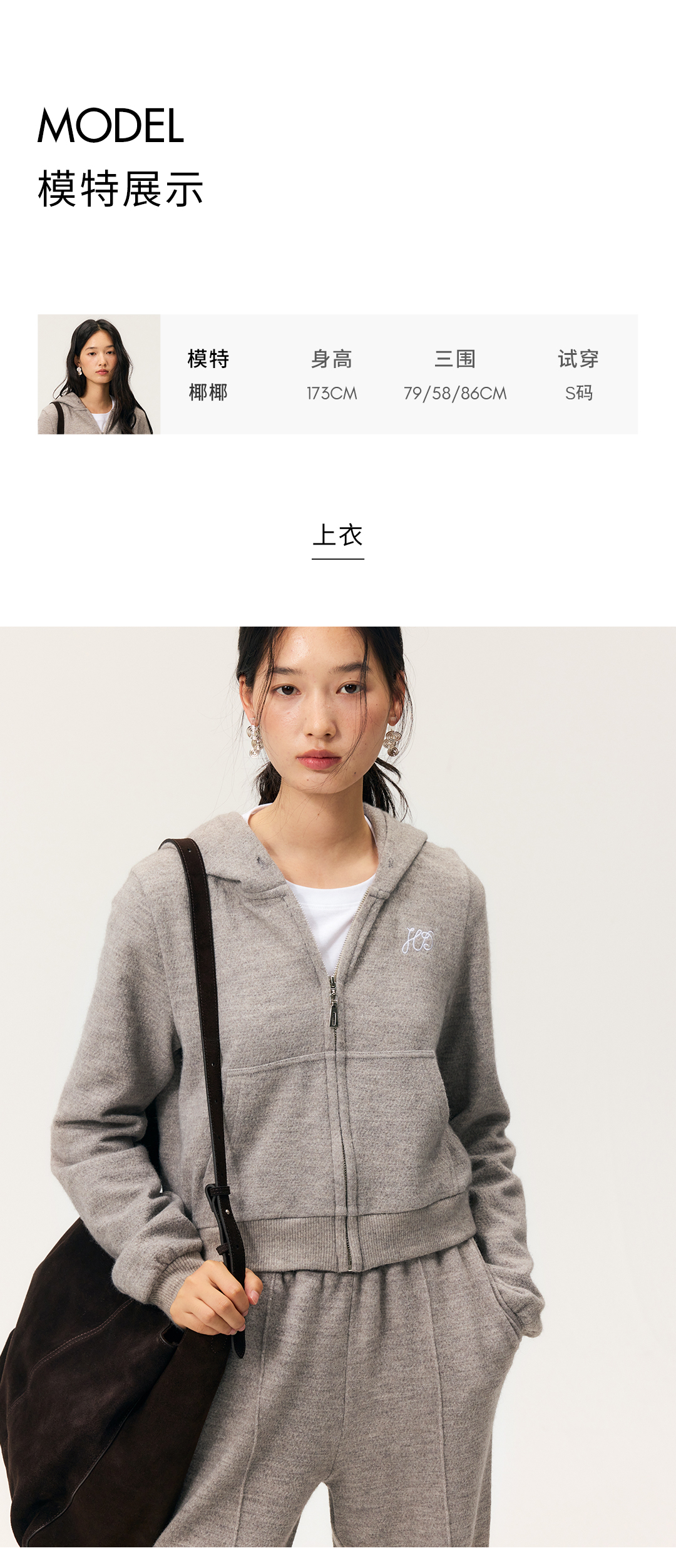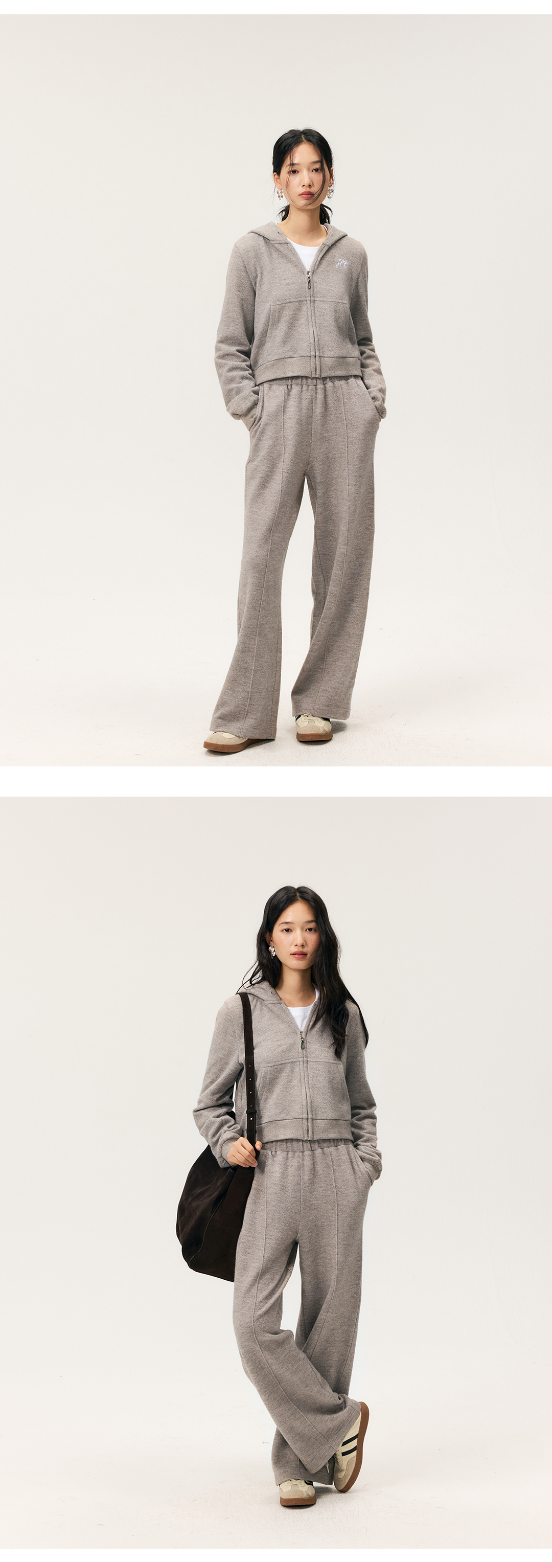 HeyDress拉链针织弹力连帽外套/松紧腰宽松毛圈卫裤