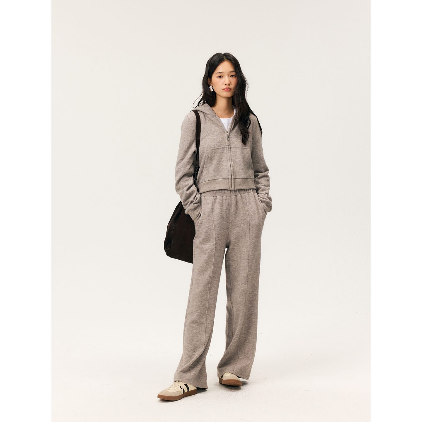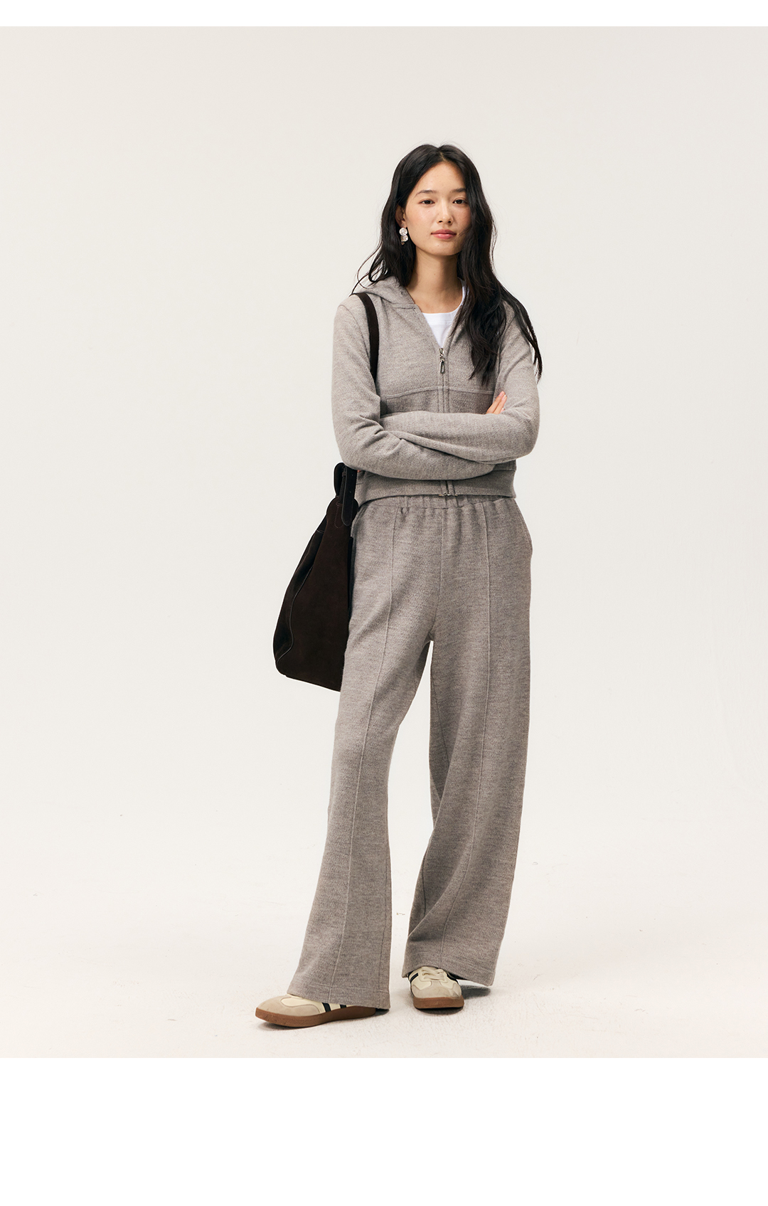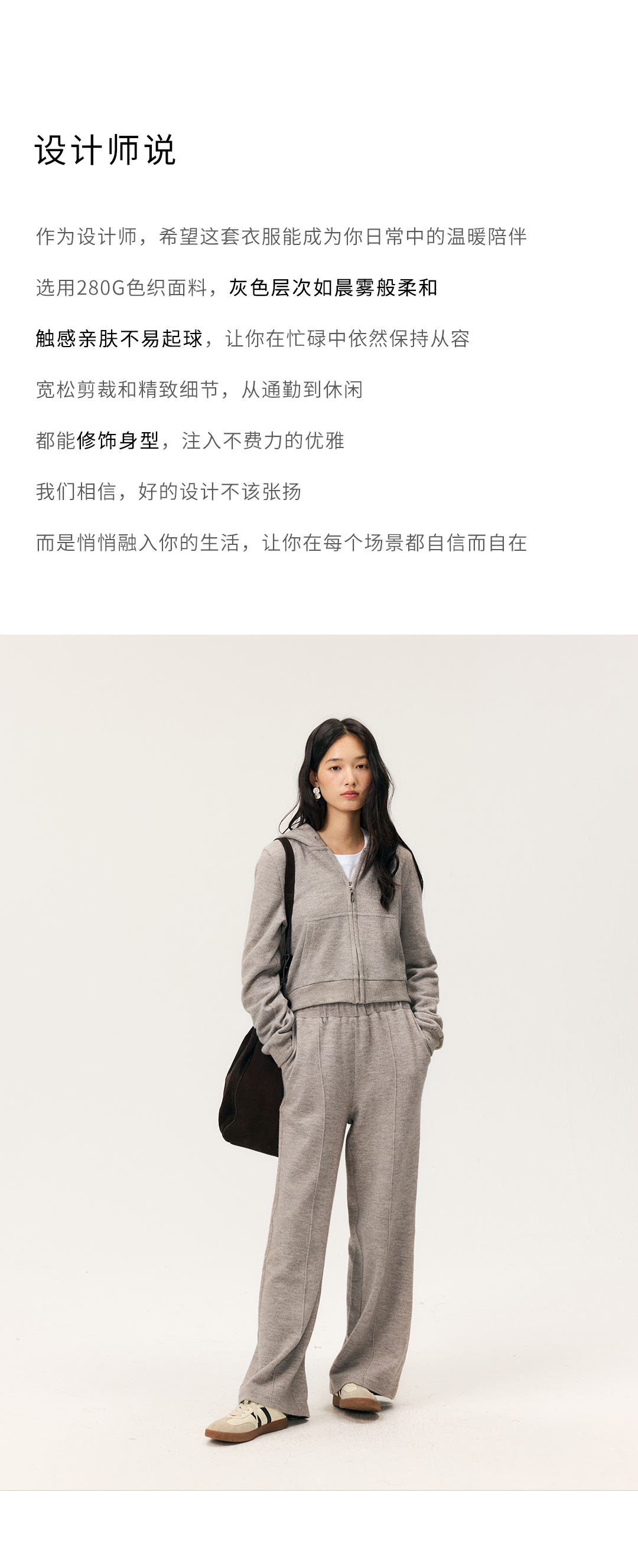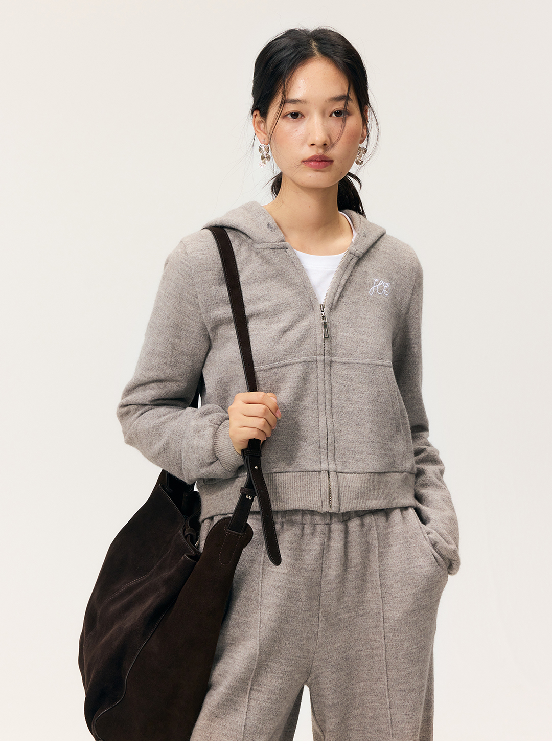 HeyDress拉链针织弹力连帽外套/松紧腰宽松毛圈卫裤