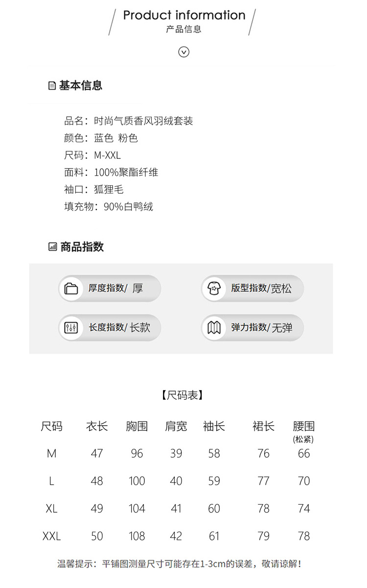 HR YJLY8699小香风套装水母钉珠刺绣90白鸭绒外套长裙两件套狐狸毛 商品图2