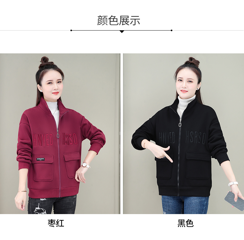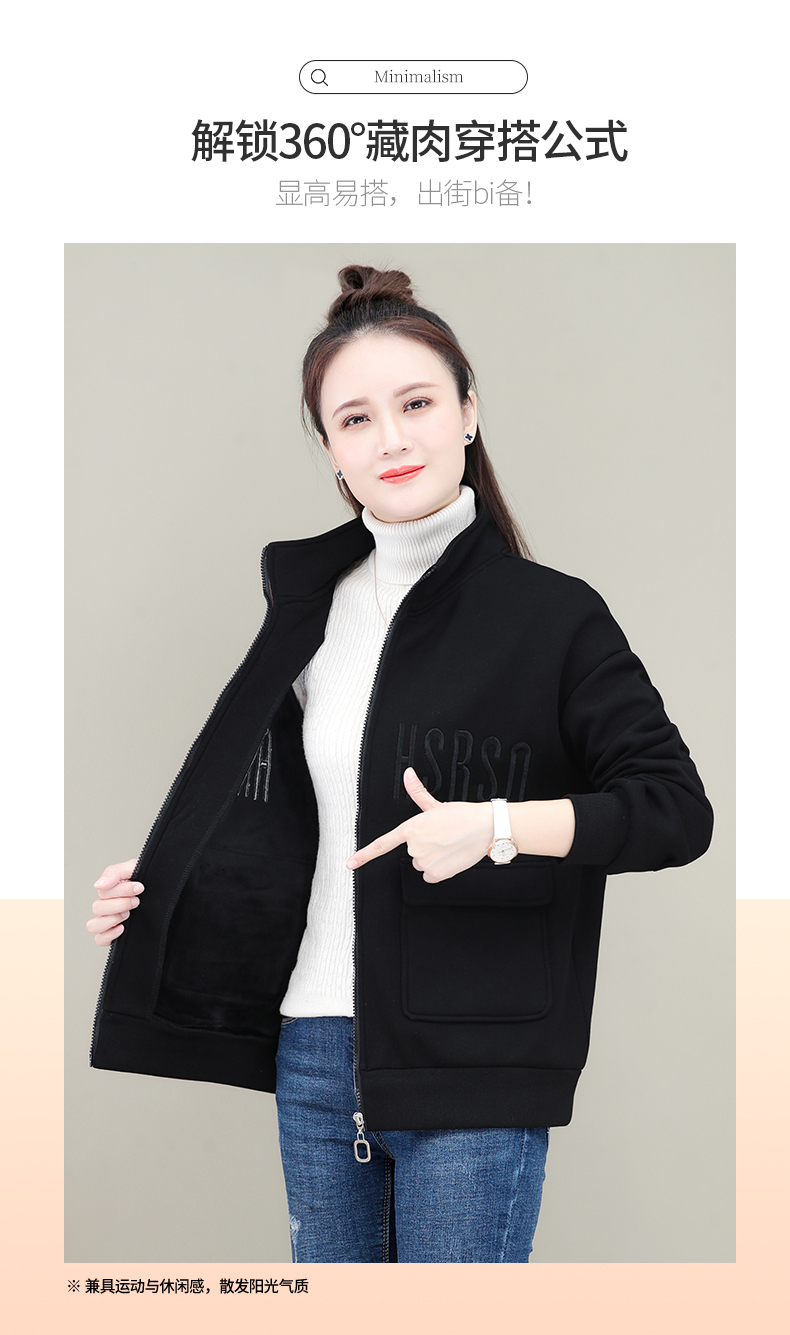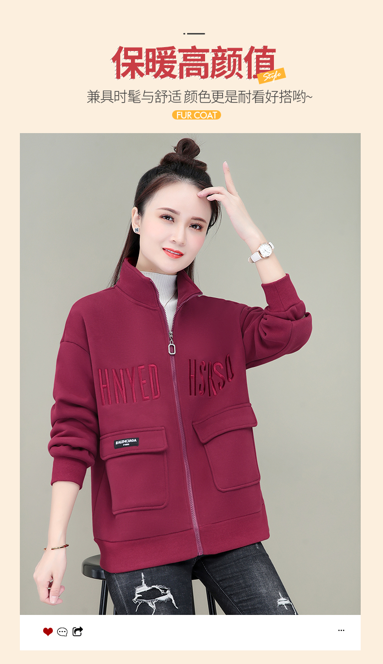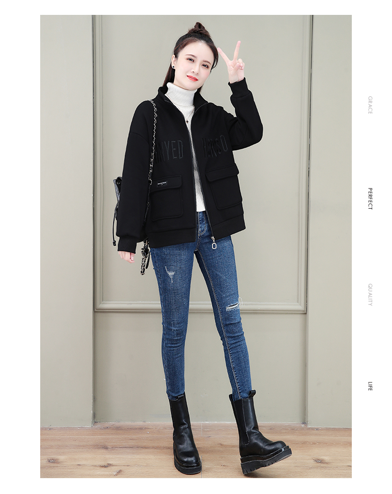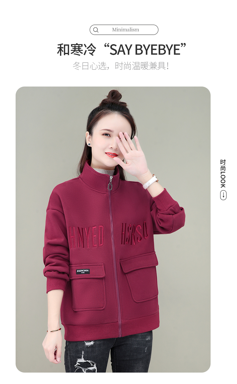 SP35-2221新款时尚洋气宽松立领长袖加绒加厚保暖拉链外套