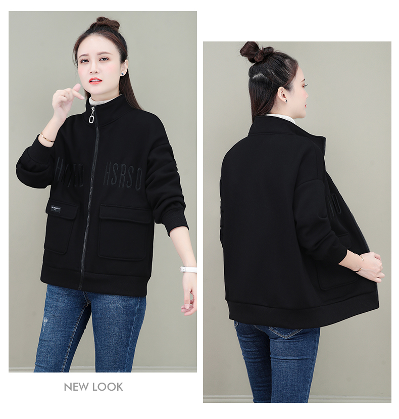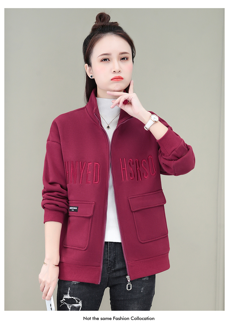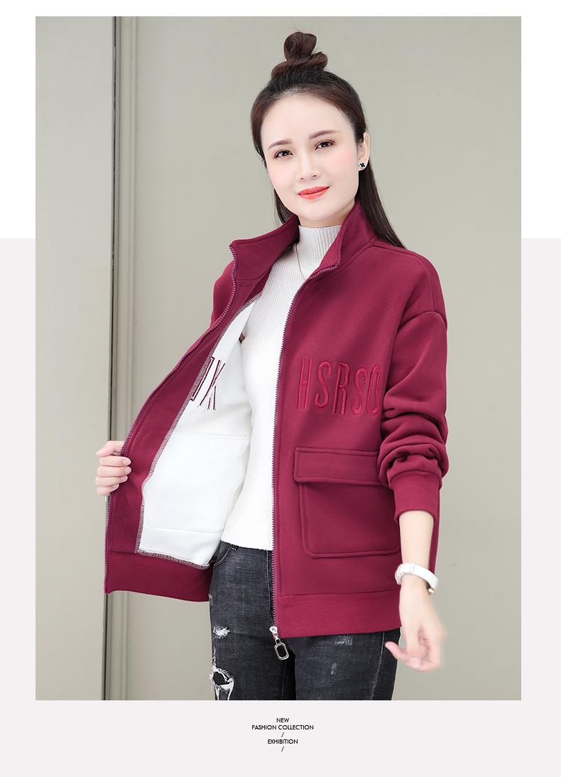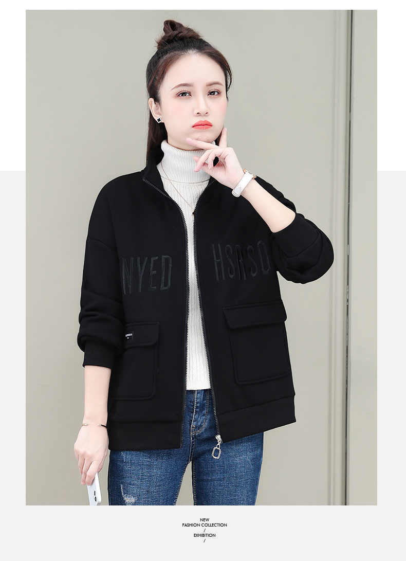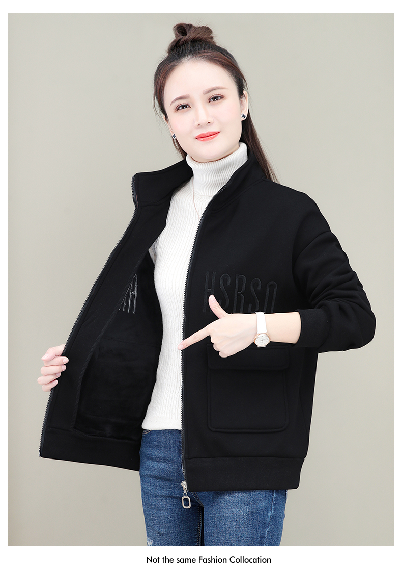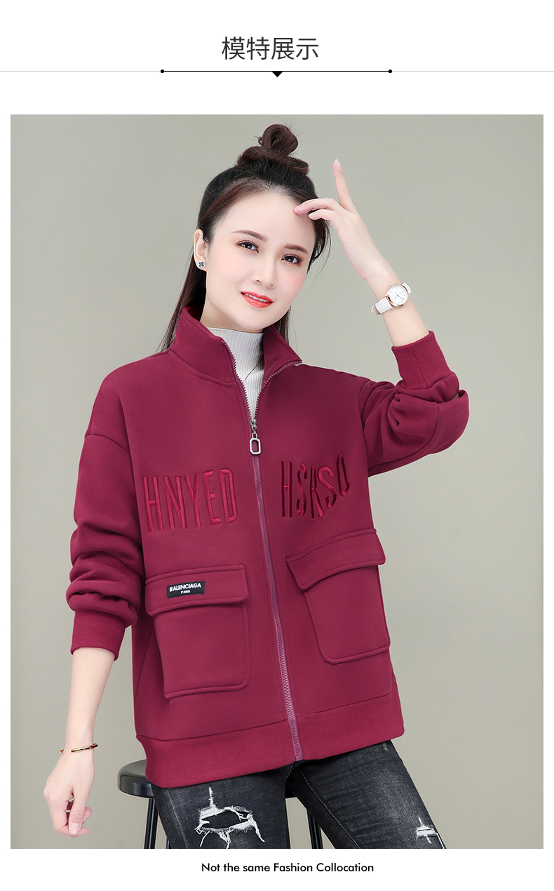 SP35-2221新款时尚洋气宽松立领长袖加绒加厚保暖拉链外套