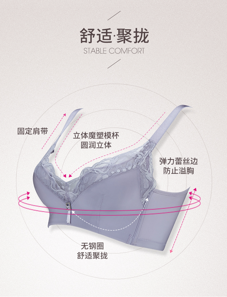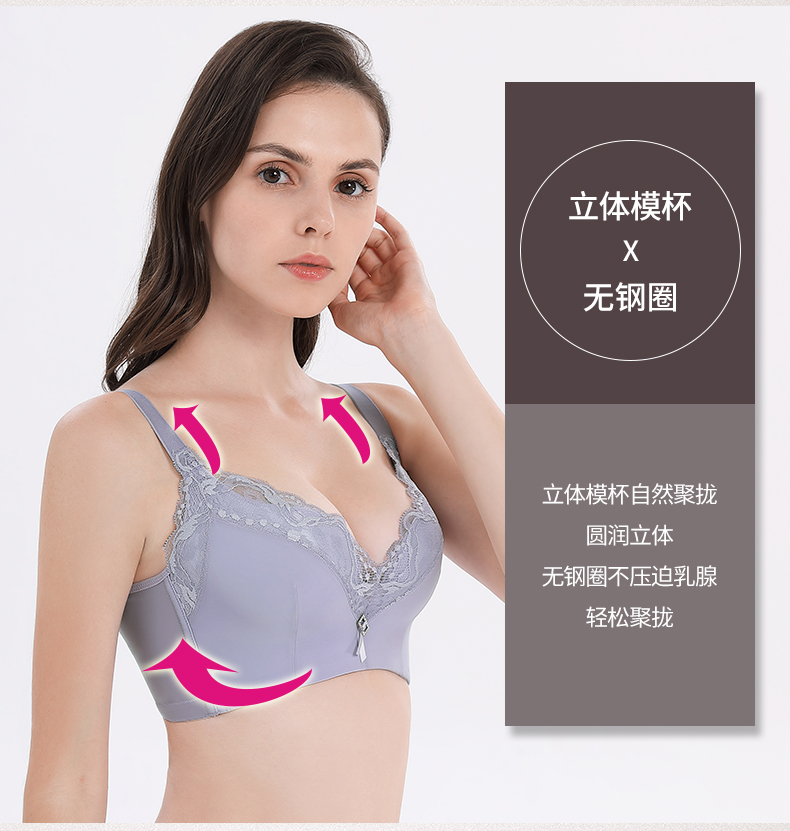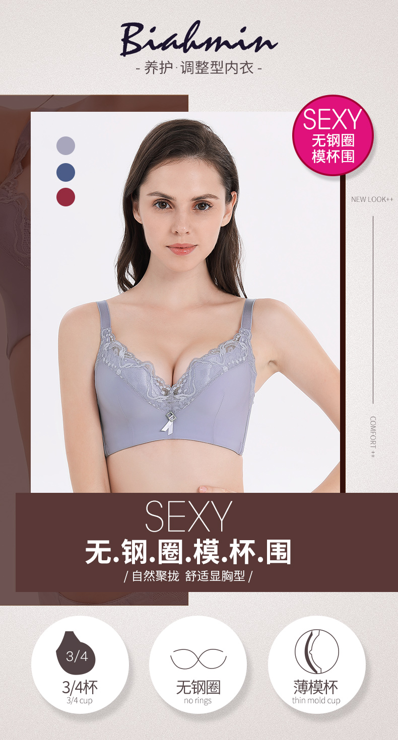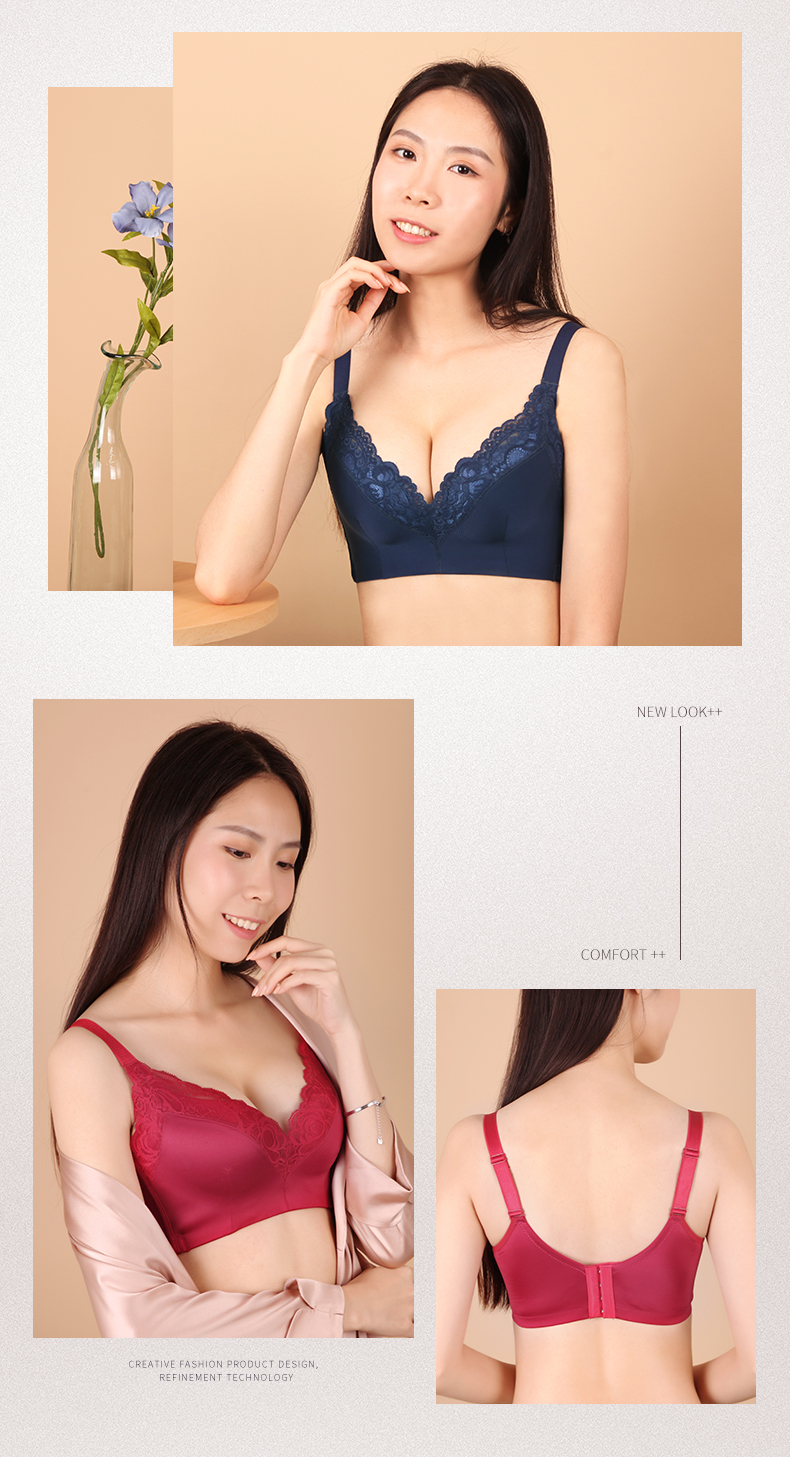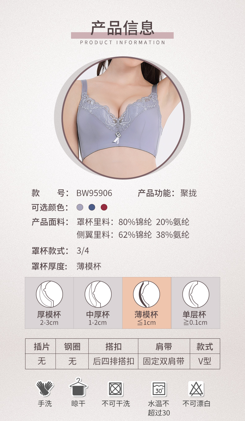 贝佳人文胸新款“心悦”深V全罩背心拼棉围-BW982221