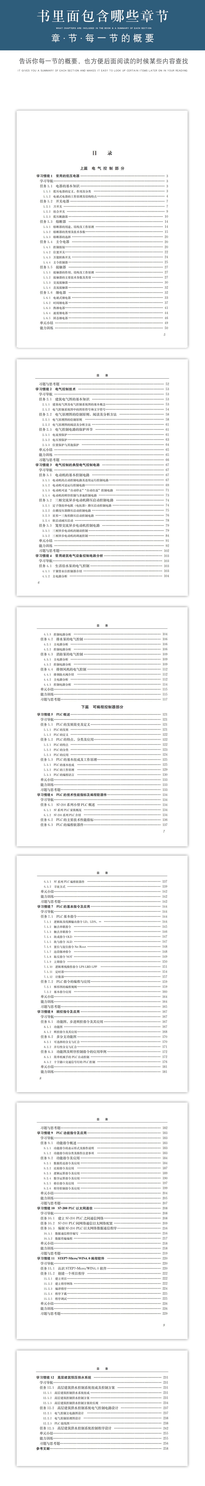 《建筑电气控制技术与PLC(第二版)》是楼宇智能化工程技术专业系列用书,为了适应21世纪对楼宇智能化工程技术应用型人才培养的需要而编写的,全书从建筑电气控制与PLC的实际应用出发,结合职业教育的特点,突出学员实际应用PLC能力的培养和训练。 《建筑电气控制技术与PLC》按电气控制与PLC的学习递进层次分为上、下篇。上篇分4个情境,分别介绍了常用的低压电器、电气控制技术部分,电气控制的典型电气控制电路、常用建筑电气设备控制电路分析。下篇分10个情境,分别介绍了西门子小型可编程序控制器PLC概述、 PLC的技术性能指标及编程软器件、PLC的基本指令及应用、PLC步进顺空指令及应用、PLC功能指令及应用、PLC外围接口电路技术、S7-200 PLC 以太网通信、STEP7-Micro/WIN4.0编程软件、高层建筑恒压供水系统、PLC工程应用等。 本书可作为全国职业院校楼宇智能化工程技术、电气控制应用技术类专业教学、培训用书、“CEAC电气智能技术应用工程师”认证培训教材,也可供相关工程技术人员参考。