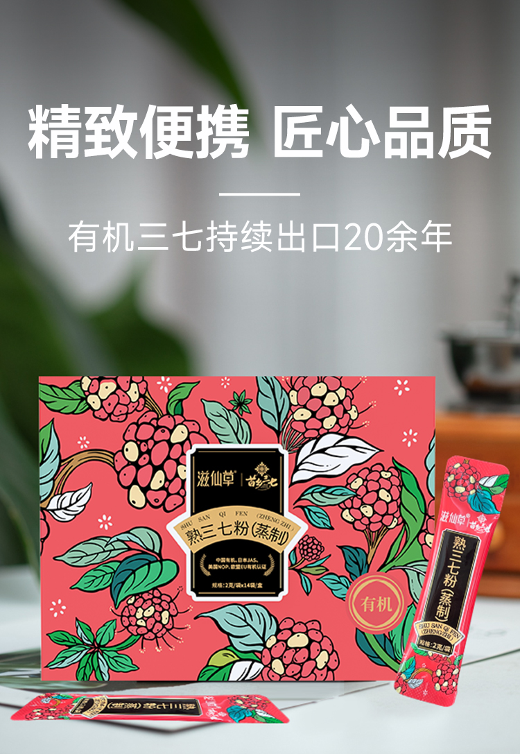 滋仙草出口级别高品质有机三七熟粉 4盒熟三七粉
