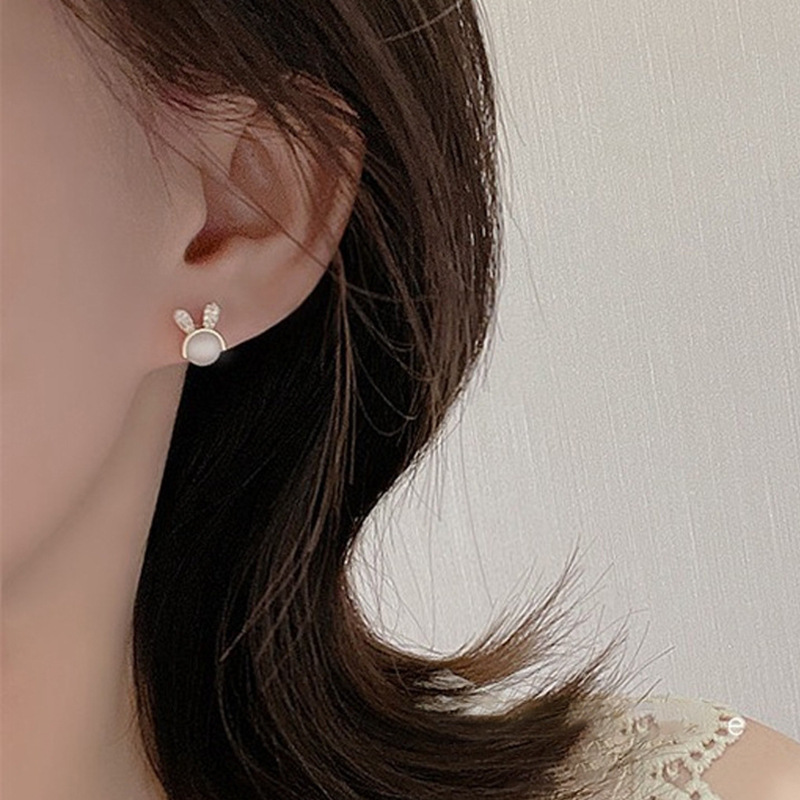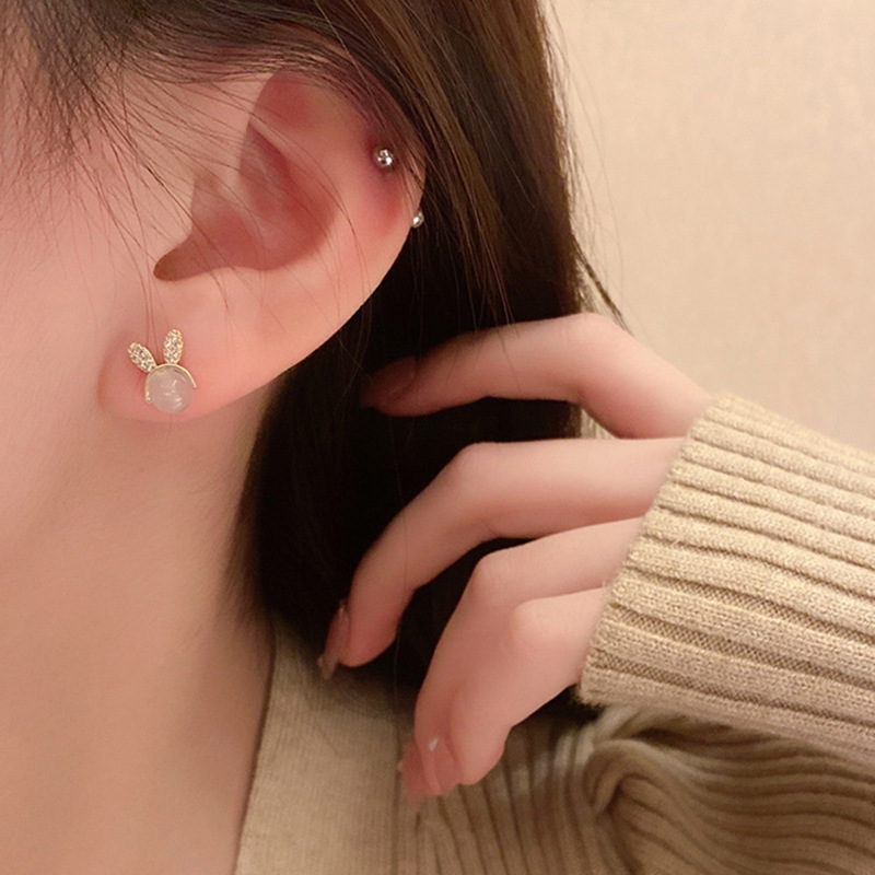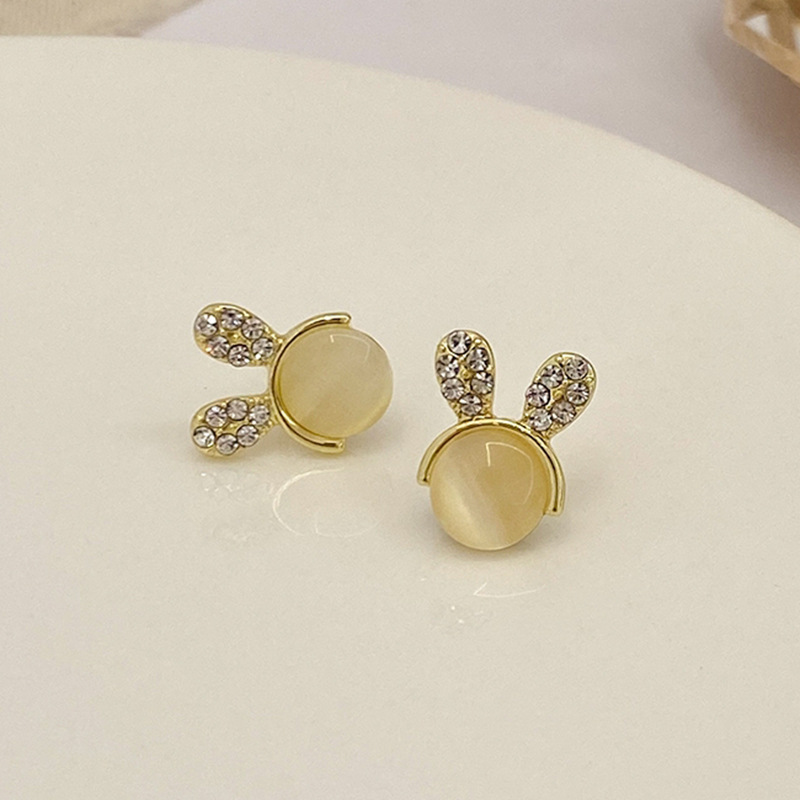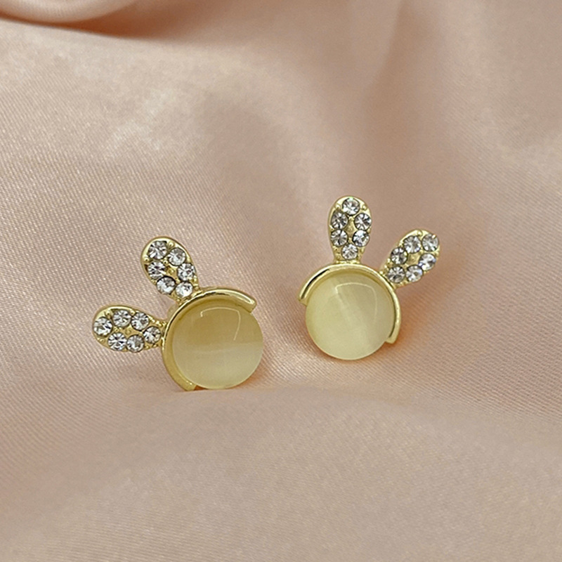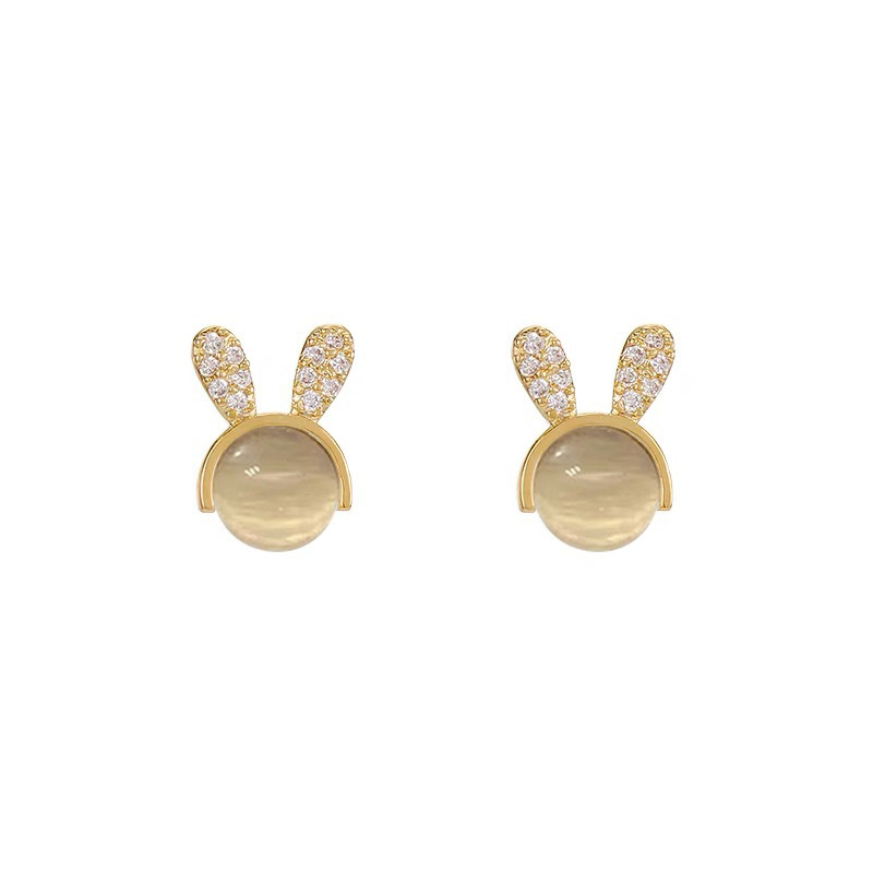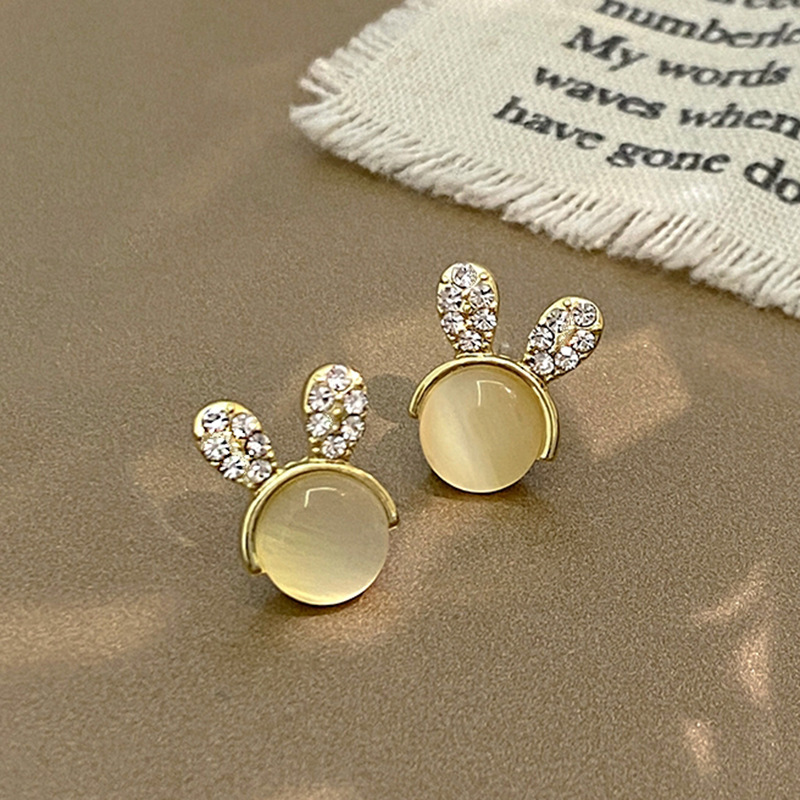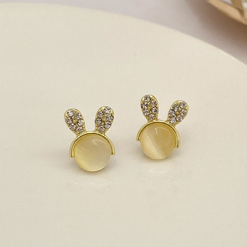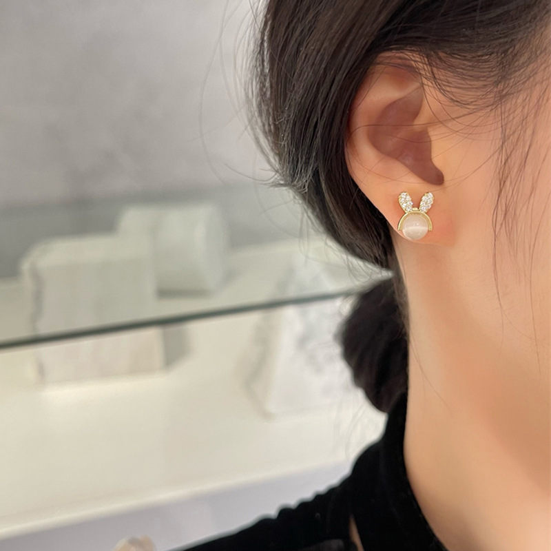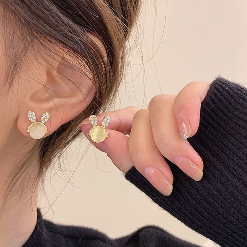 JU-A21051新款猫眼石可爱兔子耳钉女小众设计感个性百搭耳环耳饰